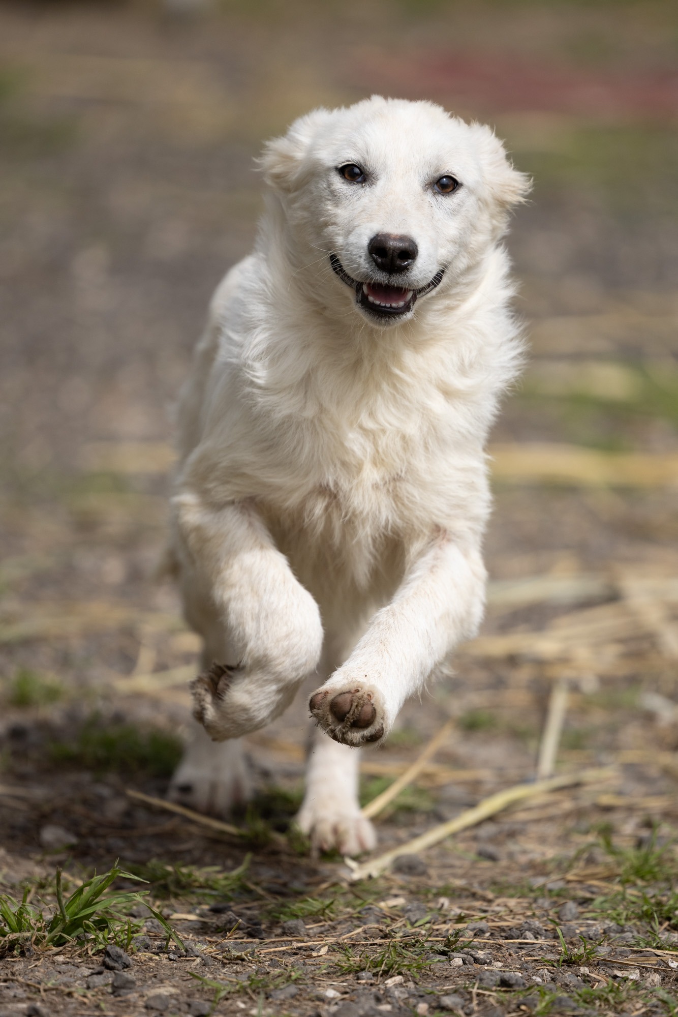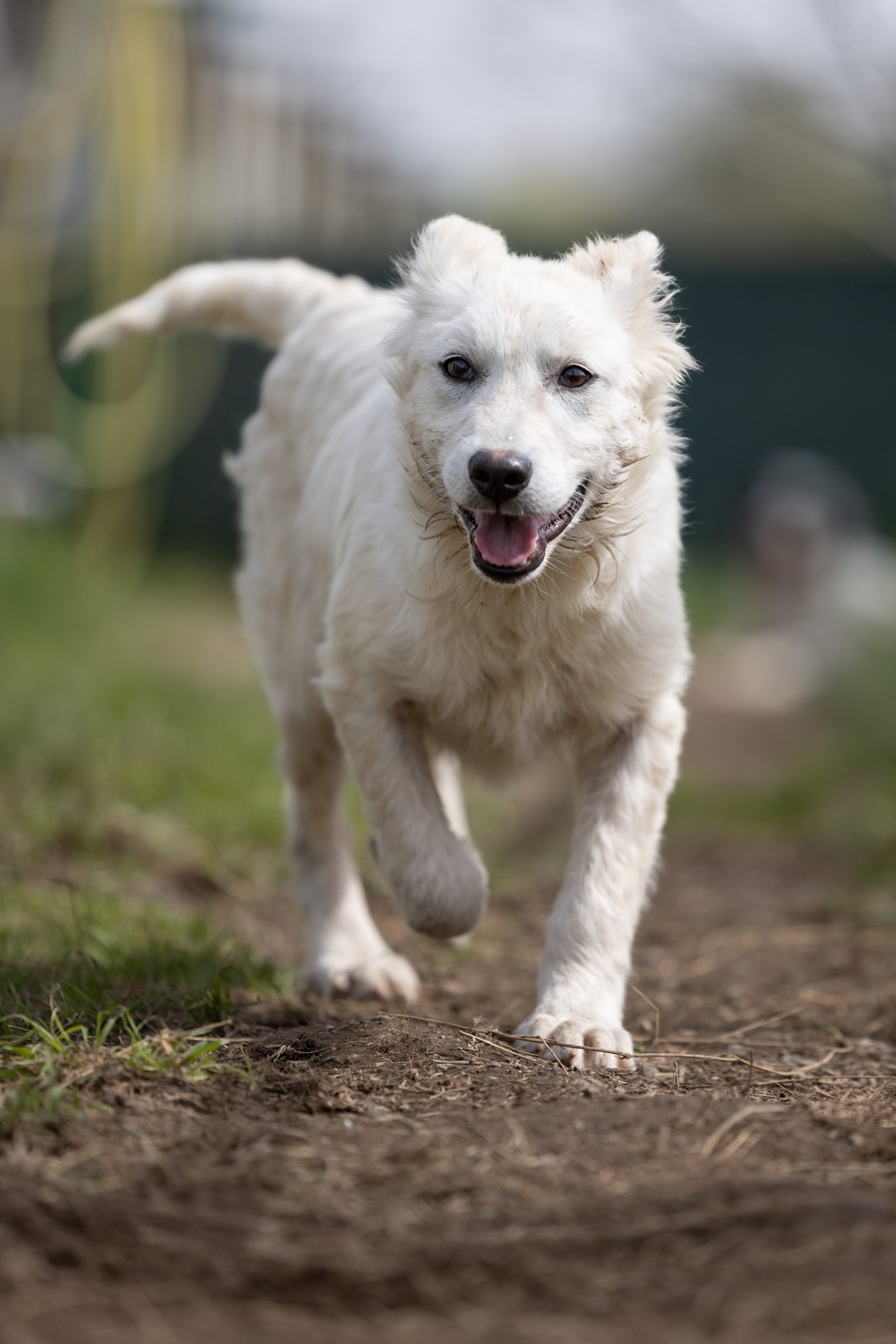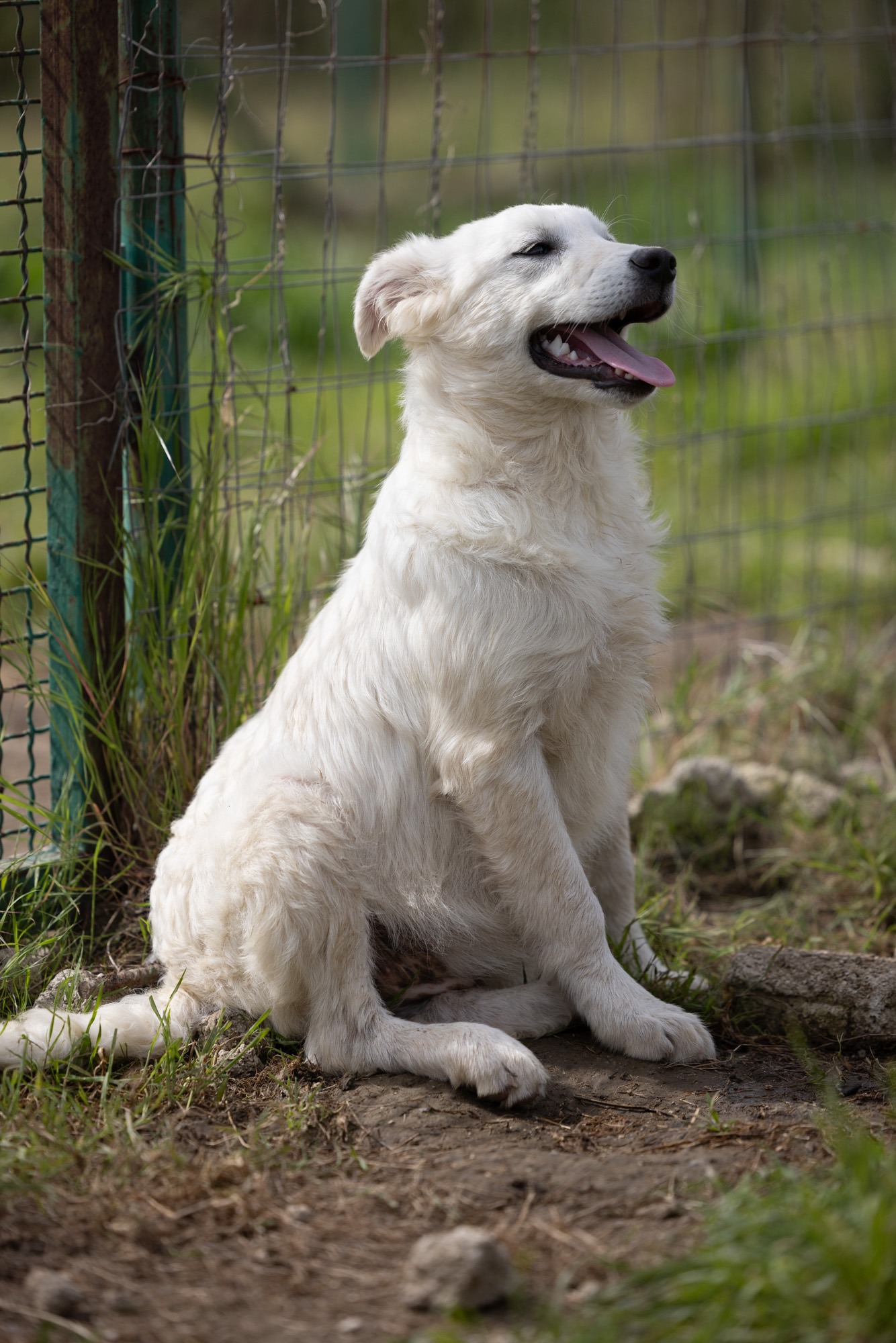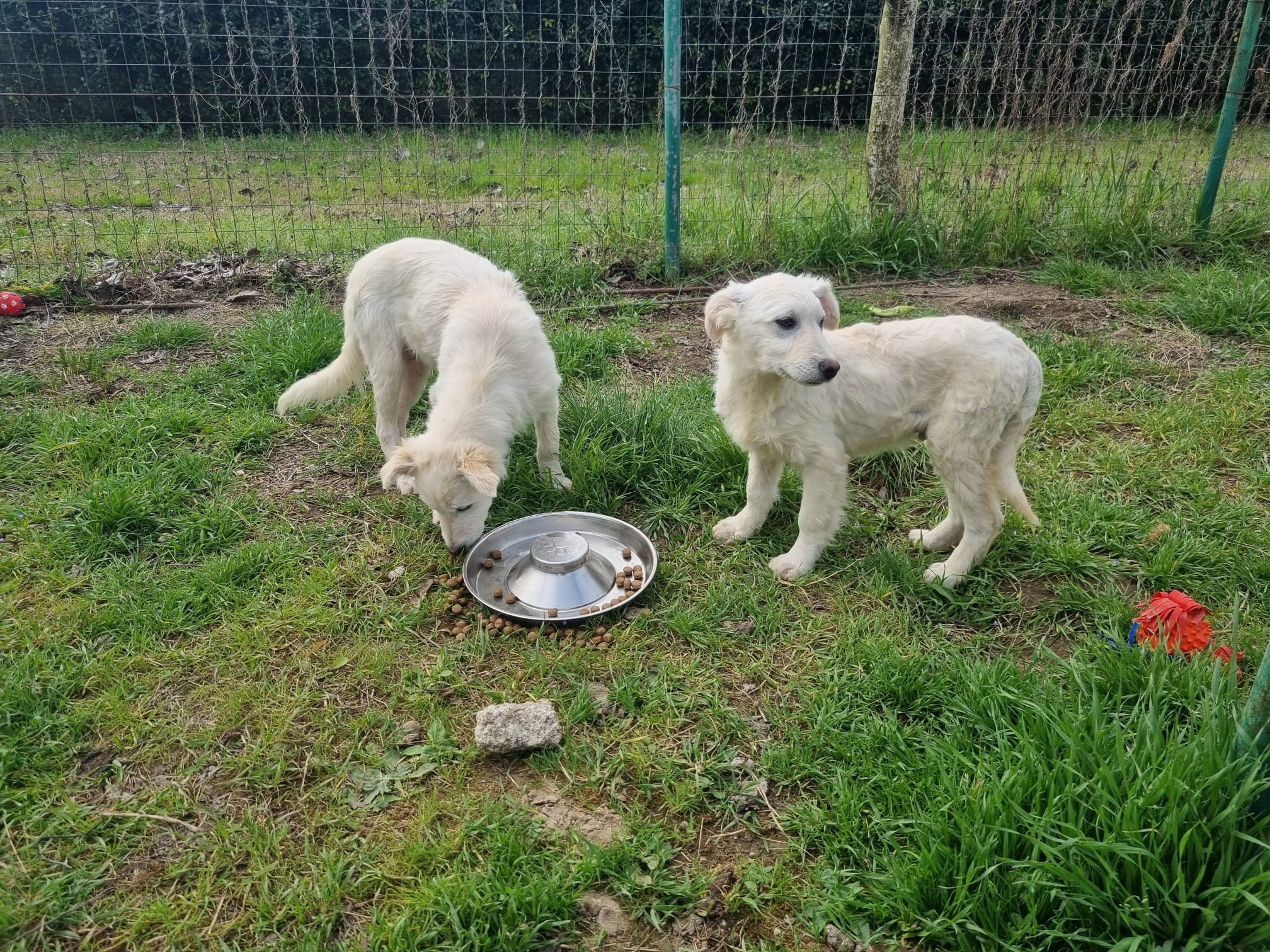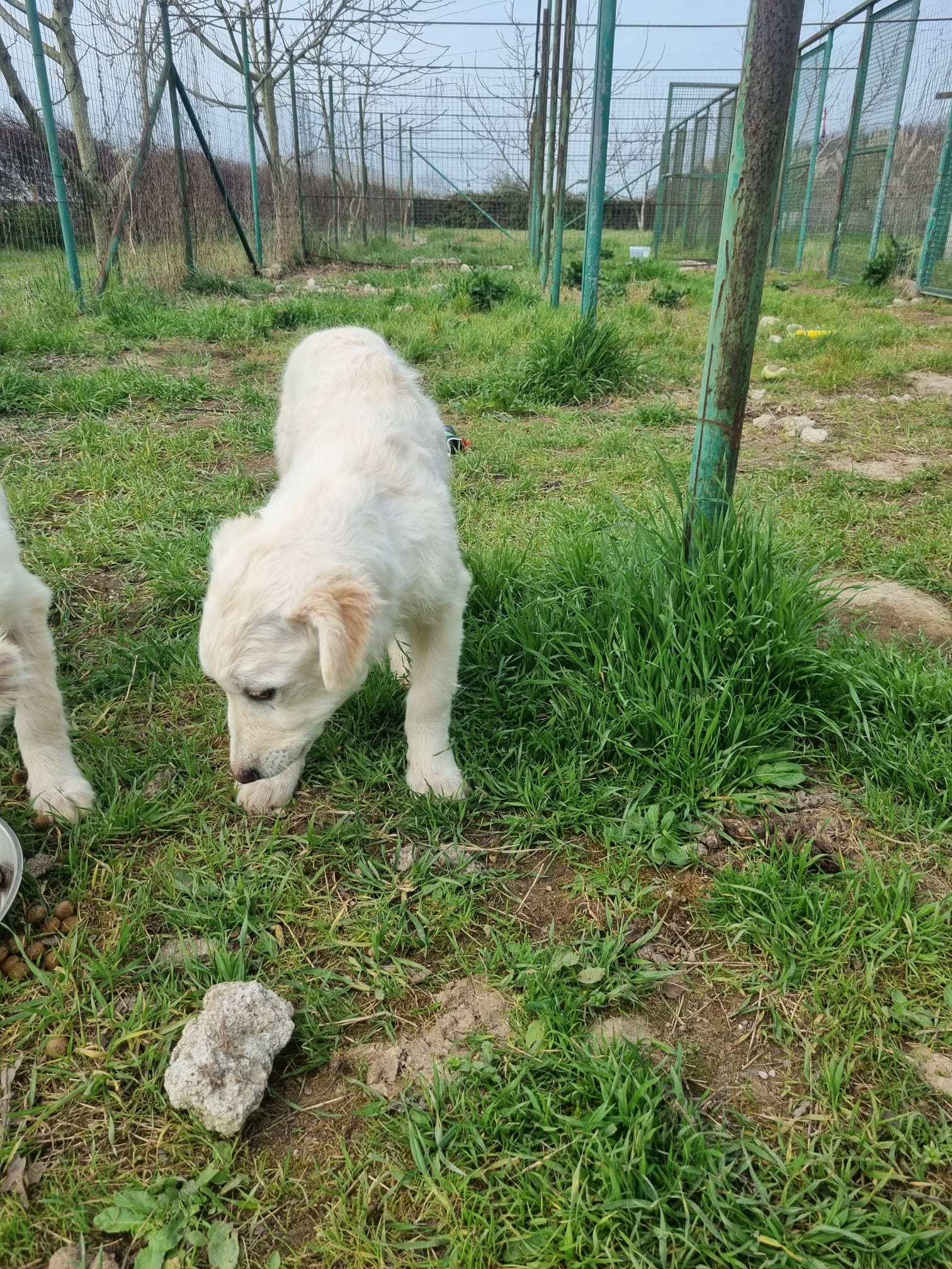 Da wir keine Infos zu den Elterntieren haben, können wir die Rasse oder den „Mix“ nur schätzen… vielleicht besteht genetisch der Anteil an Maremmanos (größere Herdenschutzhunde), ggf. gepaart mit Labrador oder Terrier.