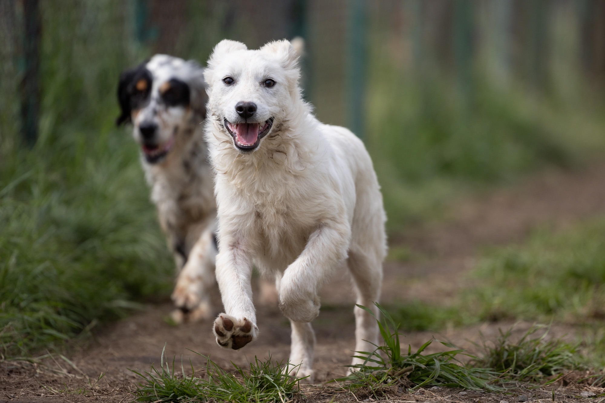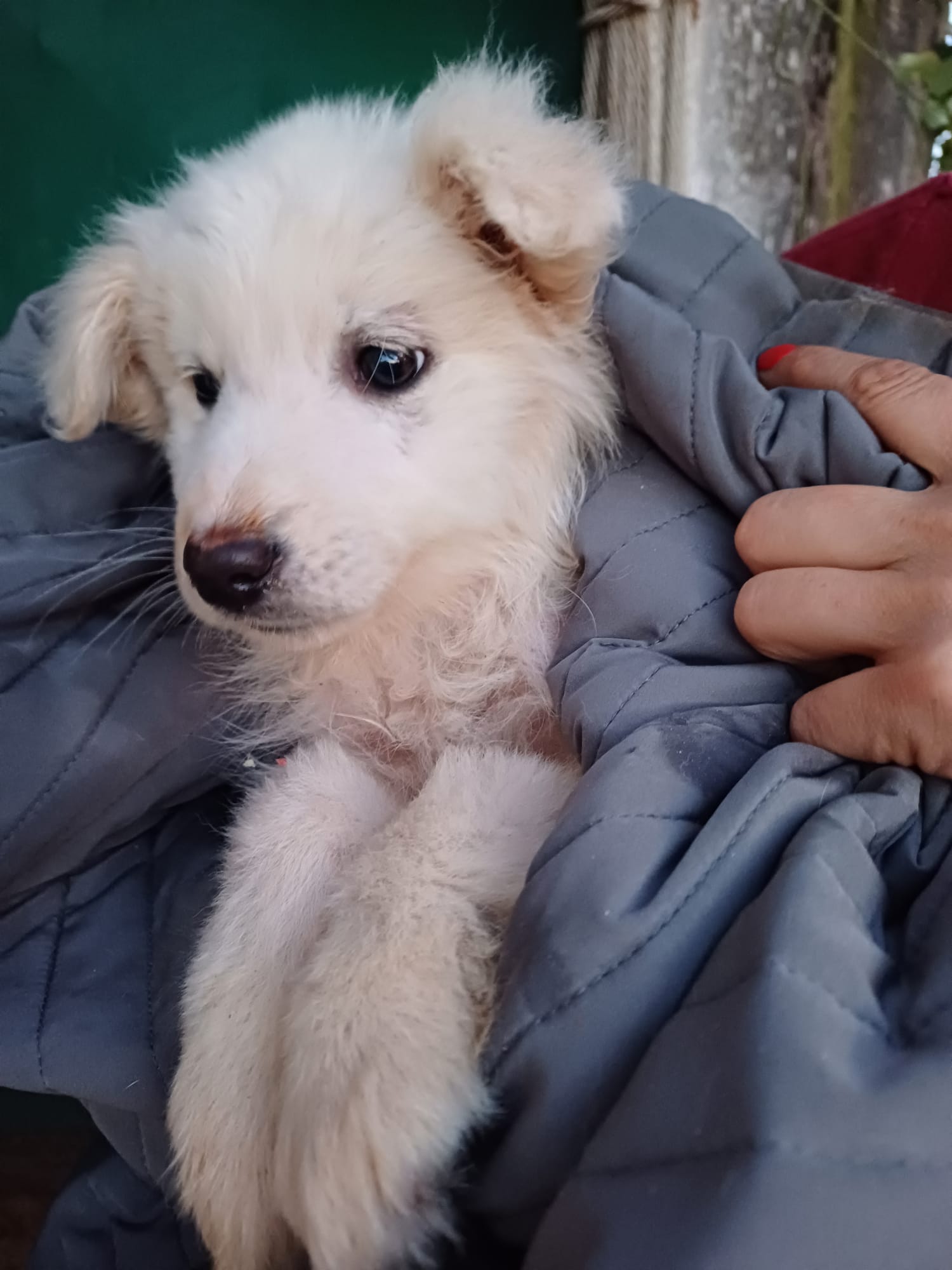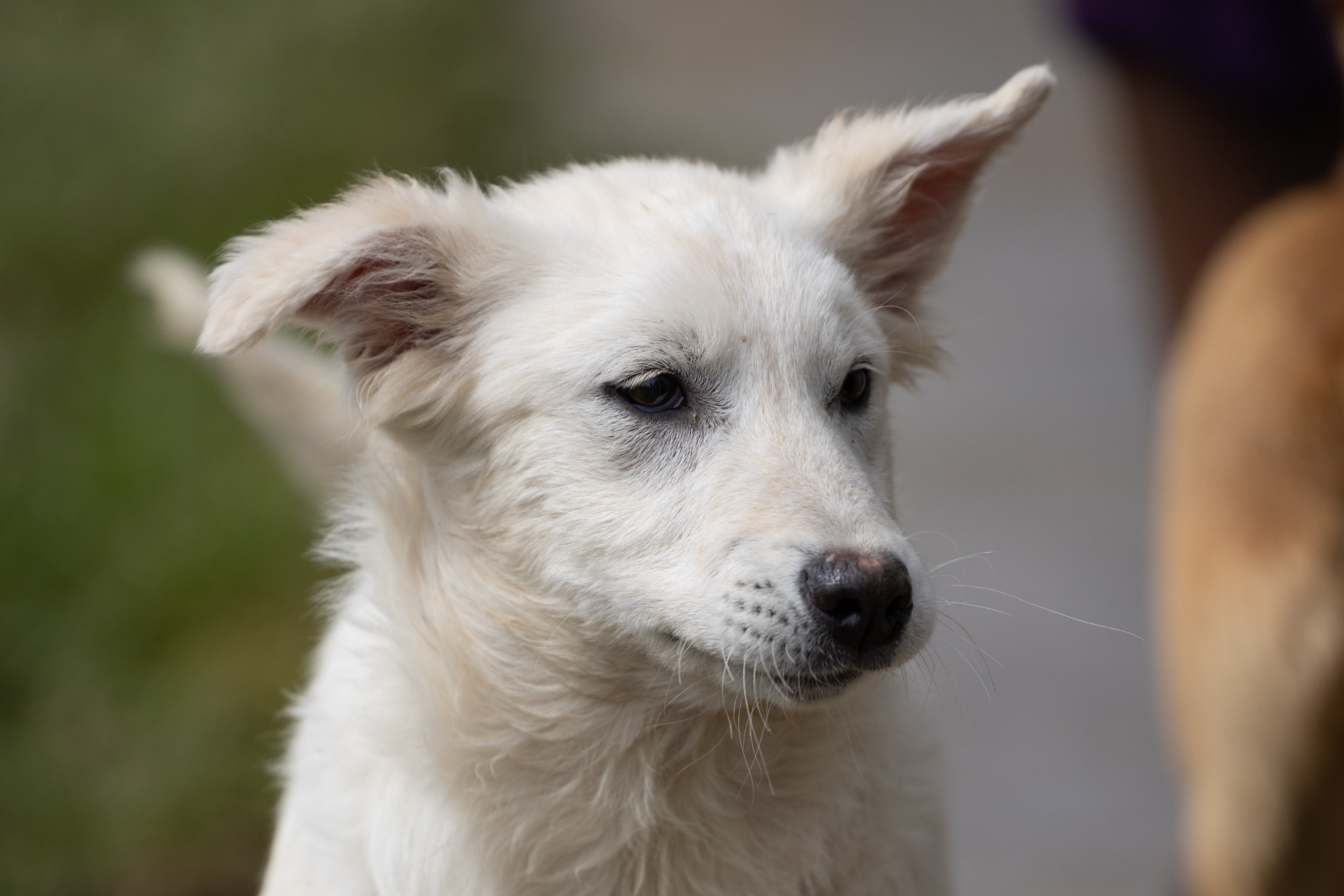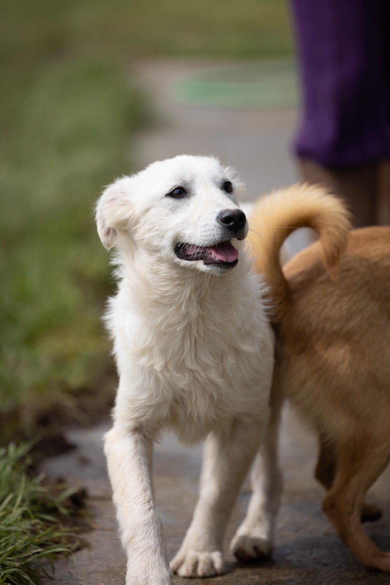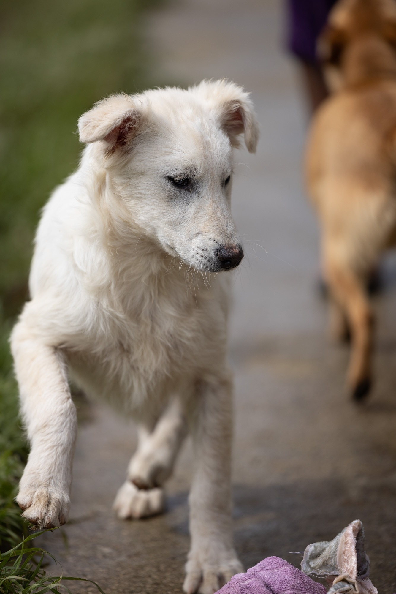 Da wir keine Infos zu den Elterntieren haben, können wir die Rasse oder den „Mix“ nur schätzen… vielleicht besteht genetisch der Anteil an Maremmanos (größere Herdenschutzhunde), ggf. gepaart mit Labrador oder Terrier.