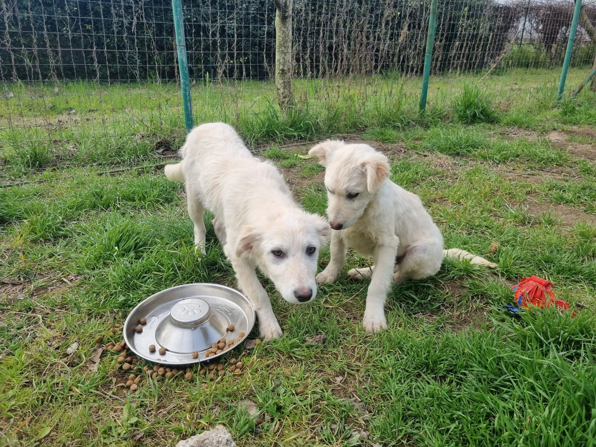 Sind mittlerweile mittel-groß und kastriert. In den letzten Monaten bei unserer Giusy haben sie sich sozial und freundlich gegenüber Artgenossen und den versorgenden Menschen gezeigt. Es wird wirklich Zeit, dass sie ihre eigene Familie zum Liebhaben und gemeinsamen Geschichten-Schreiben finden. Das alles braucht jedoch Geduld. Auf „Fremde“ reagieren sie eher unsicher, bellen aufgeregt und lassen sich anfangs nicht gleich anfassen, wie so häufig bei Tierschutzhunden. Zeit ist das Mittel der Wahl 😉