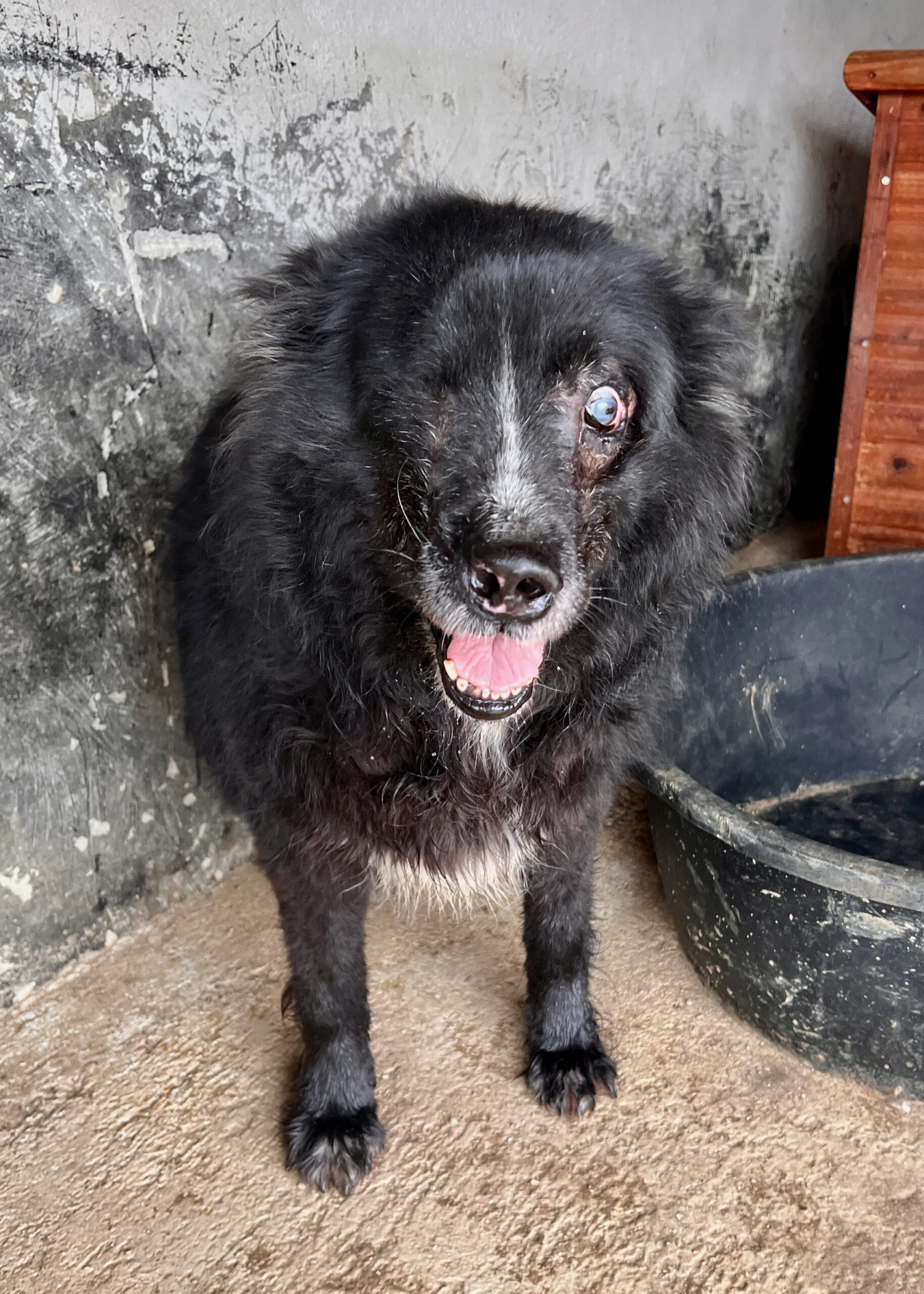 02/2026: Aurea ist zwar blind, kommt damit aber gut zurecht. Wenn sie in den Auslauf darf, rennt sie ausgelassen umher und schnüffelt alles ab. Man spürt richtig die Lebensfreude, die in ihr steckt. Aktuell teilt sich Aurea einen Zwinger mit einem Rüden. Das Leben, das sie jetzt führt, ist um einiges besser, als ihr Leben zuvor auf der Straße. Sie bekommt Futter, wird medizinisch versorgt und es bleibt sogar Zeit für ein paar Streicheleinheiten. Dennoch ist es kein Leben für eine chronisch kranke, blinde Hündin. Aurea ist wirklich ein Schatz, sehr menschenbezogen, verschmust und lässt sich sehr gerne streicheln. Es wäre so schön, wenn sich für sie eine Familie finden würde. Es hat sich herausgestellt, dass sie wohl doch schon etwas älter ist, als ursprünglich angenommen; die Tierärztin schätzt sie auf ca. 8 Jahre. Aurea´s Leishmaniosetiter liegt im mittleren Bereich. Aurea ist aktuell stark übergewichtig. Hier sind definitiv Menschen mit einem großen Herzen gefragt. Wir hoffen auch für diese freundliche Hündin ein passendes Zuhause zu finden.