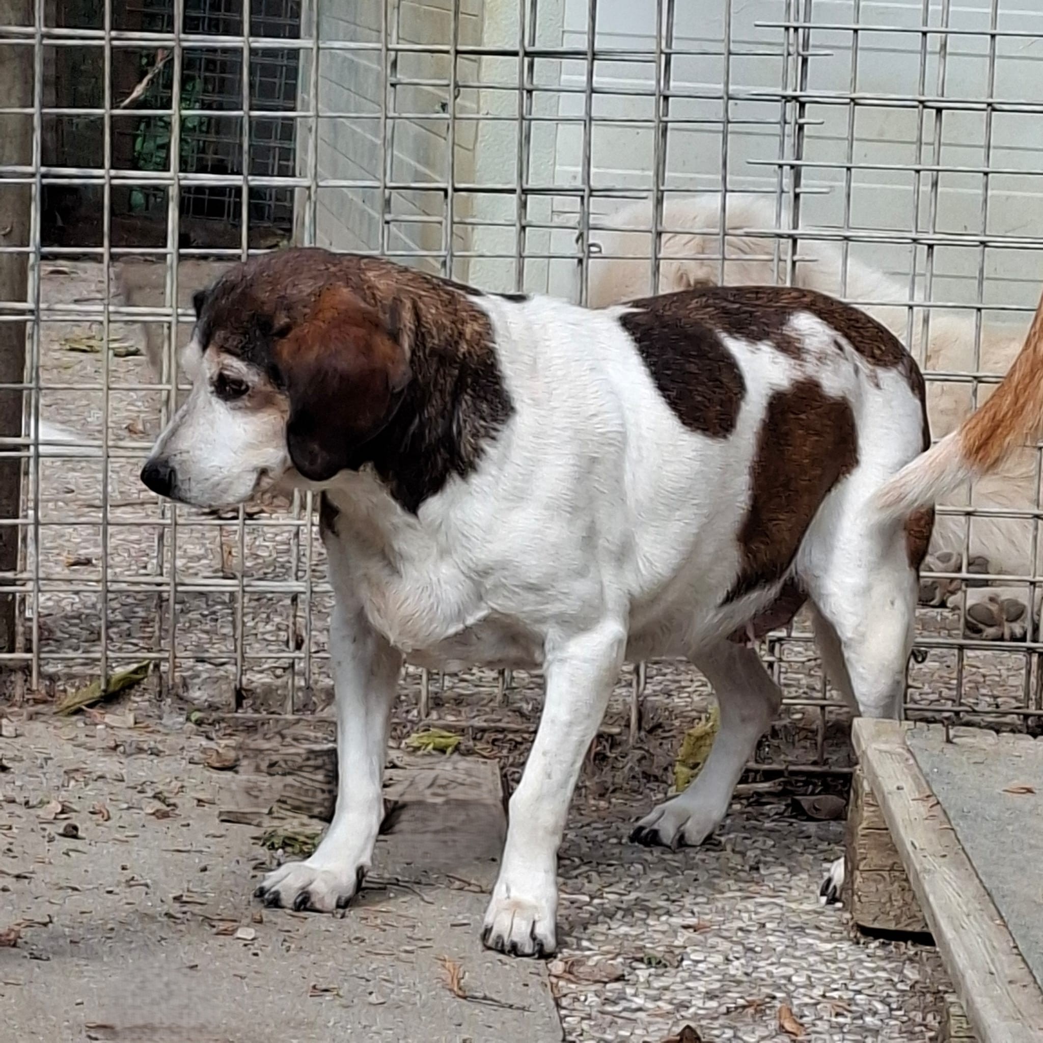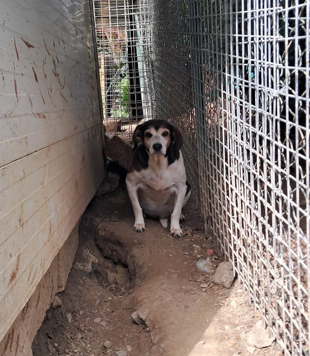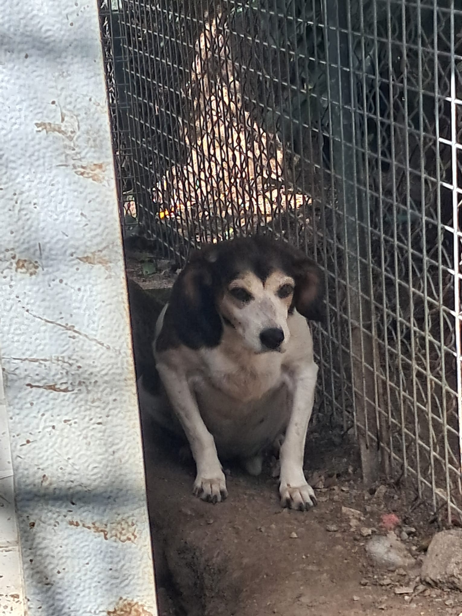 Die Beagle Mix Hündin Bianca kam zusammen mit Divo in die Auffangstation zu Brunella. Auch sie kommt aus Sizilien.