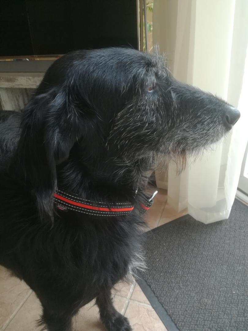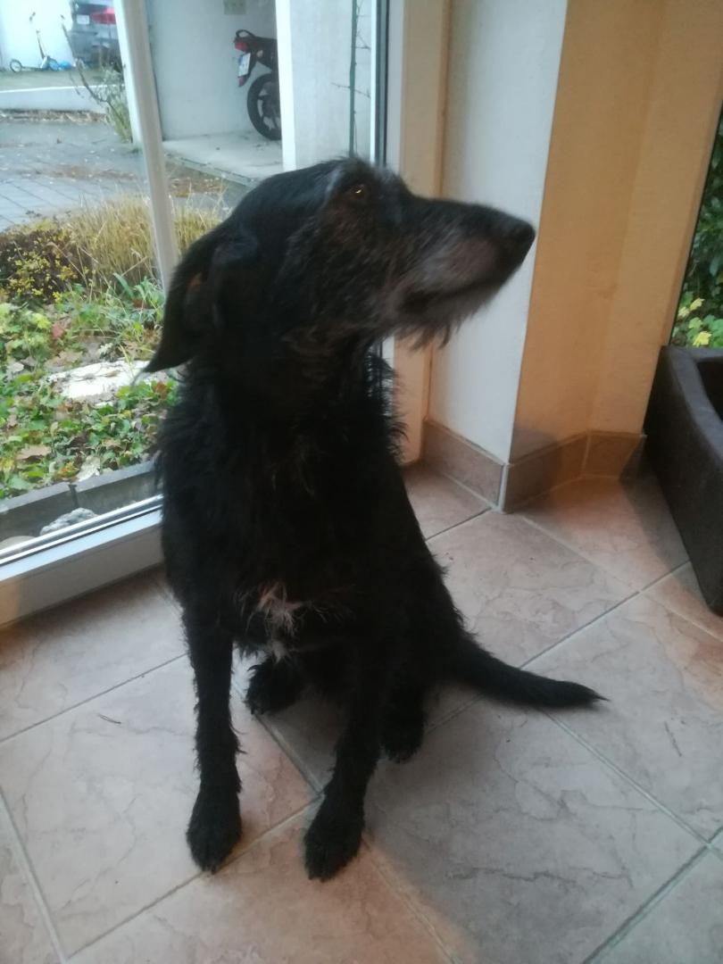 Vor knapp einer Woche kam Black bei uns an, ein ganz lieber und gutmütiger Rüde, der alles richtig machen möchte. Sein größtes Glück ist es, wenn er mit seinen Menschen auf dem Sofa kuscheln darf. Aber auch den Garten findet er toll und gibt draußen spielerisch auch schon mal Gas. Spaziergänge liebt er ebenfalls sehr, schnüffelt überall ausgiebig und nutzt die 10m der Schleppleine ohne in die Leine zu rennen, was sehr angenehm ist. Andere Hunde liebt er über alles und es wäre toll, wenn in seinem festen Zuhause ein Hundekumpel wäre. Black geht auf alle Hunde freundlich zu, egal ob Rüde oder Hündin und möchte spielen. Auch wenn fremde Hunde am Gartenzaun vorbei gehen, bellt er nicht, sondern steht fröhlich wedelnd da. Besonders originell ist Black’s weiß meliertes Gesicht mit den weißen Augenbrauen und Bart. Bei uns hat er daher den Spitznamen „Gandalf der Weiße“ bekommen 😉 Black ist ein ganz toller, freundlicher und gelehriger Familienhund, der Streicheleinheiten liebt, aber auch viel Energie hat und etwas erleben möchte. Lange Spaziergänge, Toben mit anderen Hunden und gemeinsame Aktivitäten aller Art in einer Hundeschule braucht er zu seiner Auslastung.