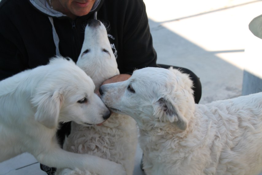 Bonita und Birra heißen die beiden Eisprinzessinnen, für die wir ein Zuhause suchen. Sie kamen Anfang Juni 2015 irgendwo in der Toskana als ungewollter Nachwuchs auf die Welt und wurden ins Tierheim abgeschoben. Eine gelungene Mischung aus Maremmano und wahrscheinlich engl. Setter. Aus den beiden Welpen werden einmal große, stattliche und bestimmt auch bildhübsche Herdenschutzhunde werden. In Italien wird der Maremmano hauptsächlich als Begleiter und Bewacher der Schafherden eingesetzt. Der Maremmano mag vielleicht optisch einem Golden Retriever ähnlich sehen, aber ihre Charaktere unterscheiden sich komplett. Während der Retriever kindisch verspielt seinem Chef gefallen möchte, hat ein Maremmano das nicht nötig, denn er weiß wer ist! Er ist dazu gezüchtet worden seine eigenen Entscheidungen zu treffen, wenn der Wolf kommt, und das tut er heute auch noch, wenn z.B. der Wolf der Briefträger ist. Aufgrund dieser jahrtausendlangen Geschichte ist der Maremmano ein robuster, mutiger und selbstständiger Hund und hierdurch sicherlich kein Hund für Jedermann. Vom gesunden Selbstbewusstsein bis hin zum massiven Sturkopf kann sich der Charakter ausprägen. Einen Maremmano für Agility oder Ballspielchen zu begeistern dürfte schwer werden. Auch Unterordnung wie man sie vom Deutschen Schäferhund u.a. Rassen kennt, sind nichts für einen Herdenschutzhund. Der Name sagt es schon, er findet meist seine Erfüllung als Herdenbewacher, gern auf einem erhöhten Aussichtsplatz, von dem aus er das Grundstück und die Umgebung gut überblicken kann. Bei richtigem Umgang/Erziehung ist der Maremmano ein lernfreudiger, gutmütiger, freundlicher und zuverlässiger Hund.