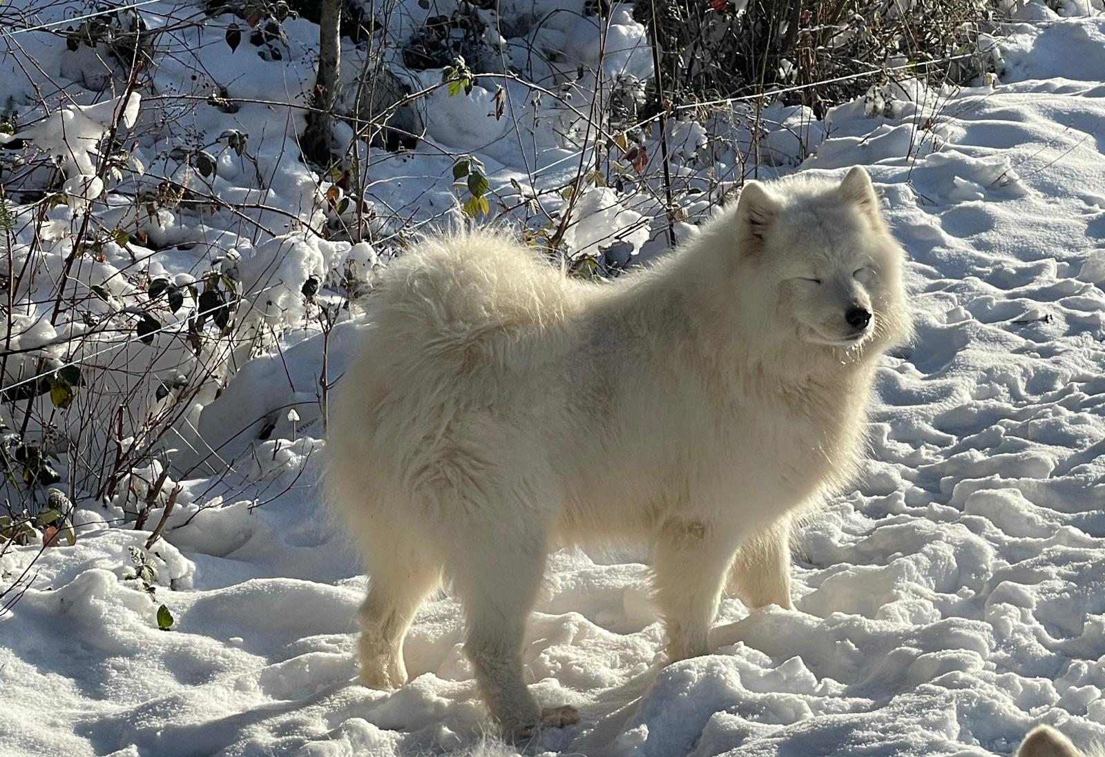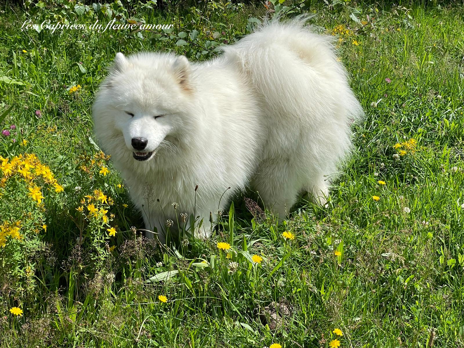 Capucine wurde am 10.12.2018 geboren, sie ist kastriert, geimpft und sowohl mit Hündinnen wie mit Rüden verträglich und ist nicht dominant. Sie lebt derzeit in der kleinen Meute und hält mit ihrer freundlichen, zugewandten Art die Meute zusammen, agiert als Vermittlerin. Sie liebt Streicheleinheiten und kuscheln. Sie hat ein ruhiges Wesen und liebt lange Spaziergänge besonders im Wald. Sie lebt mit einigen ihrer Gefährtinnen im Haus und ist daher an das Leben im Haus gewöhnt, sie mag es also gerne komfortabel. Sie kennt daher auch die gängigen Befehle, ist äußerst gepflegt und gut erzogen, und samojedentypisch auch unabhängig.