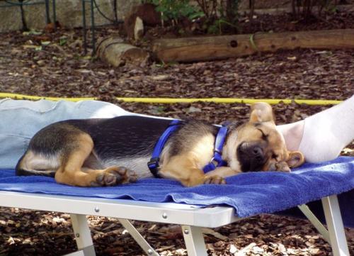 Mein Frauchen Jana zeigt mir viele neue Sachen und ich schlafe am liebsten ganz nahe bei ihr.