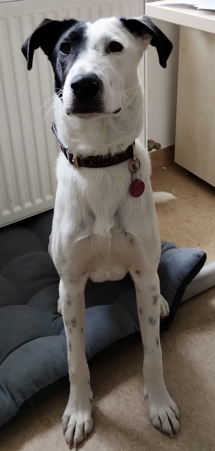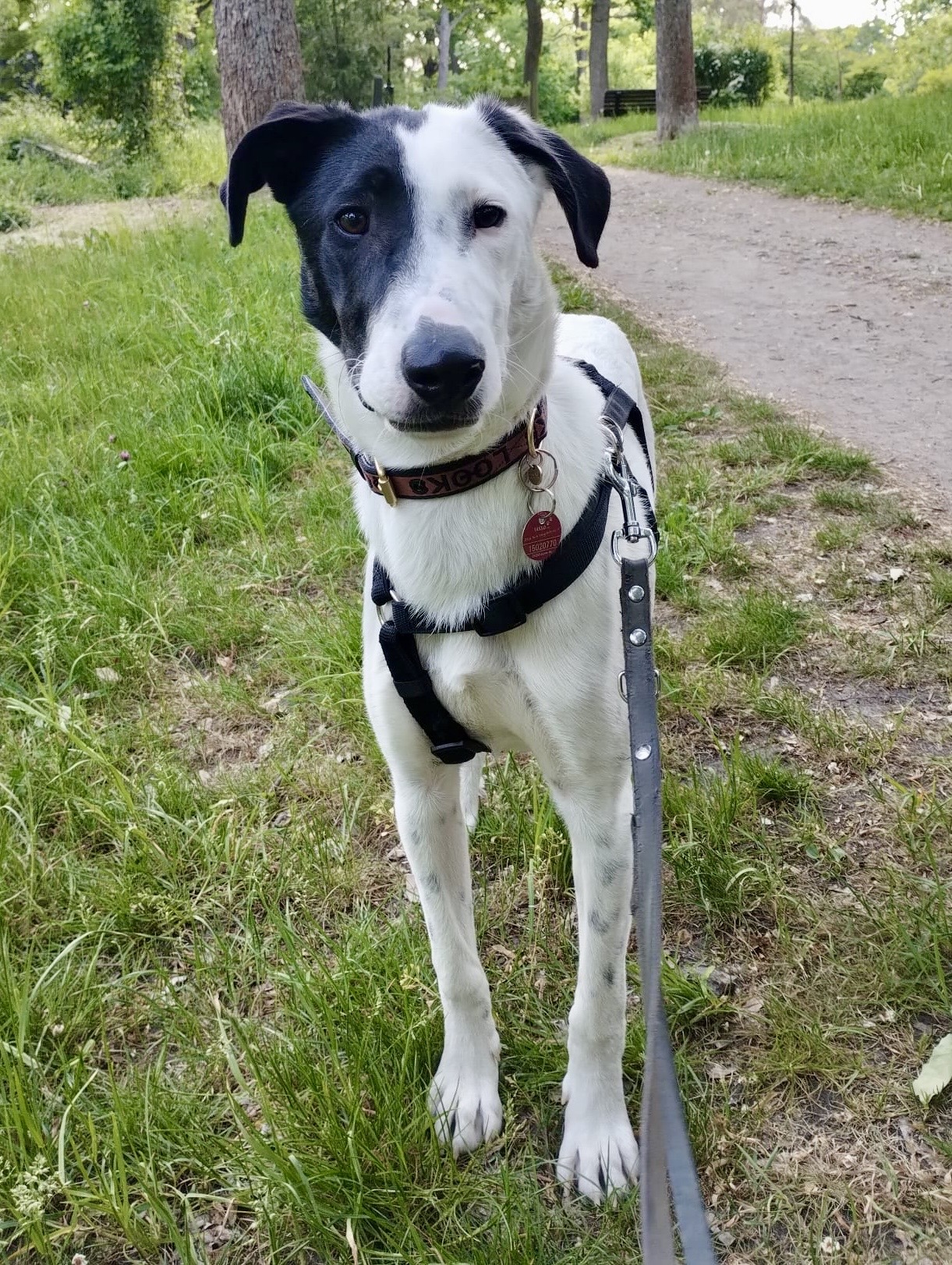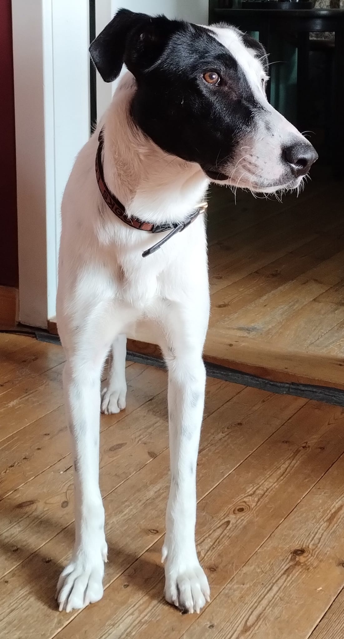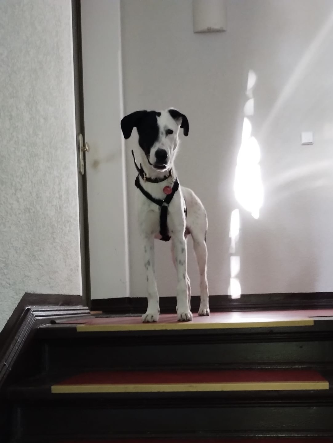08/2025: Carlos ist wieder ein paar Zentimeter gewachsen, er hat einen sehr schmalen Körperbau und recht lange Beine. Was da wohl alles für Rassen in ihm stecken? Er ist ein agiler Hund, der viel Aufmerksamkeit einfordert. Obwohl er von Welpe an in der Stadt lebt, findet er es dort nicht ganz so toll. Zu viele Begegnungen draußen stressen ihn und auch das Leben im Mietshaus lässt ihn aufgrund der vielen Geräusche nicht zur Ruhe kommen. Carlos begleitet sein Pflegefrauchen von Anfang an mit in eine kleine Pflegewohngemeinschaft und zaubert durch seine Anwesenheit so manch einem Bewohner ein Lächeln ins Gesicht. Fremden Menschen begegnet er anfangs zurückhaltend, taut dann aber auf. Carlos ist mit Hündinnen verträglich, bei Rüden entscheidet die Sympathie.