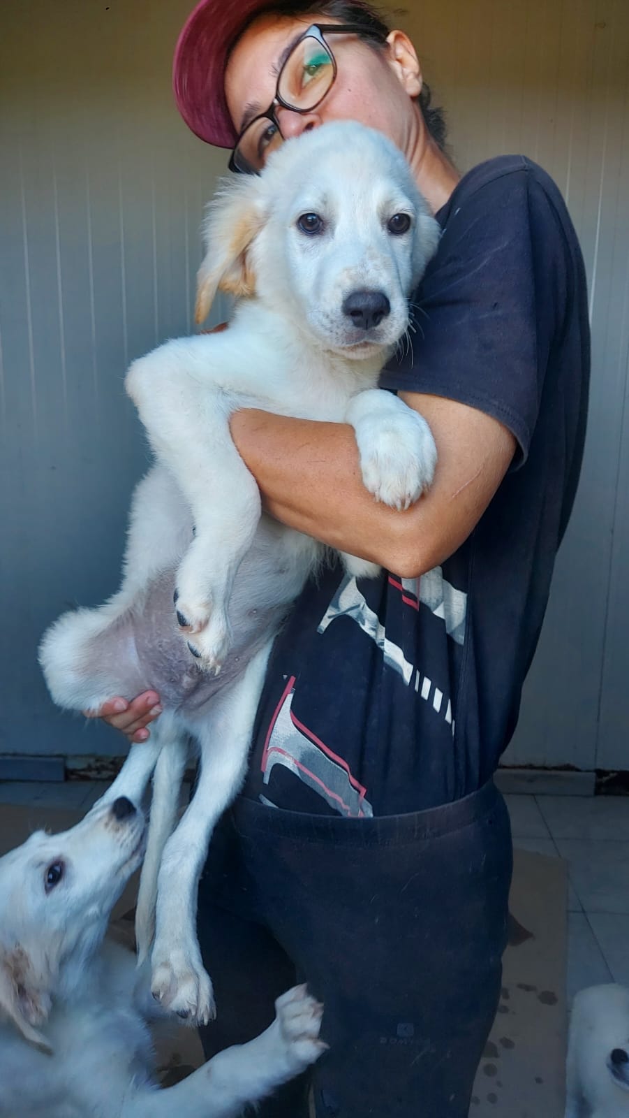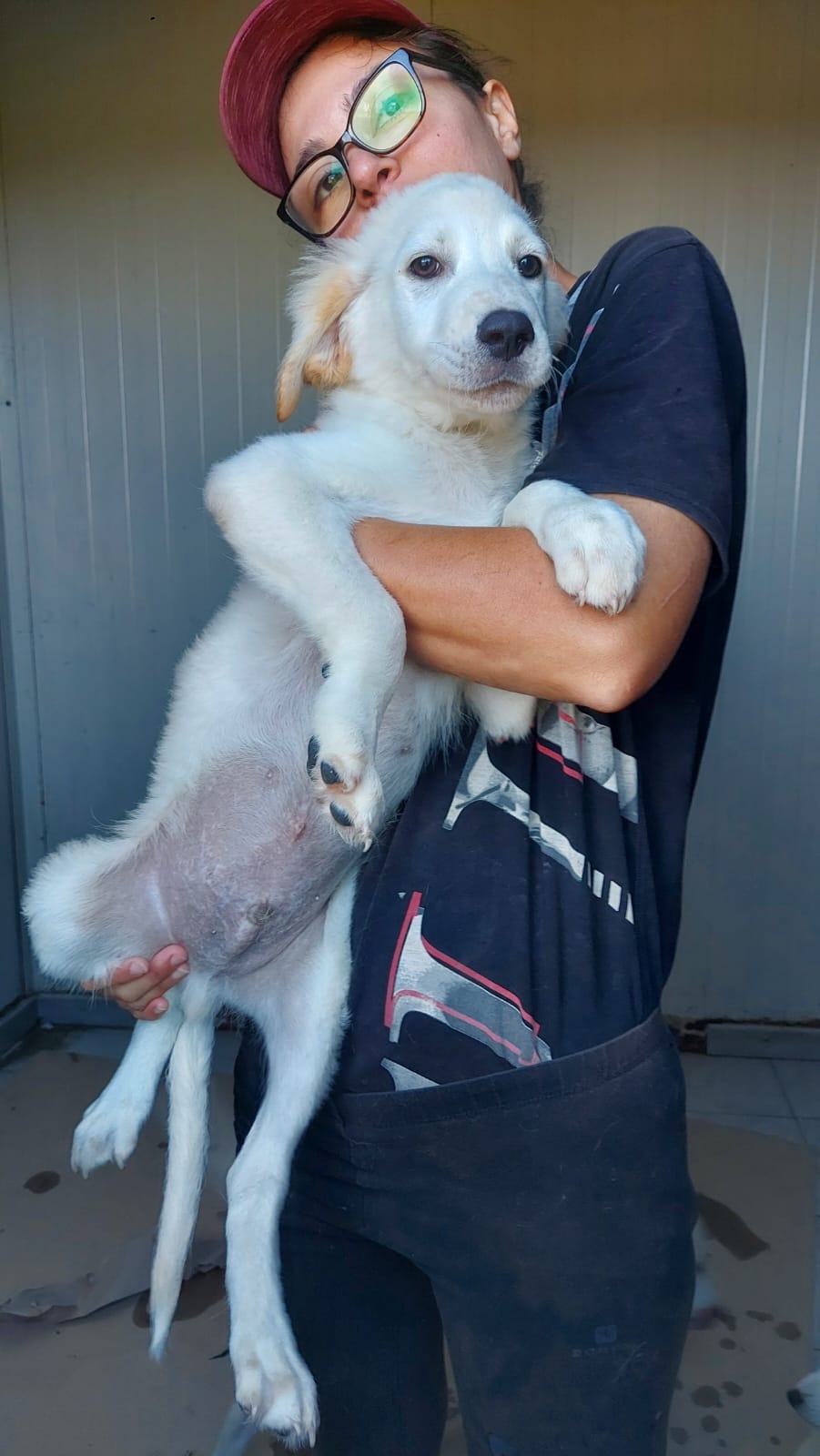 Conte wurde mit seinen beiden Schwestern Cinzia und Carla von Touristen in der Nähe eines Tierheims auf Sardinien gefunden und dort bei unseren italienischen Kollegen abgegeben. Bei den Geschwistern handelt es sich um Maremmanomixe, also Herdenschutzhundmixe.