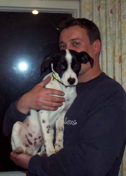 Der kleine Fiume, ein schwarz-weißer, hübscher Hundebub durfte mit 10 Wochen im Winter 2004/2005 von Arezzo den Weg hierher antreten.