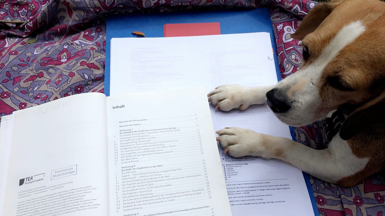 Gunda zeigt sich von ihrer Schokoladenseite…Sie benimmt sich vorbildlich! Unterstützt ihr Frauchen sogar beim Lernen für’s Studium. Die brave Gunda verzaubert alle, die sie kennenlernen!