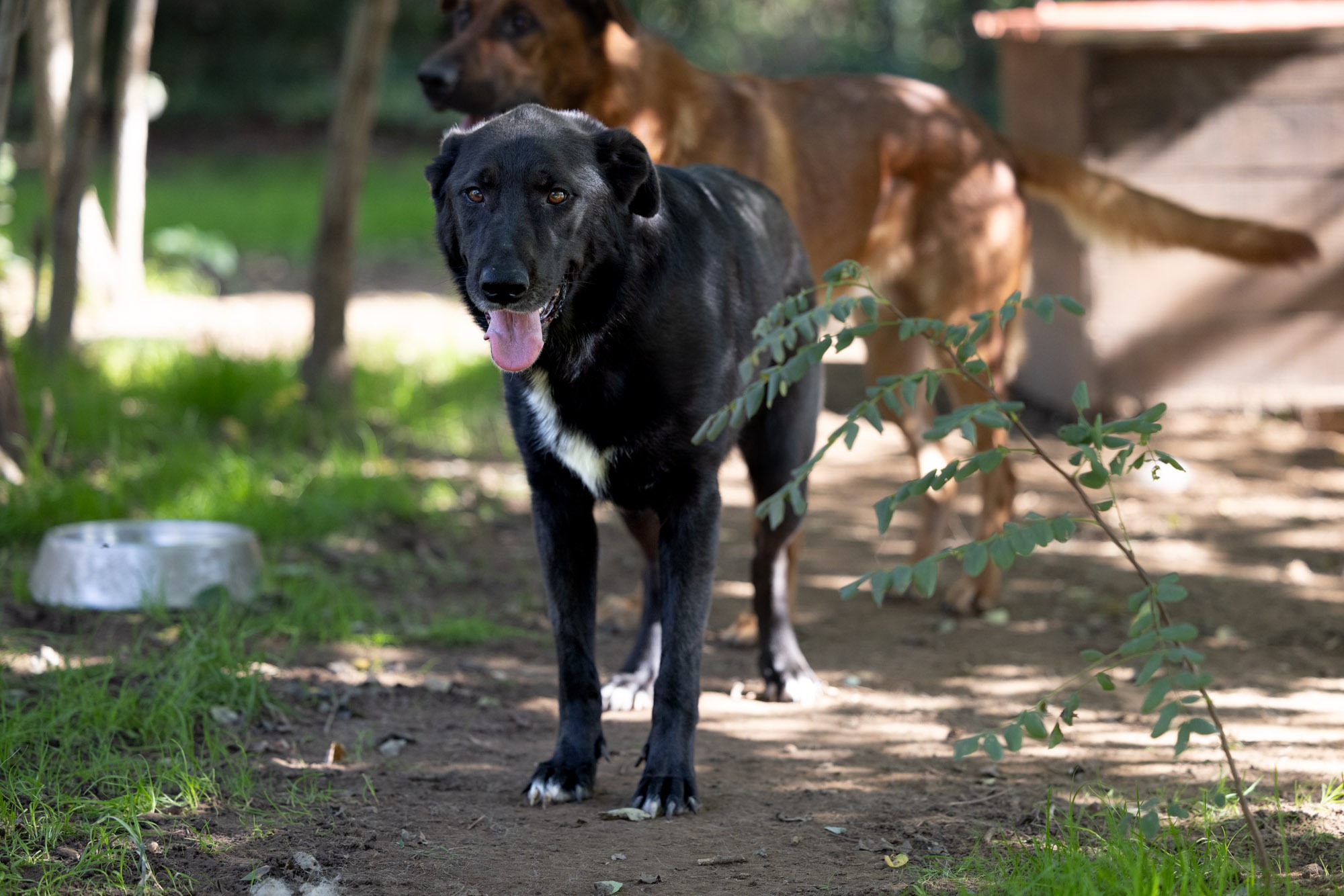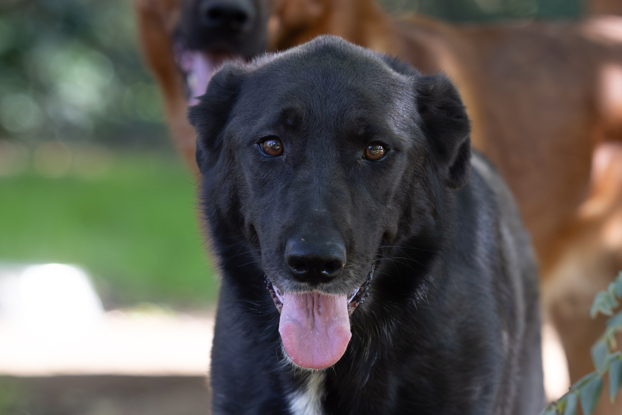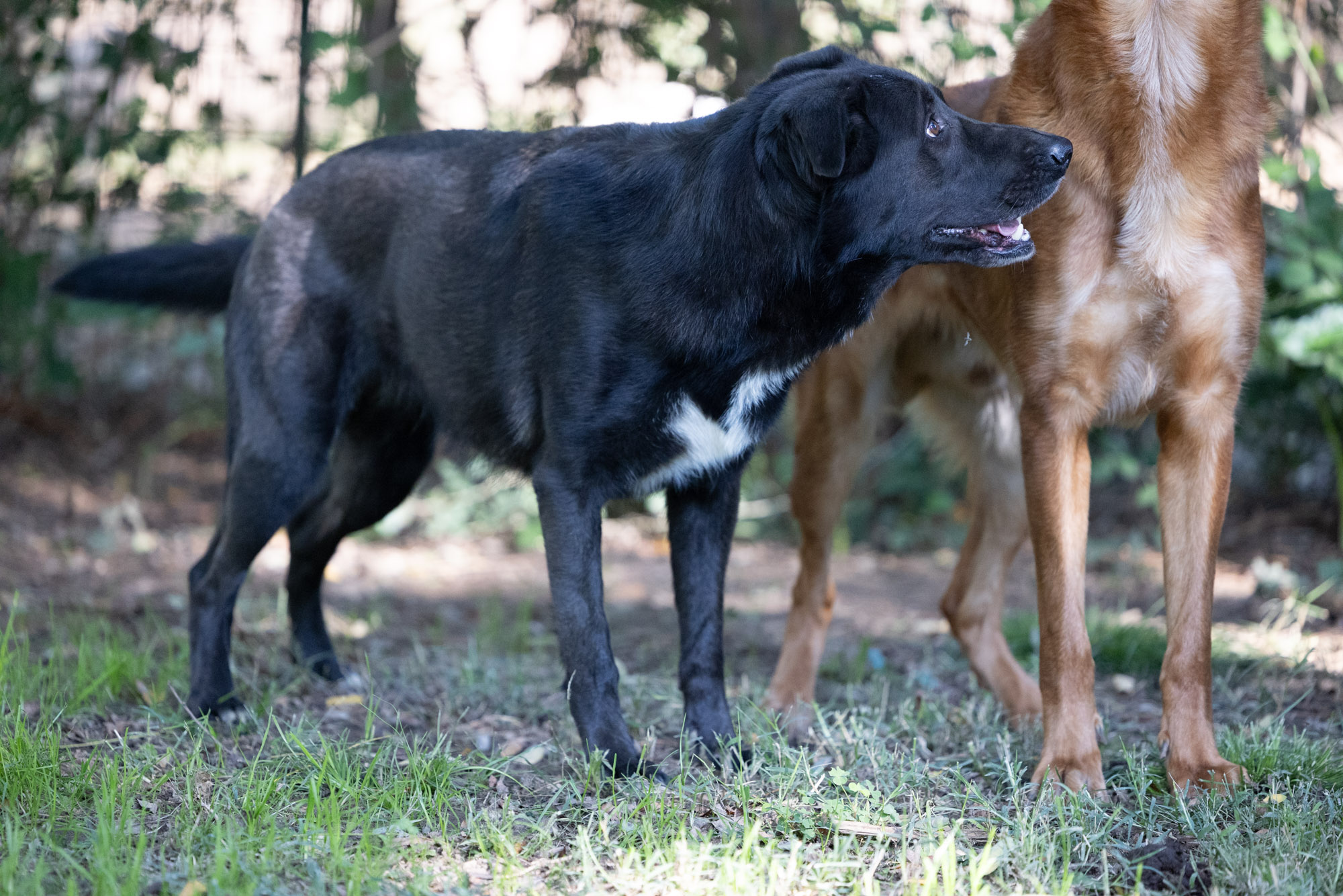 Im Herbst durfte ich die beiden persönlich kennenlernen. Sie teilen sich ein Gehege mit Lora, Zepam und weiteren Hunden. Demnach sind sie kompatibel mit Rüden und Hündinnen. Sie kamen neugierig zu mir an den Zaun um sich streicheln zu lassen. Leider war keine Zeit, um alle Gehege zu betreten. Die beiden ohne Abgrenzung zu kuscheln, das werde ich bei meinem nächsten Besuch auf jeden Fall nachholen. Sofern sie noch dort sind… mein eigentlicher Wunsch ist natürlich, dass sie vorher ein Zuhause finden! Schwarze Hunde haben es da besonders schwer…