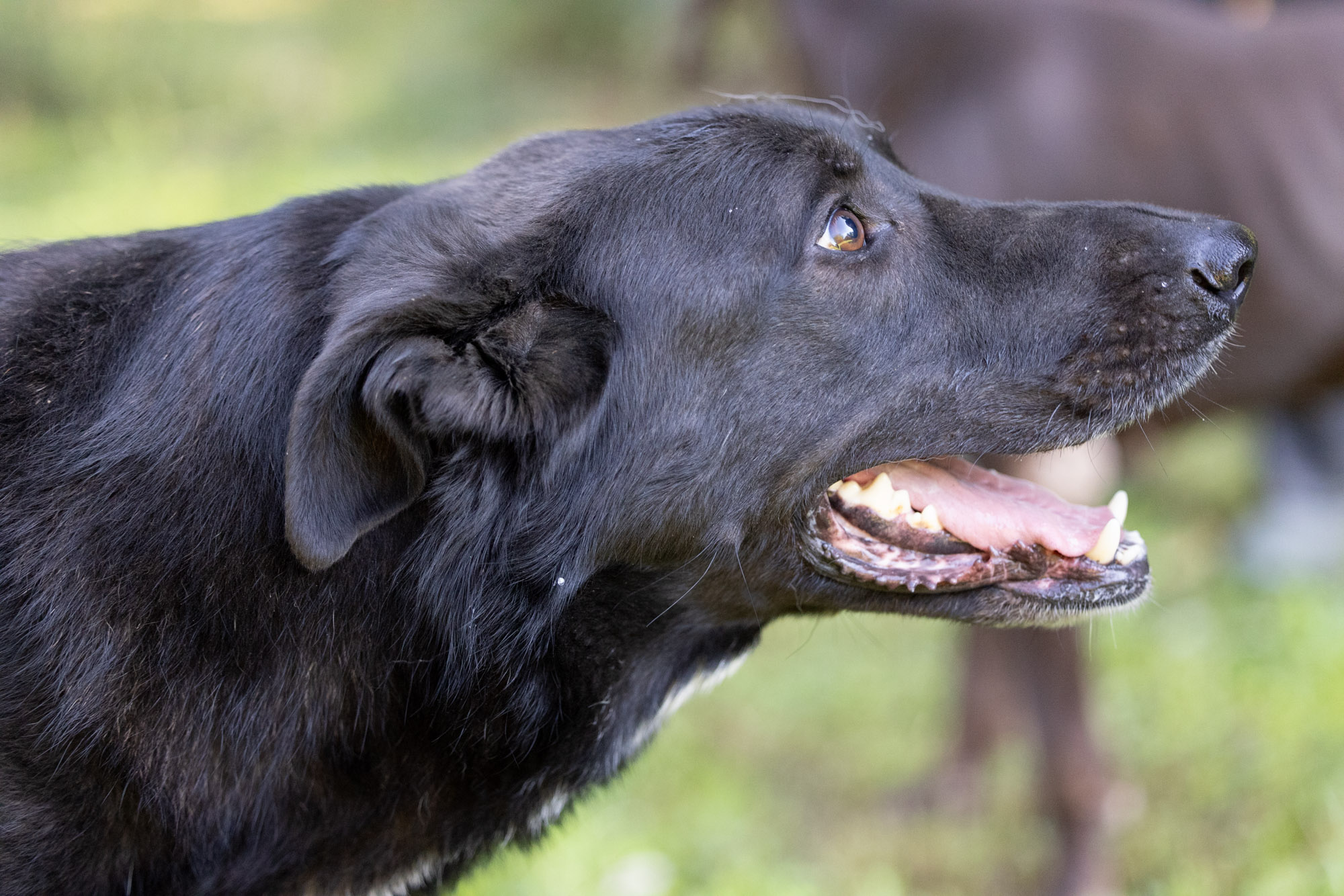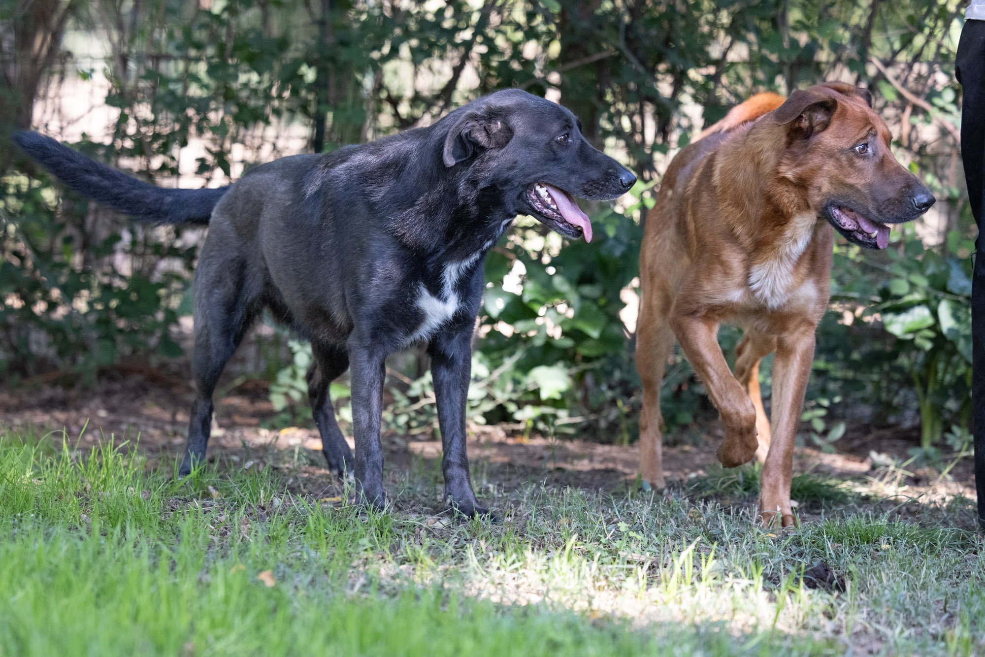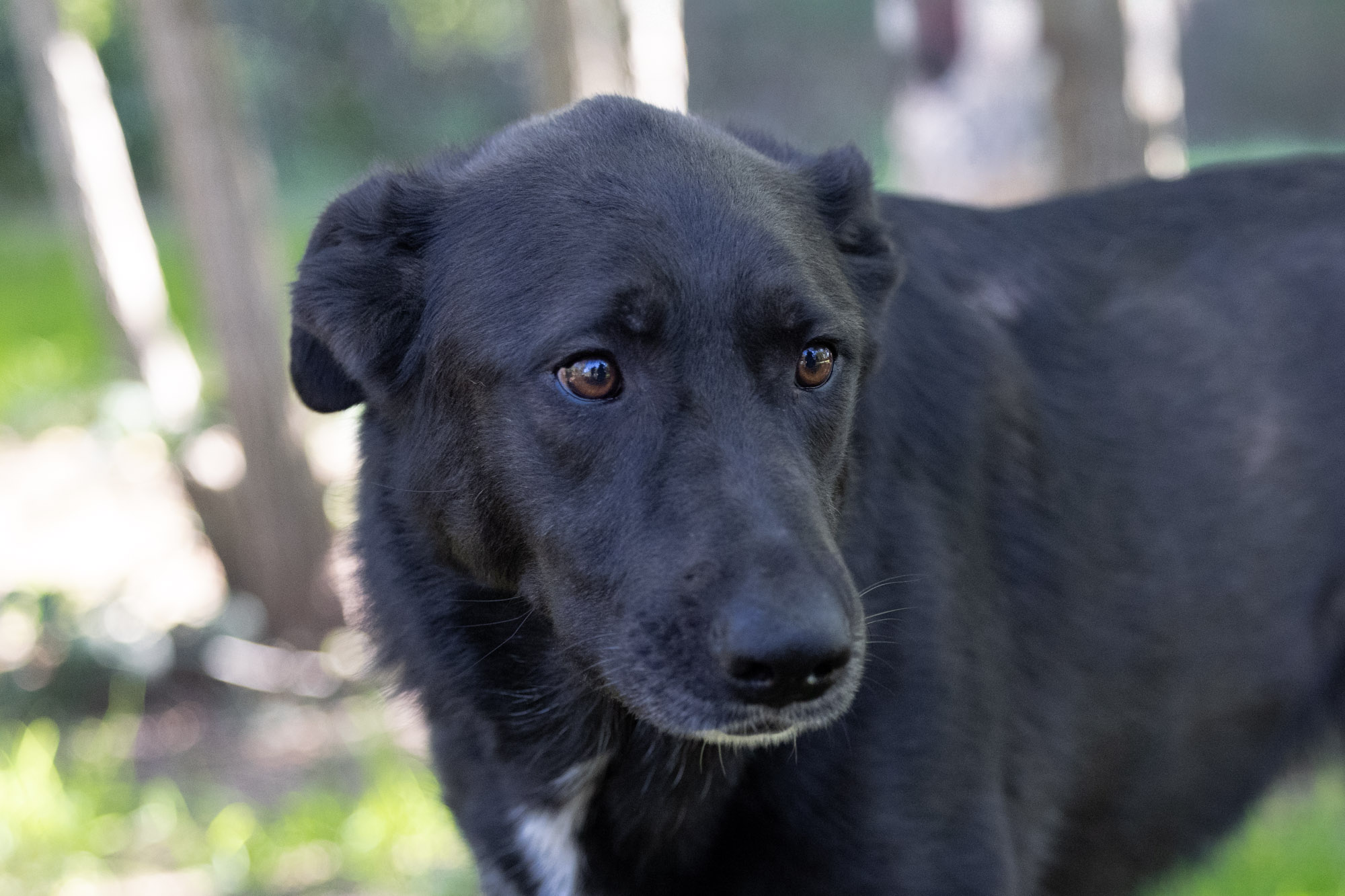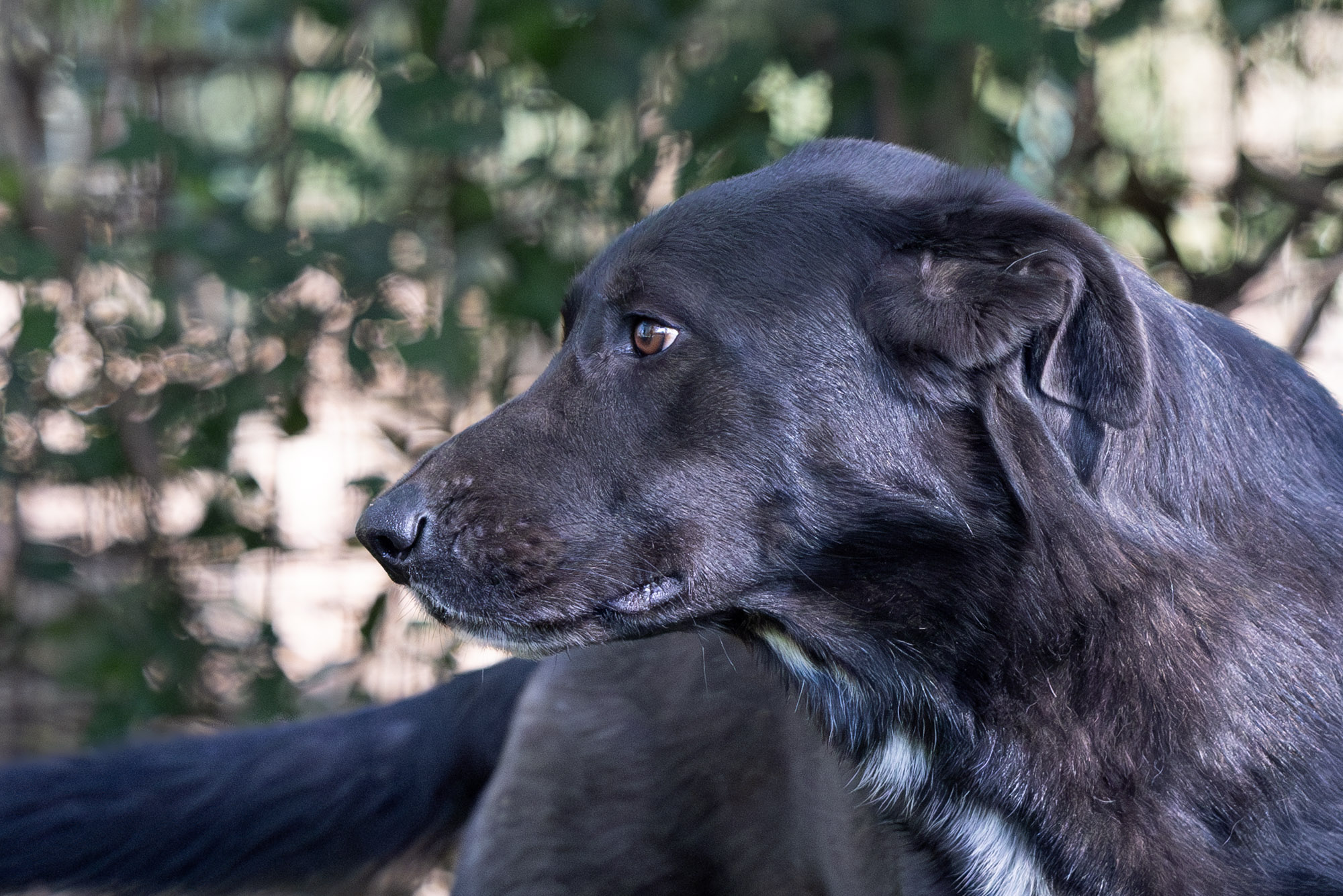 Im Herbst durfte ich die beiden persönlich kennenlernen. Sie teilen sich ein Gehege mit Lora, Zepam und weiteren Hunden. Demnach sind sie kompatibel mit Rüden und Hündinnen. Sie kamen neugierig zu mir an den Zaun um sich streicheln zu lassen. Leider war keine Zeit, um alle Gehege zu betreten. Die beiden ohne Abgrenzung zu kuscheln, das werde ich bei meinem nächsten Besuch auf jeden Fall nachholen. Sofern sie noch dort sind… mein eigentlicher Wunsch ist natürlich, dass sie vorher ein Zuhause finden! Schwarze Hunde haben es da besonders schwer…