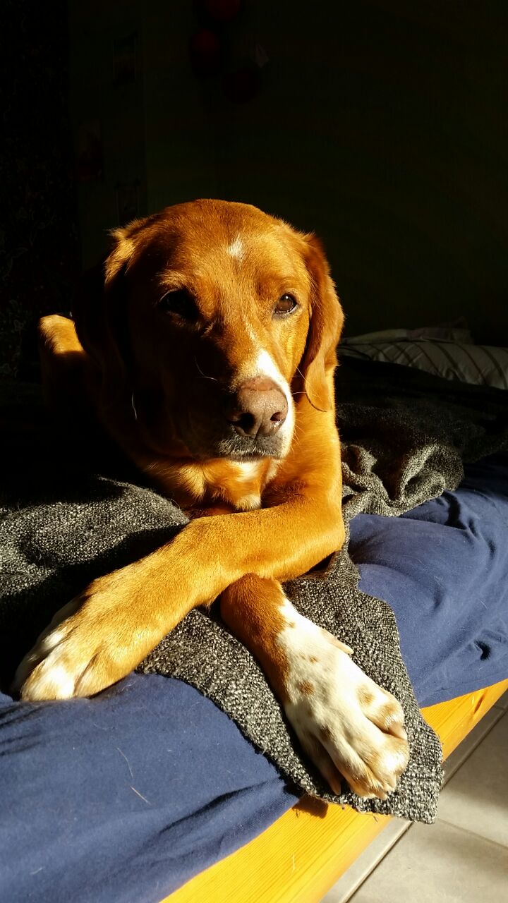 Tommy ist ein gelassener und souveräner 11 jähriger Labrador-Segugio Rüde. Seine Herkunft kann er auch gar nicht leugnen denn der typische Hundeblick des Labradors sitzt eins A! In der Wohnung ist er ruhig und entspannt er bellt nicht und war von Anfang an stubenrein. Er sucht und genießt die Nähe und Zuneigung seiner Menschen. In unserer Wg und auch bei unseren bisherigen Besuchern sammelt er so viele Streicheleinheiten wie er nur kriegen kann und ist dann schon auch mal leicht empört wenn diese nicht lang genug ausfallen. Mit seiner Gelassenheit hat er vor allem über den Jahreswechsel alle beeindruckt. Die Böllerei die schon mittags begann ließ ihn beim Spazieren und auch in der Wohnung völlig kalt. Durch unsere Partygäste am Abend lernte er schnell: je mehr Gäste desto mehr potenzielle Bauchkrauler und liebevolle Worte. Die Gäste waren sich einig “ so einen entspannten und zutraulicher Hund haben wir an Silvester noch nie erlebt“.