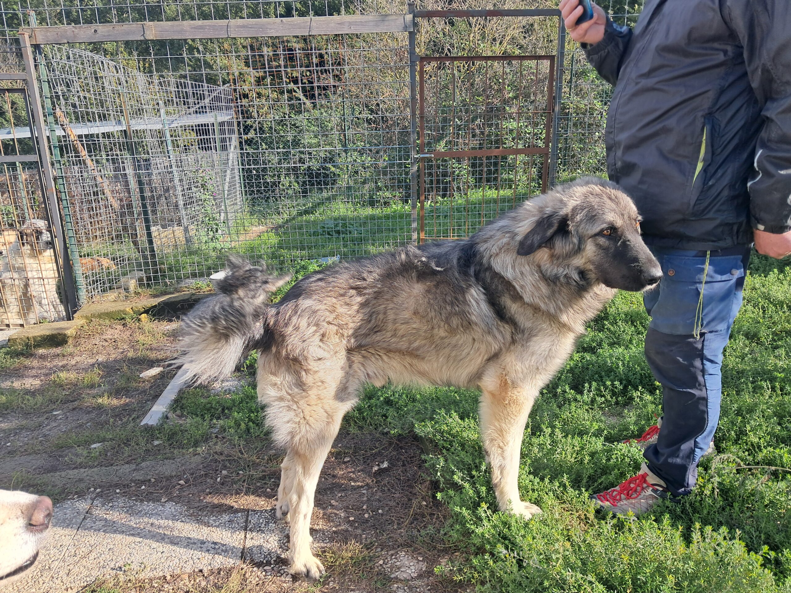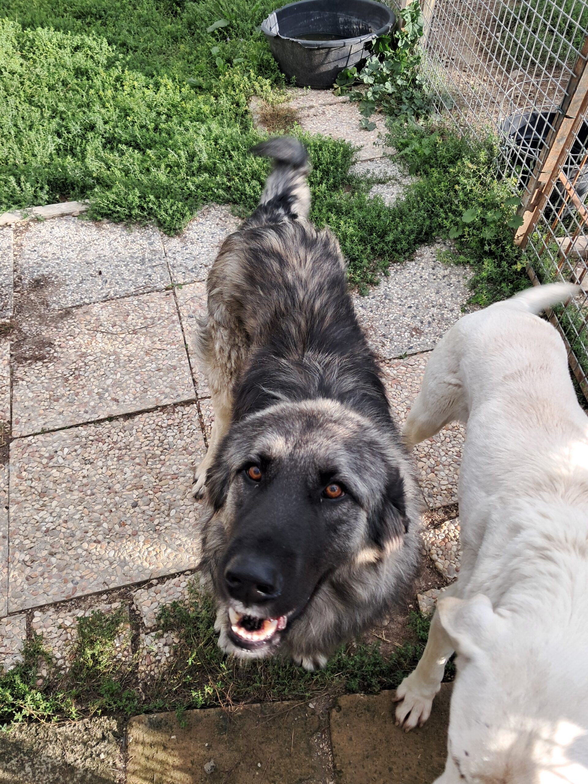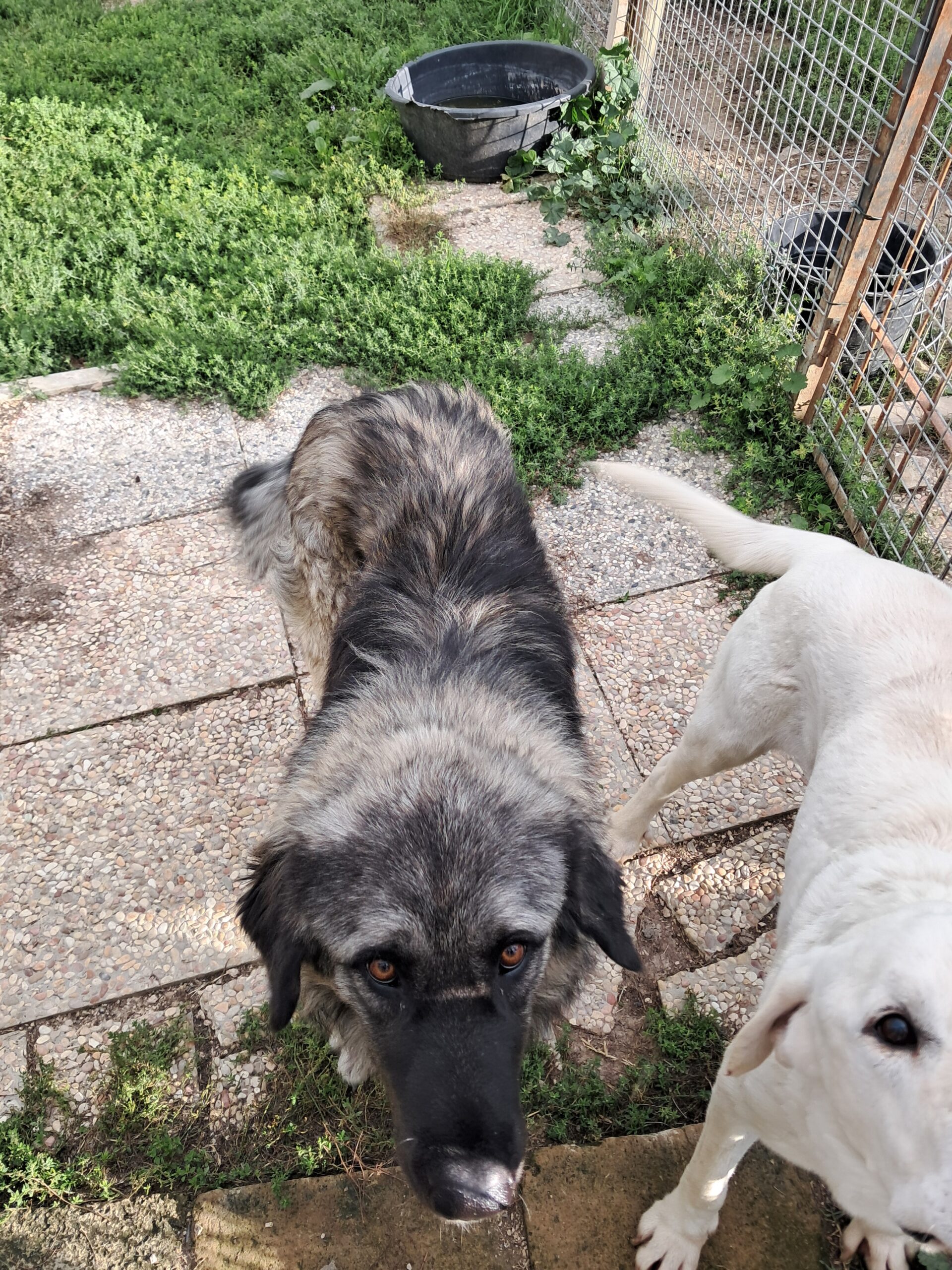 Kamus hat sich sehr gefreut als wir in sein Gehege gekommen sind! Er teilt es mit 2,3 anderen Hunden, Rüden und Hündinnen. Seine Verträglichkeit mit anderen Hunden wird sich weiter formen. Grundsätzlich ist er mit allen verträglich.