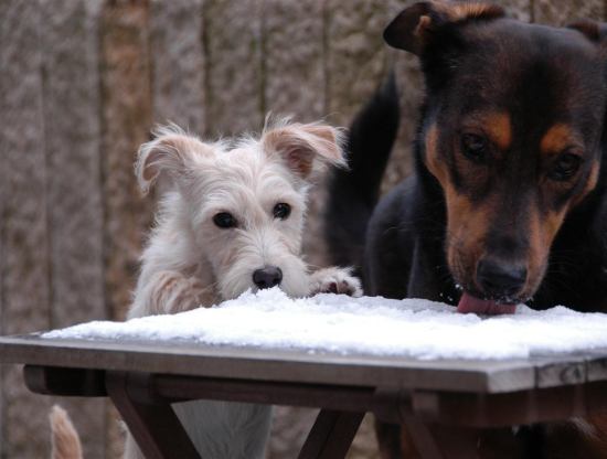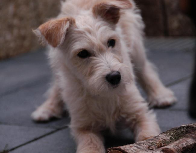Krümel lebt nun bei einer Familie mit Haus und Garten in Oberursel und darf sie und den bereits vorhandenen Terrier mit in die Firma begleiten.