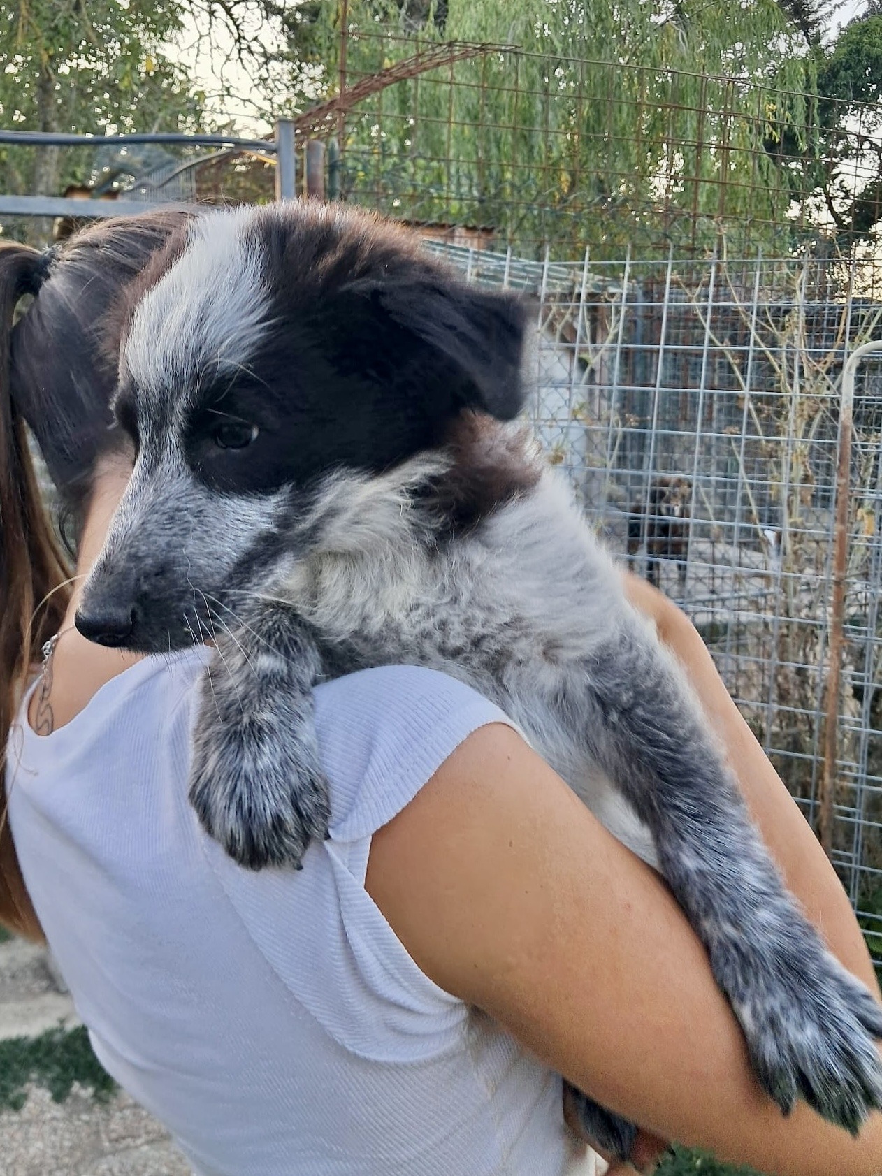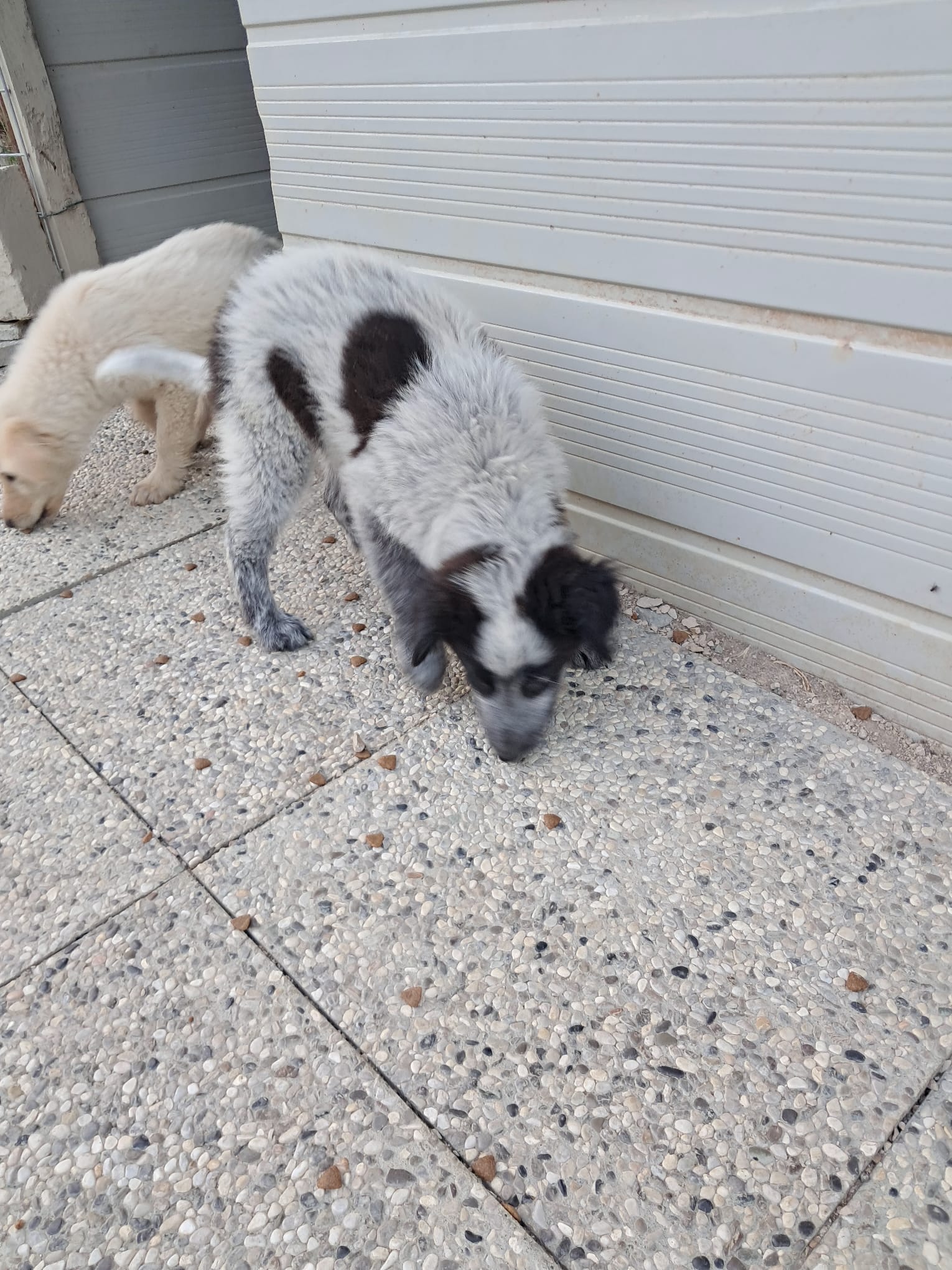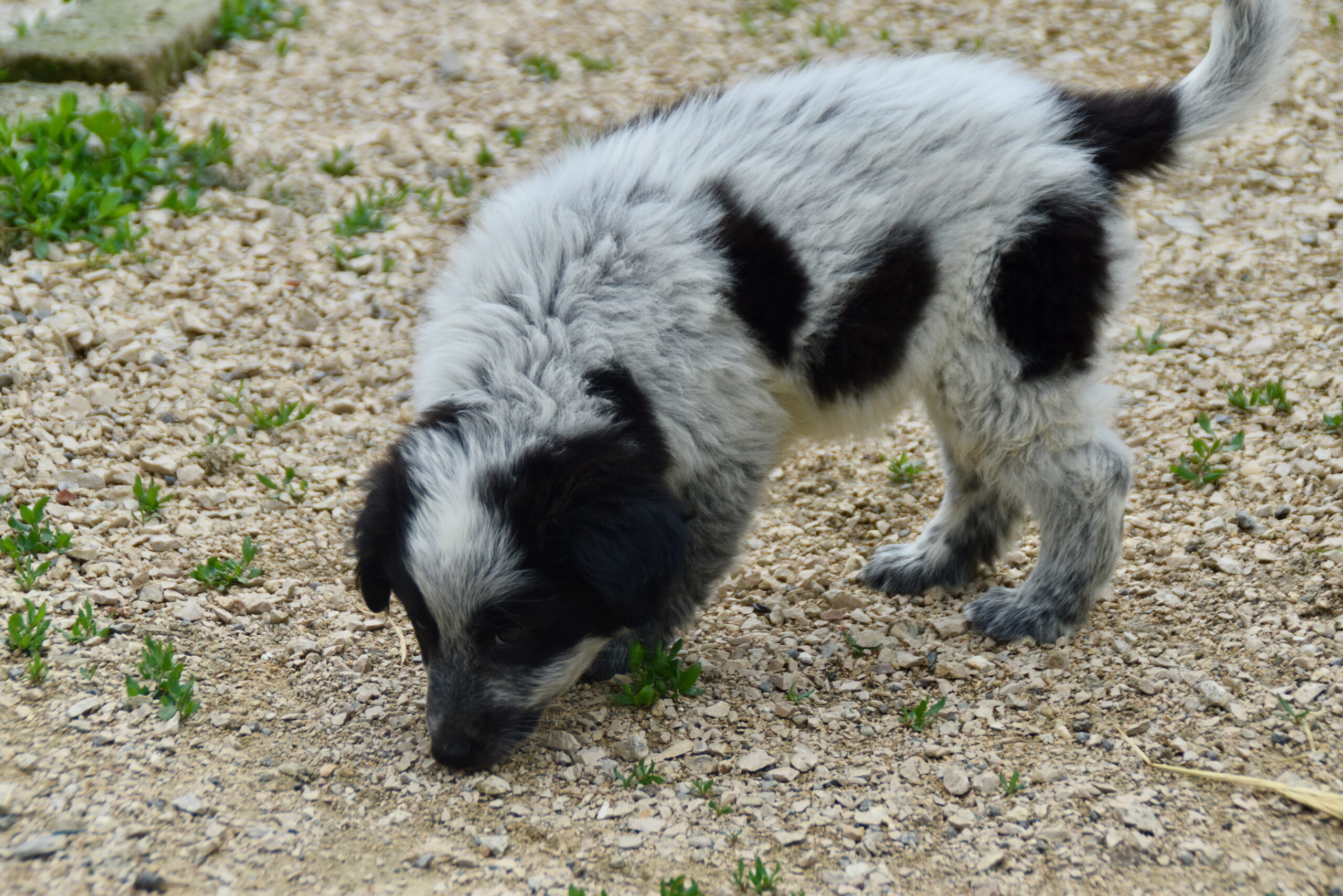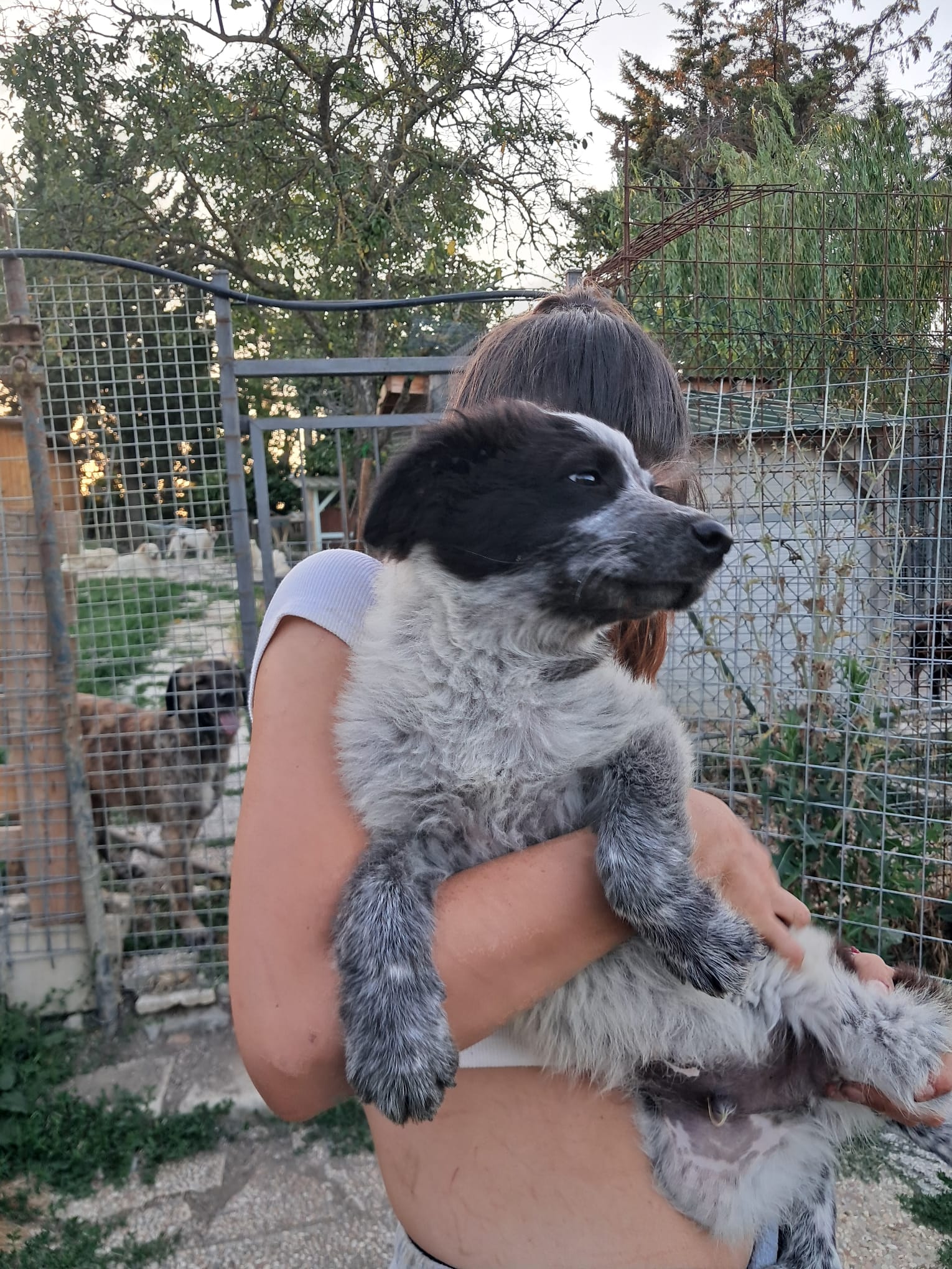 05/2025: Mercurio ist einer von fünf Welpen, die in einer Auffangstation geboren wurden. Ihre Mutter ist eine Maremmano-Mischlingshündin (60 cm), der Vater ein dunkler Mischlingsrüde (50 cm). Aktuell leben die fünf kleinen Fellknäule noch gemeinsam mit ihrer Mama und einer weiteren Hündin in einem Gehege. Ganz welpentypisch sind sie verspielt, knabbern auf allem herum und fangen bereits an, ihre Rangordnung im Rudel auszumachen.