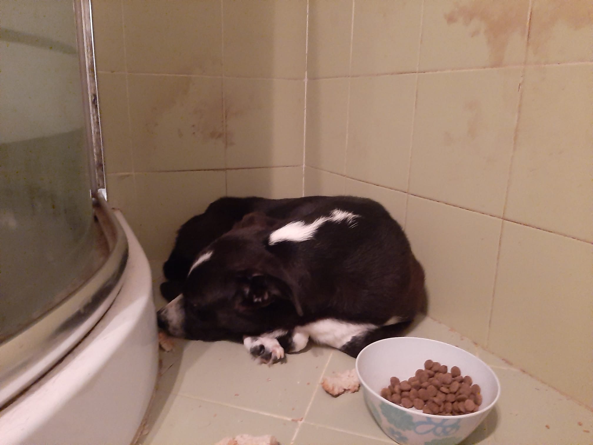Mimmo lebt immer noch im Badezimmer von Cinzia. Er traut sich selber nicht raus, die Hunde draußen machen ihm Angst. Er ist sehr unsicher. Bestimmt ist ihm bewußt, dass er nicht fit ist und im Notfall mit seinem Beinchen nicht schnell genug weg kommt, wenn es mal nötig ist. Wir brauchen für Mimmo wirklich ein kleines Wunder bei erfahrenen Menschen mit einem riesen Herzen. Er kennt nichts, da er als Welpe diesen schrecklichen Unfall hatte.