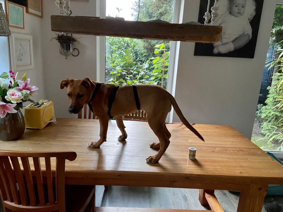 Minerva ist in Deutschland angekommen. Erster Eindruck der Pflegestelle: eine unglaublich liebe und menschenbezogene Hündin. Ein Traumhund. Leider ist Harmonie mit der vorhandenen Ersthündin nicht gegeben, daher wäre evtl. ein Einzelplatz besser für sie ?! Der Besuch einer guten Hundeschule ist absolut empfehlenswert, damit die Möglichkeit auf soziale Kontakte gegeben ist. Ansonsten ist sie Welpen typisch verspielt, hat viel Power und jede Menge Unfug in ihrem kleinen Köpfchen.