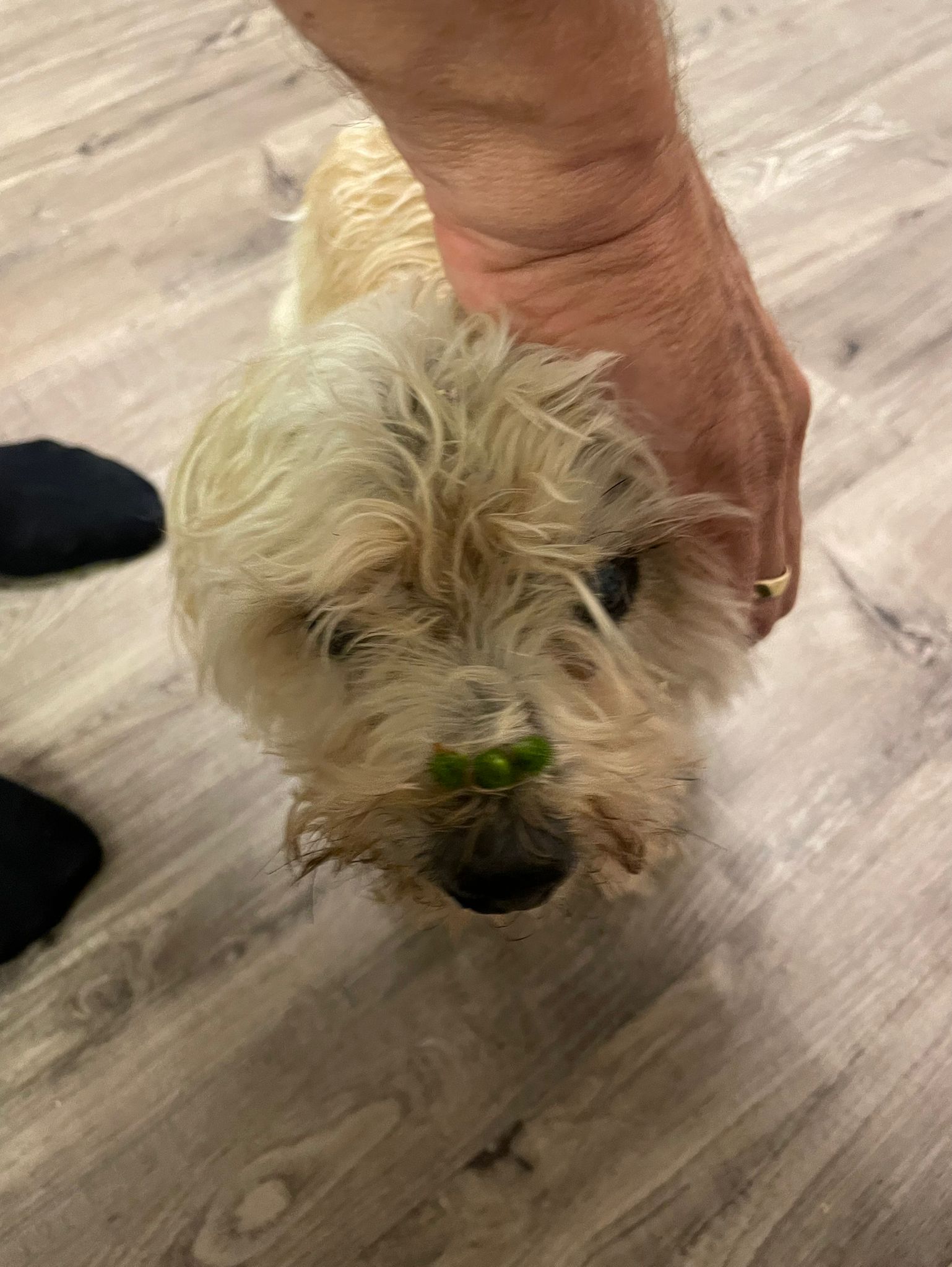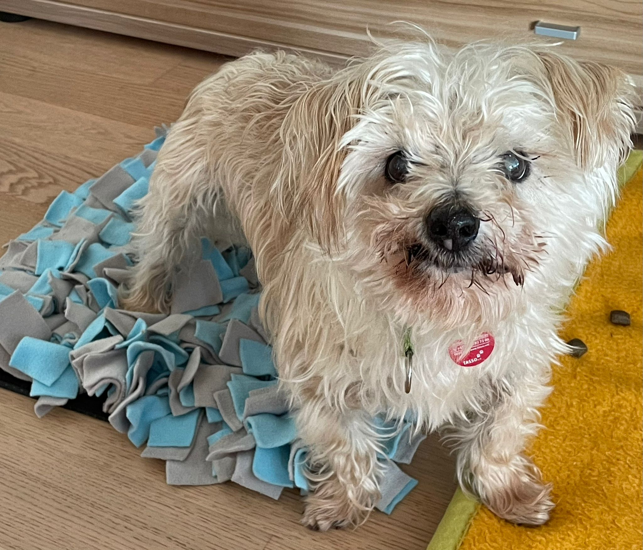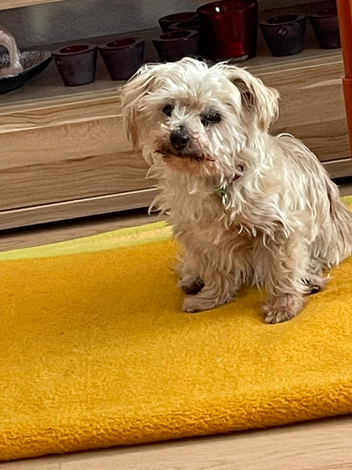 Micky lebt sich weitere zwei Wochen ein. Er hat ein kleines Mäntelchen bekommen, der plötzliche Wettereinbruch ließ ihn frieren. Schmusen findet er toll! Er befindet sich noch auf dem Weg zur Stubenreinheit… alles will gelernt sein. Wir haben den Eindruck, dass sein Sehen und Hören altersentsprechend beeinträgtigt sind, er ist am liebsten an Frauchens Fersen, dort kann er sich wohl gut orientieren.
