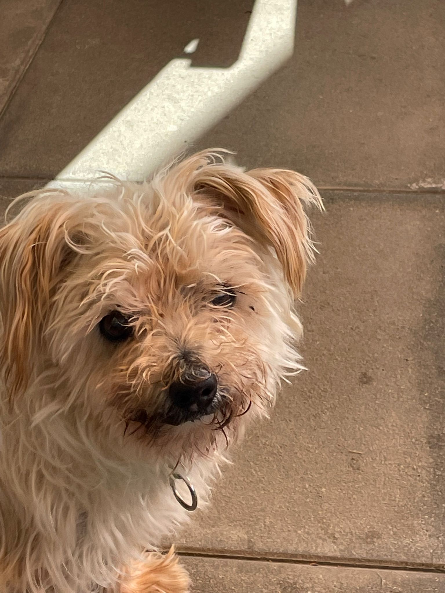 So wurde der kleine, süße Micky im Alter von ca. 12 Jahren (Stand Aug. 24) einfach vor dem Sanitario ausgesetzt! Was soll Giusy denn tun??? Ihn sitzen lassen? Woanders aussetzen? Sicher nicht!