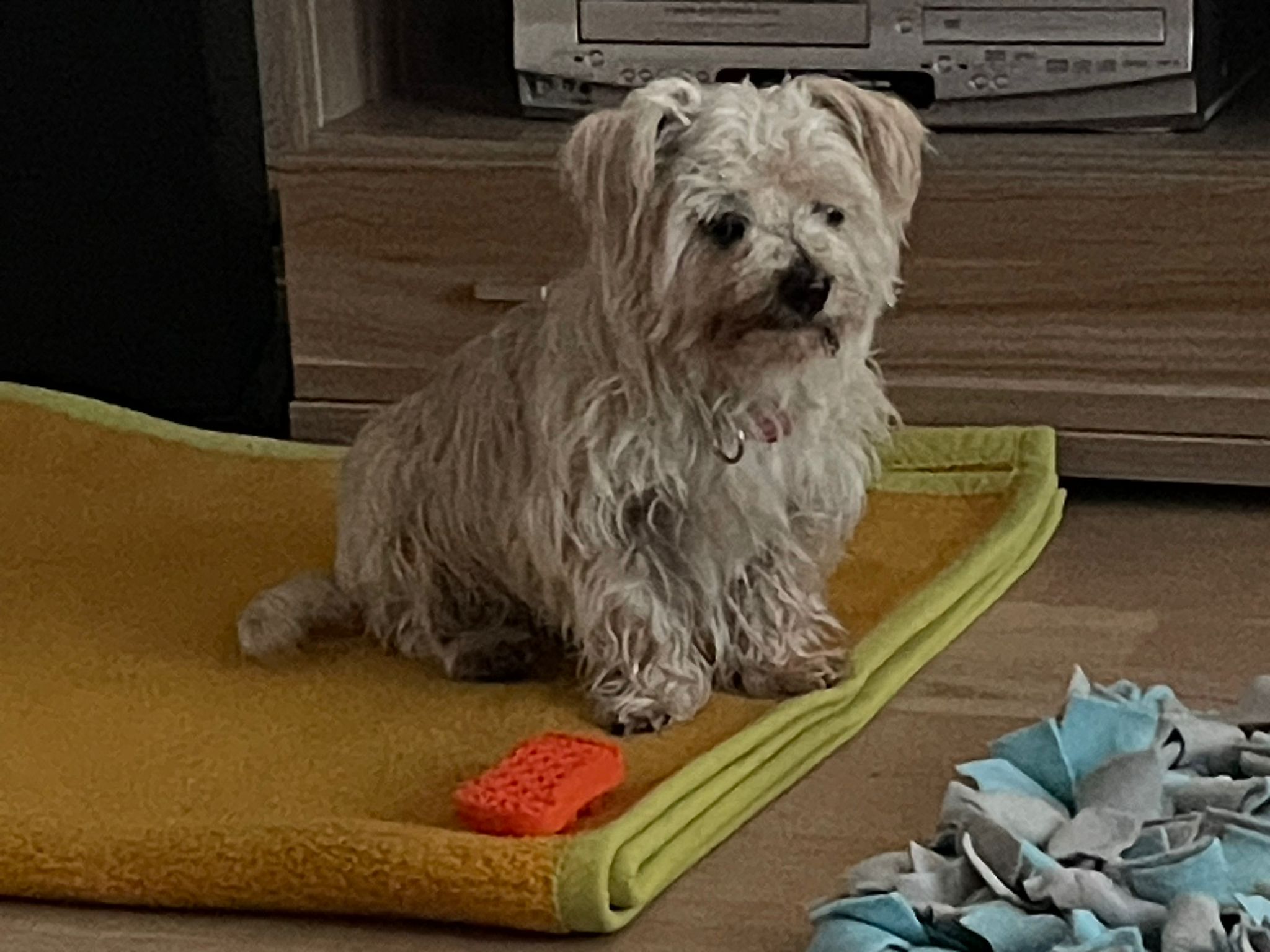 Micky ist auf seiner Pflegestelle eingezogen. Sein Geburtstag wurde auf den 1.7.2012 festgelegt. Er ist verträglich mit anderen Hunden, hat sein Spiegelbild kennen gelernt und ist draußen neugierig und natürlich freudig aufgeregt. Er hat ein kleines Mäntelchen bekommen, der plötzliche Wettereinbruch ließ ihn frieren. Schmusen findet er toll! Er befindet sich noch auf dem Weg zur Stubenreinheit… alles will gelernt sein. Wir haben den Eindruck, dass sein Sehen und Hören altersentsprechend beeinträgtigt sind, er ist am liebsten an Frauchens Fersen, dort kann er sich wohl gut orientieren.