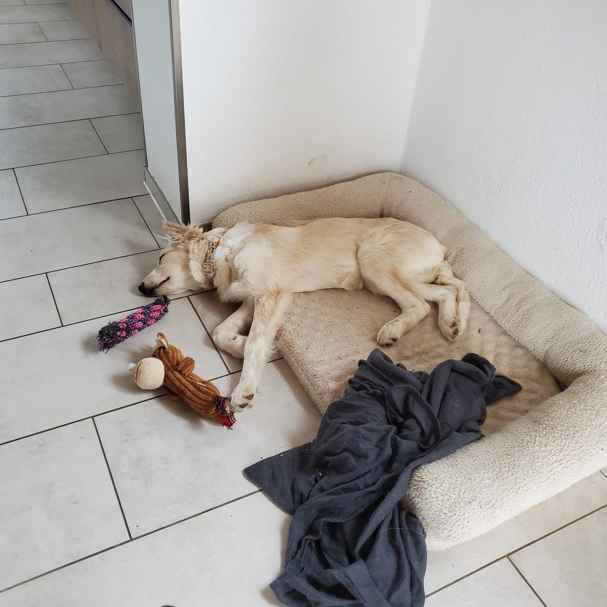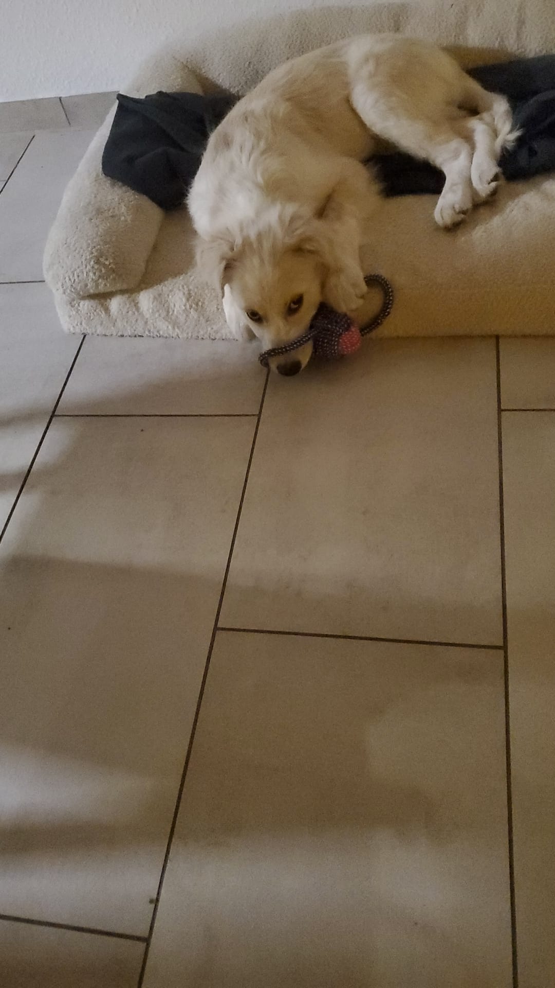 Nanni hat schon sehr viel gelernt. Nein zB 🙂 Sie geht gerne spazieren, fährt gut Auto, möchte gerne bei den Menschen sein, kann mit Zweithund Dina aber auch gut alleine bleiben, ohne etwas zu zernagen. Generell ist sie im Haus ruhig und angenehm.