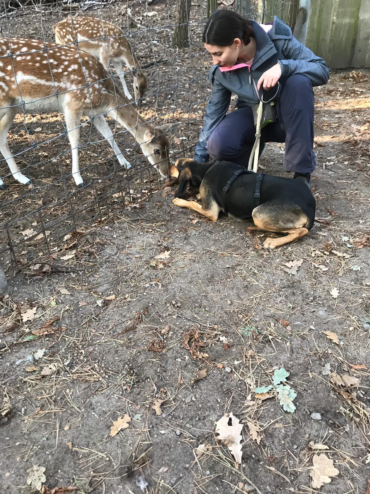 Nunzia hat sich hervorragend entwickelt. Sie genießt die Familie, besonders ihr Frauchen und ist mit anderen Hunden einwandfrei verträglich. Sie ist zuverlässig abrufbar und kann frei laufen. Nunzia ist eine fröhliche Hündin, die allerdings ein wenig Eingewöhnungszeit braucht bis sie ihren verschmitzten Humor durchblitzen lässt. Nunzia ist eine besondere Hundedame. Sie ist sehr sanft und klug. An ihren Ängsten arbeitet sie mit ihrem Pflegefrauchen und überwindet ihre Scheu immer mehr. Beim Besuch eines Wildtiergeheges blieb sie in der Nähe der Tiere ganz entspannt, die relativ vielen unbekannten Menschen erschreckten sie aber noch sehr. Mit Zeit und Geduld wird sie bestimmt eine souveräne Begleiterin. Mit Leckerchen lässt sie sich gut motivieren und besucht gerne die Hundeschule. Da sie von den in der Familie vorhandenen Hunden profitiert, würden wir uns eine Familie mit einem bereits vorhandenen Hund sehr gut für Nunzia vorstellen. Ein Garten wäre ein Highlight für die bewegungsfreudige Laufhündin. Sie liebt es sehr mit den anderen Hunden durch den Garten zu rennen, zu spielen und zu schnüffeln. An der Leine läuft sie brav, Autofahren ist auch ok. Nunzia ist eine bezaubernde Hundepersönlichkeit, die ihren Menschen für seine anfängliche Geduld im Umgang mit ihren Unsicherheiten mehr als entlohnt. Sie strahlt über ihr ganzes Gesicht wenn ihr Frauchen sie anspricht und wedelt überglücklich. Sie ist eine treue und zuverlässige Begleiterin und glänzt mit ihrem sanften, ausgeglichenen Wesen.