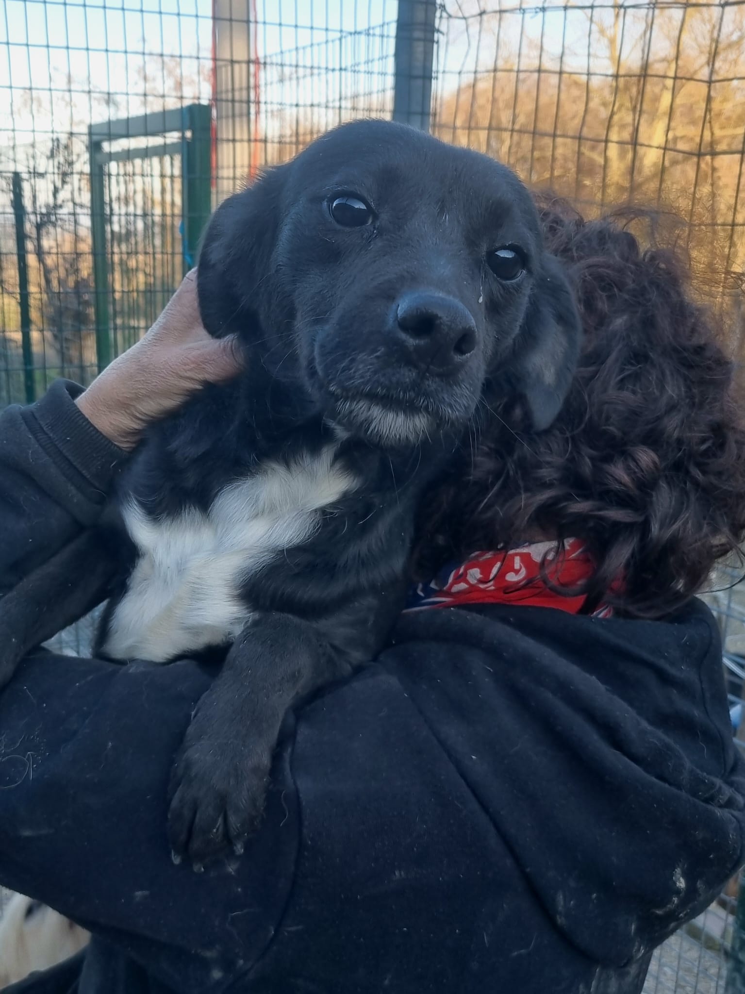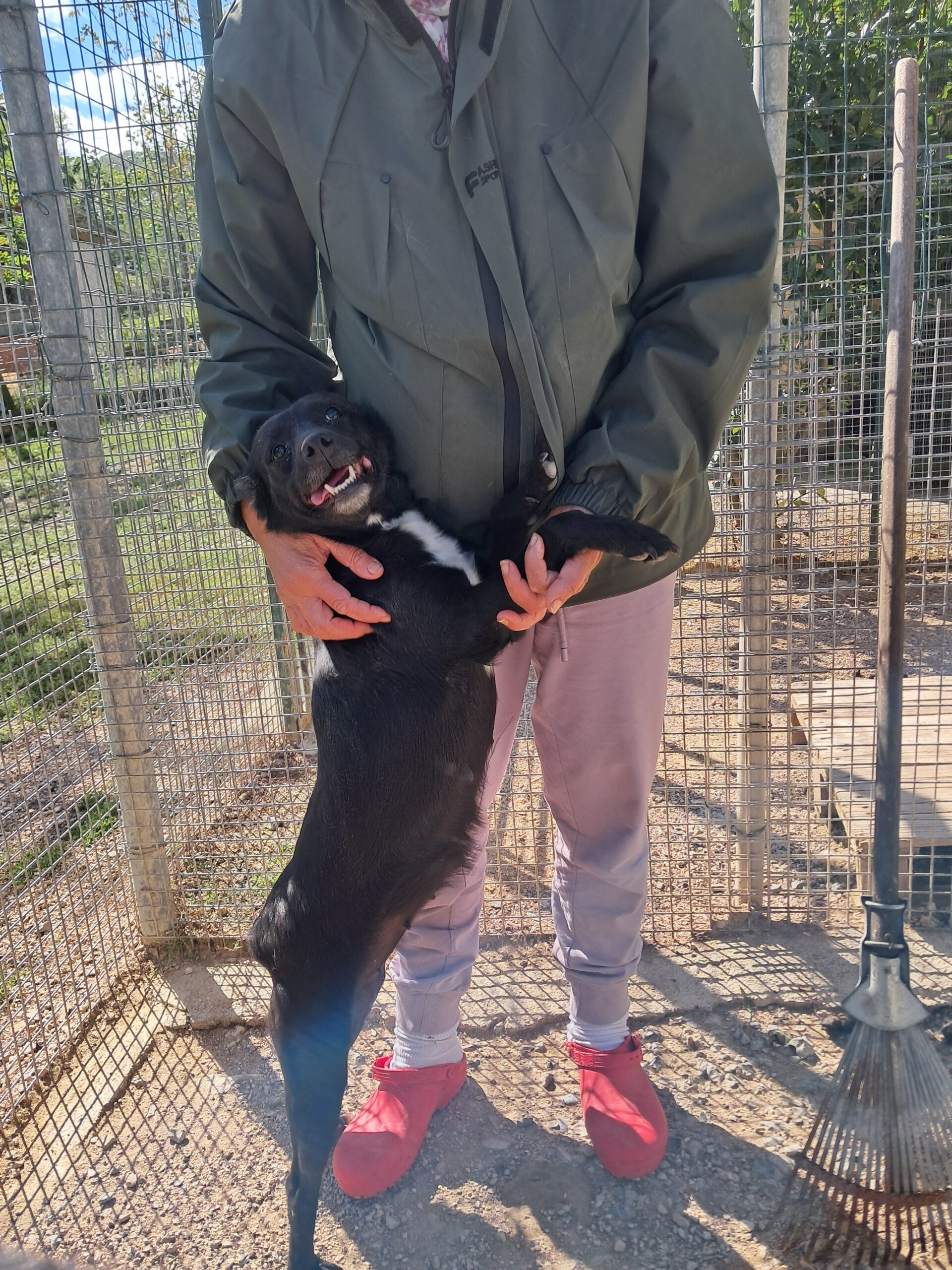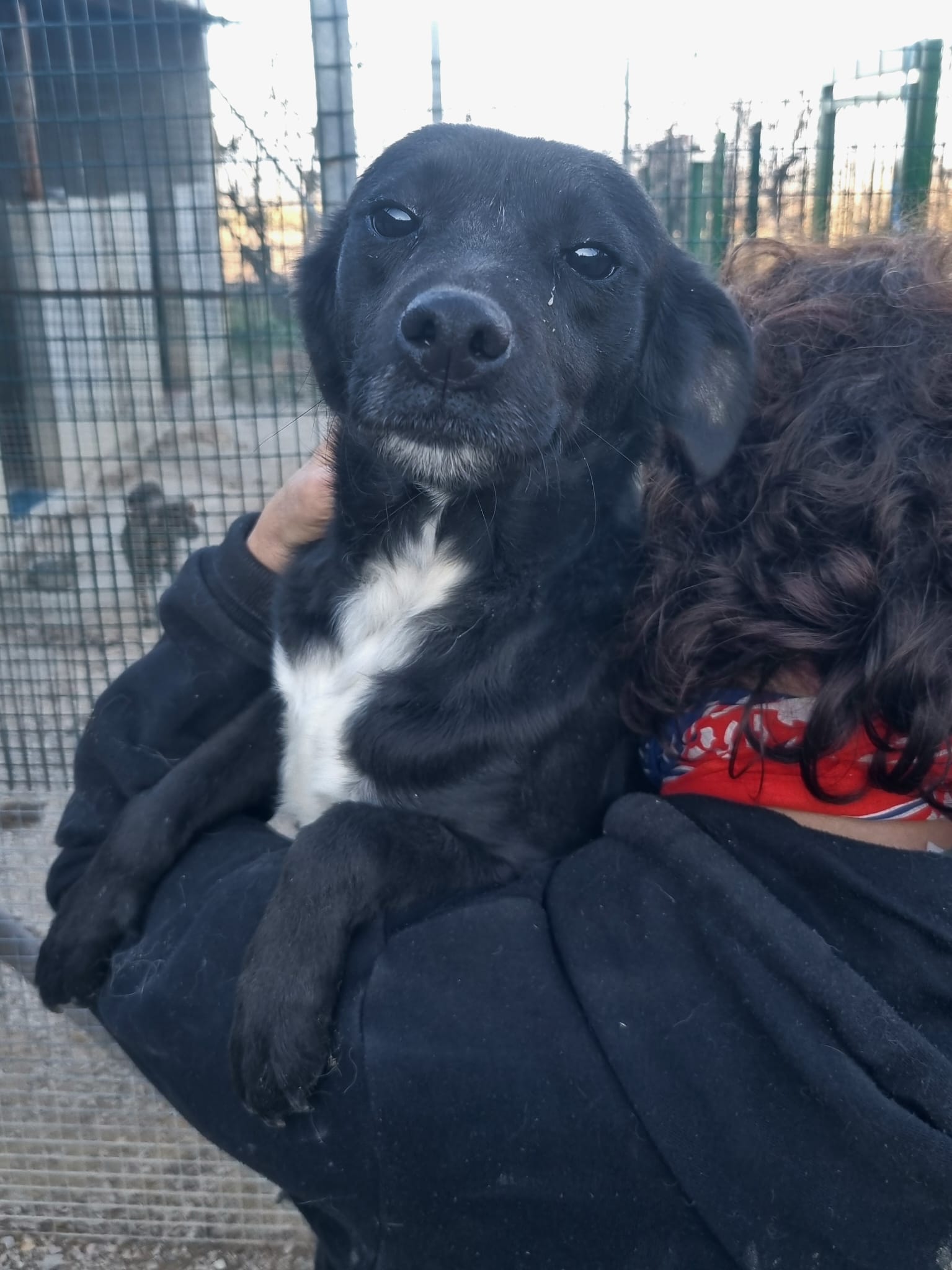Die kleine Hündin ist ca 30/35 cm groß und bereits kastriert. Ihre MMK Tests waren negativ. Ihr freundliches Wesen konnte sie sich trotz all ihrer Erfahrungen erhalten! Als ich sie in Italien kennenlernen durfte war sie sehr aufgeregt, unruhig. War doch ihre Bezugsperson Brunella endlich ein paar wenige Minuten am Tag für sie da. Ombra lief fröhlich im Zwinger umher, sodass Brunella sie kurzerhand für die Fotos auf den Arm nahm.