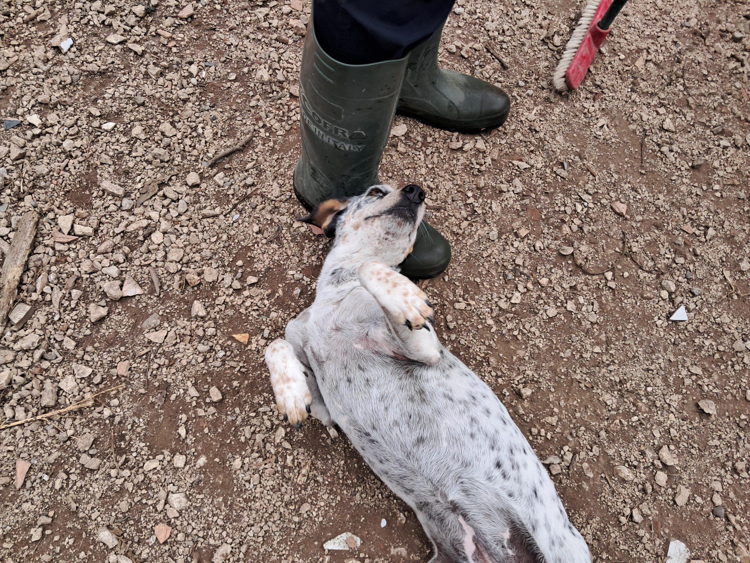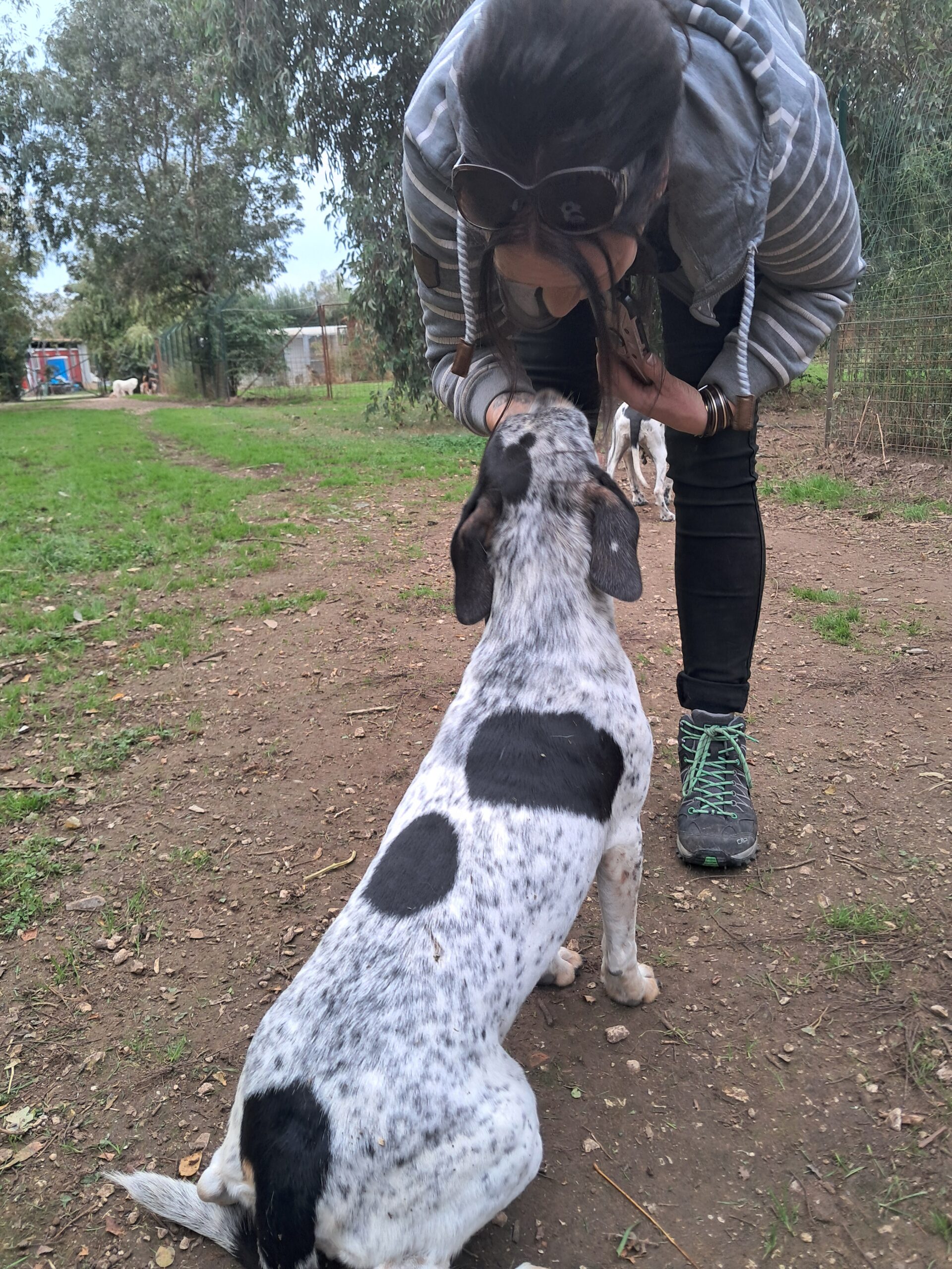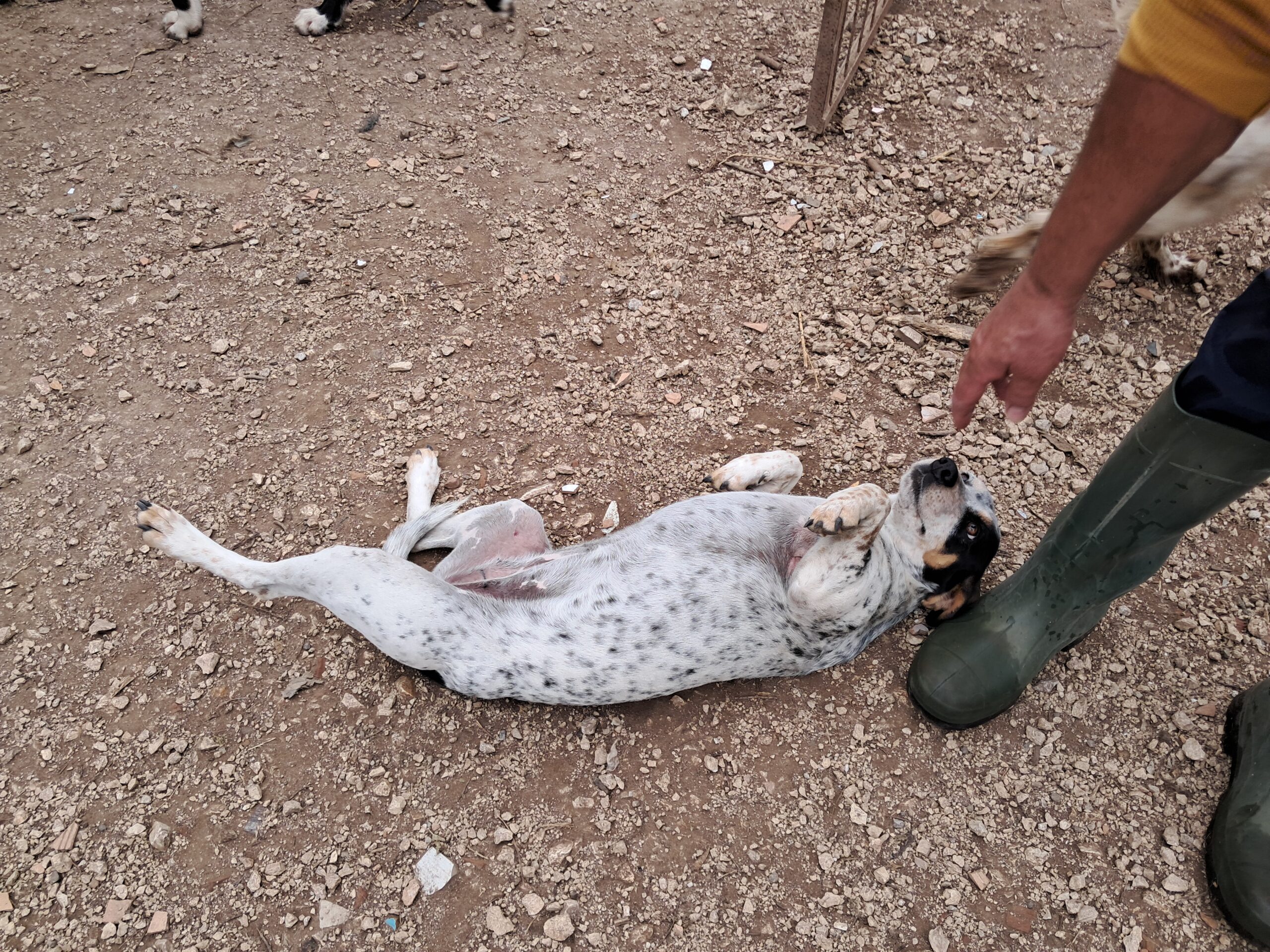 Die kleine Pimpa ist ca 3-4 Jahre alt (Stand Nov 25), ca 40 cm groß und bereits kastriert. Die süße Charmeurin kreuzte beim Besuch in Italien zwischen all den Hunden meinen Weg und mogelte sich in mein Herz. Fröhlich umringte sie uns, warf sich auf den Rücken oder kletterte unsere Beine hoch um gestreichelt und gesehen zu werden. Ihre lustige Färbung zog meinen Blick noch mehr auf sie.