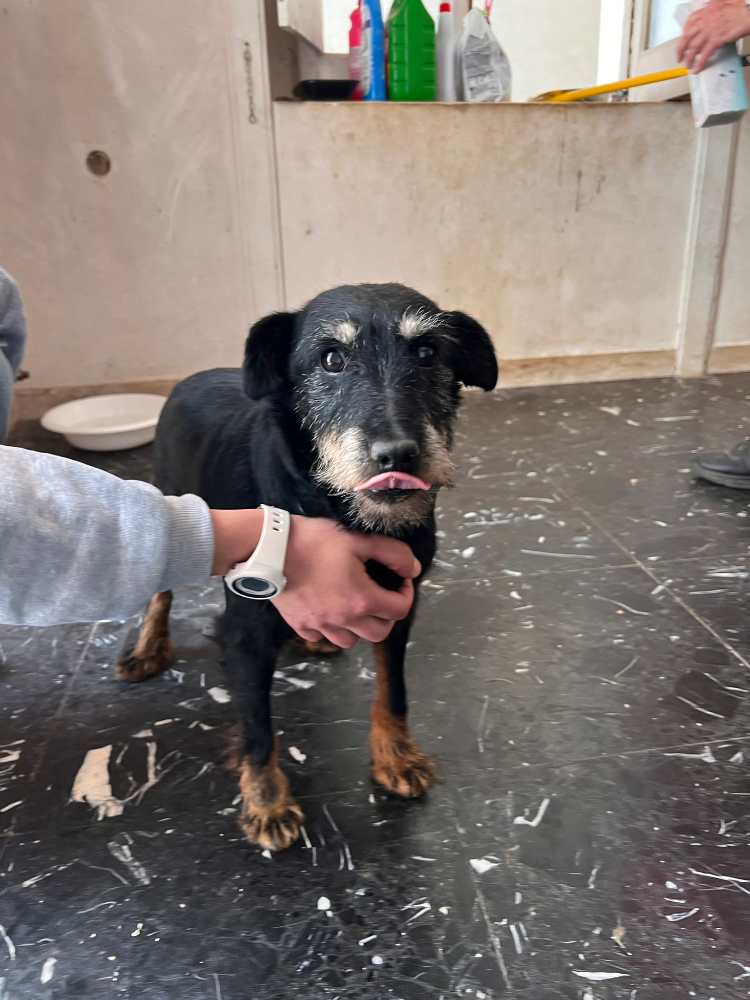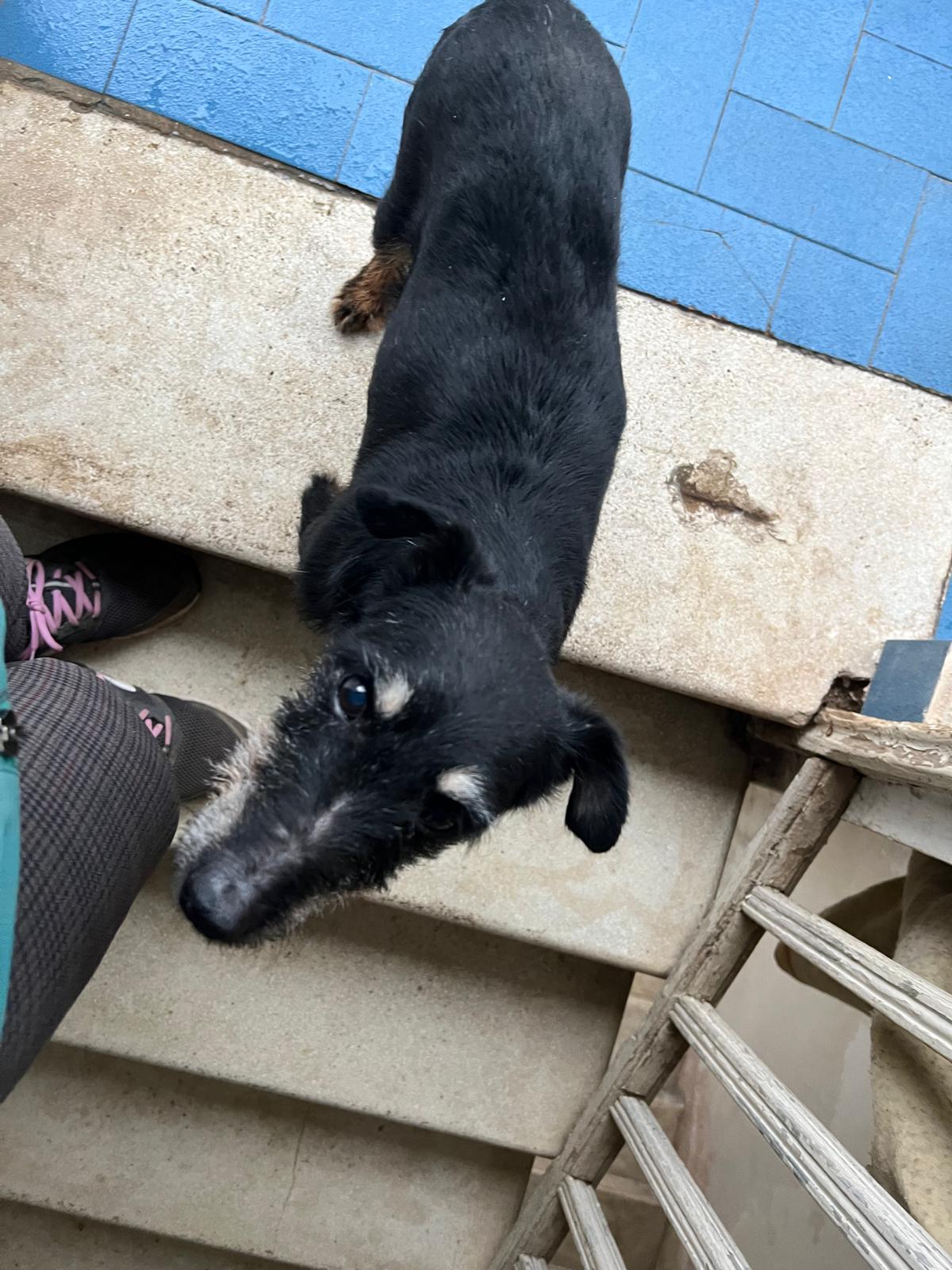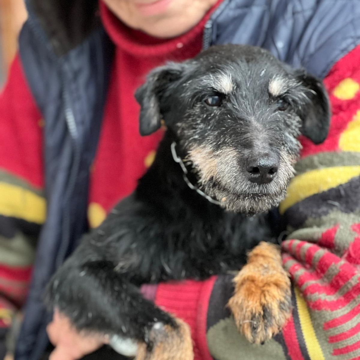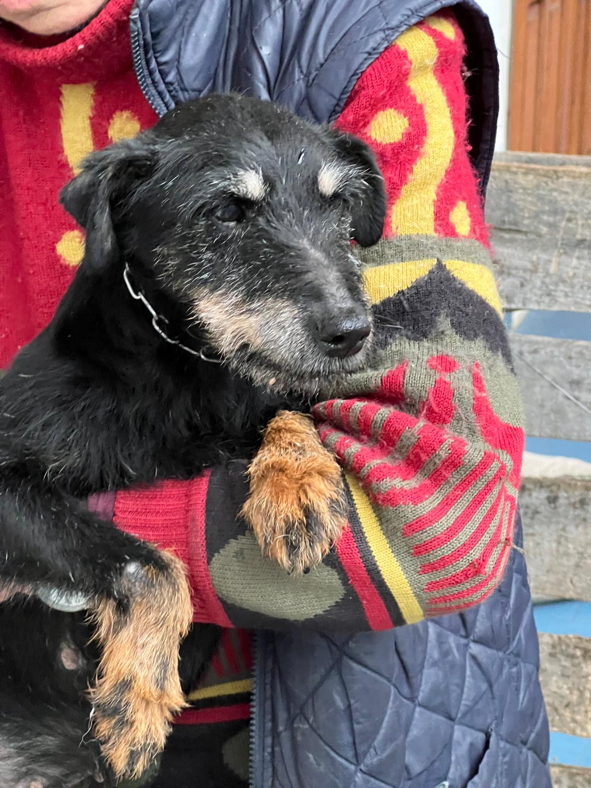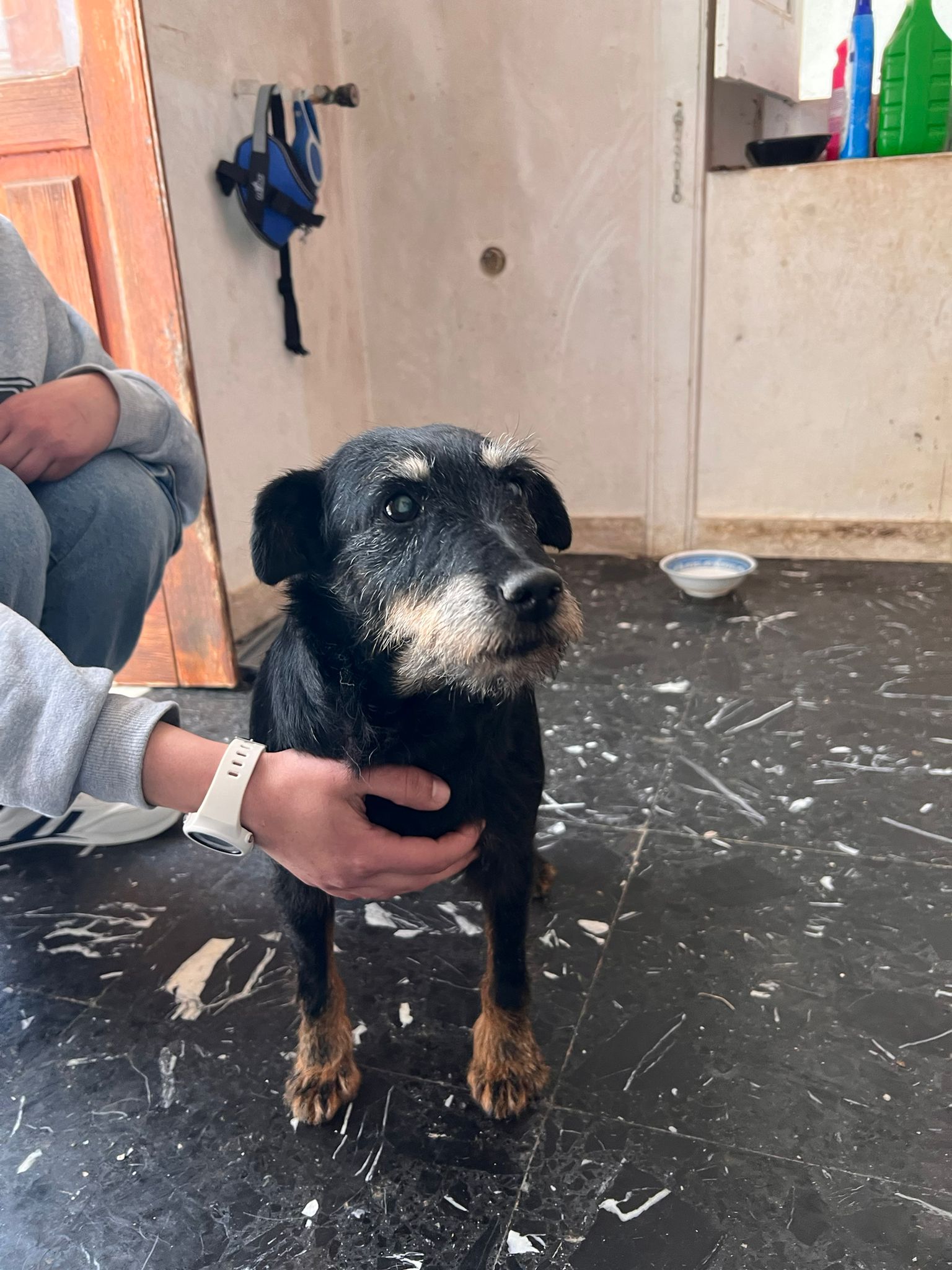 Wir schätzen die agile rauhaarige Hündin ganz grob auf ca 6 Jahre (Stand Feb 25), warten aber noch auf die Beurteilung des Tierarztes, der das Alter dann amtlich in den Pass eintragen wird. Pippa ist ca 8kg schwer, um die 35/40 cm groß und kastriert.