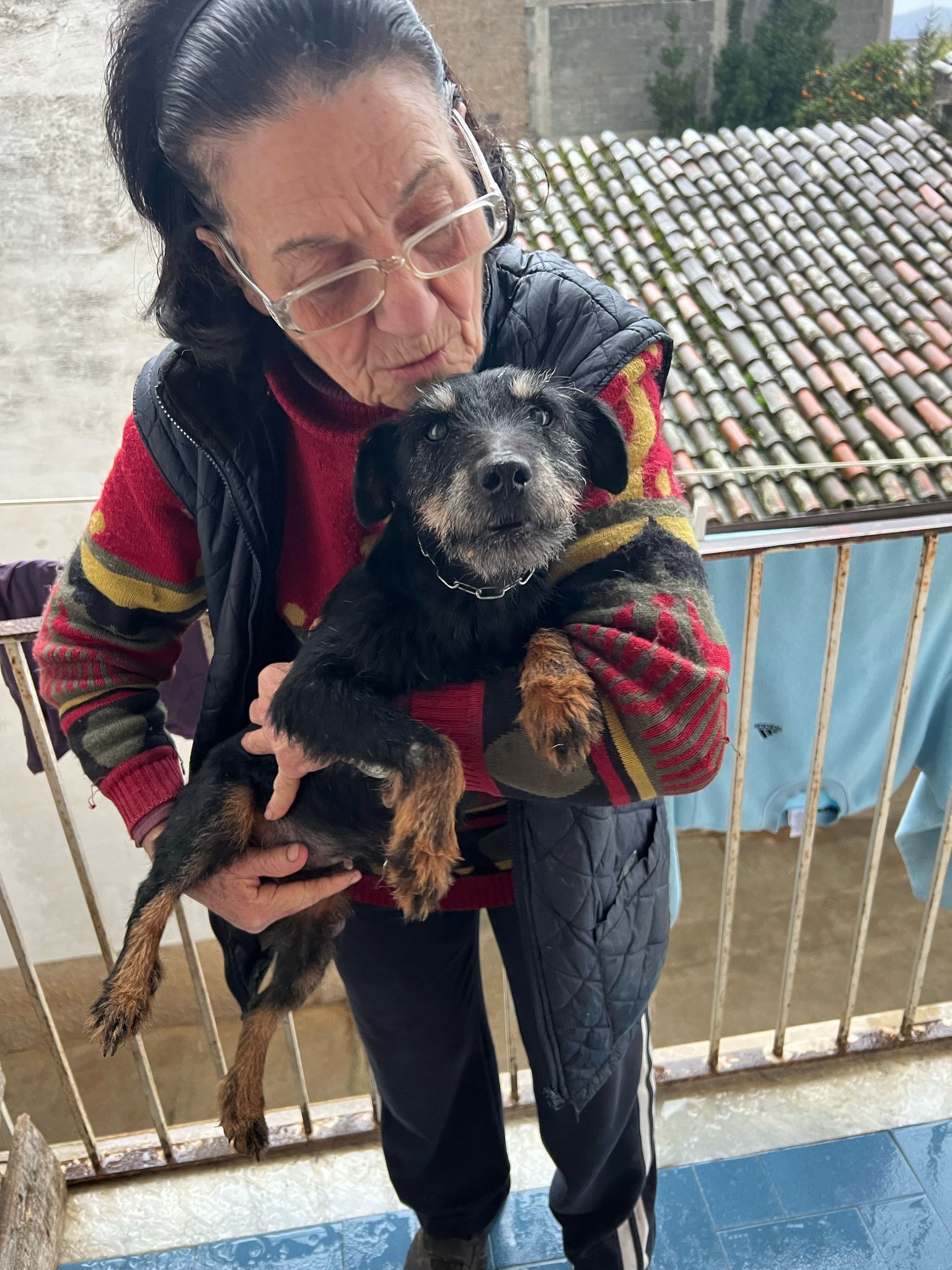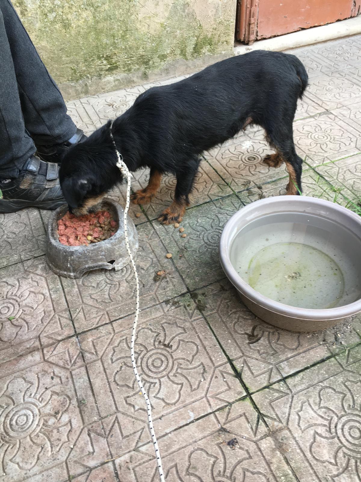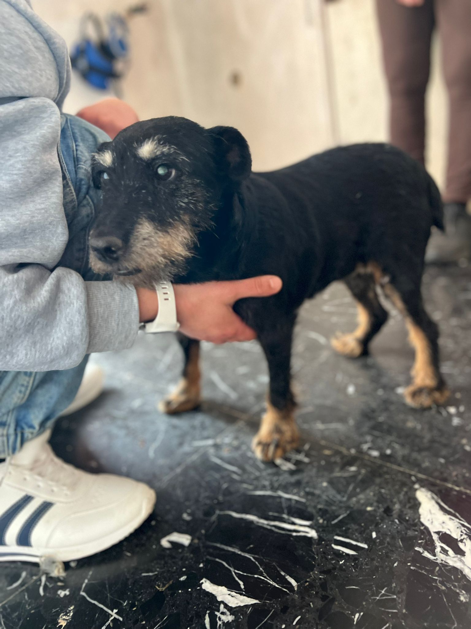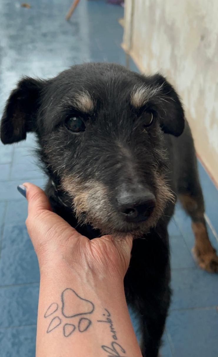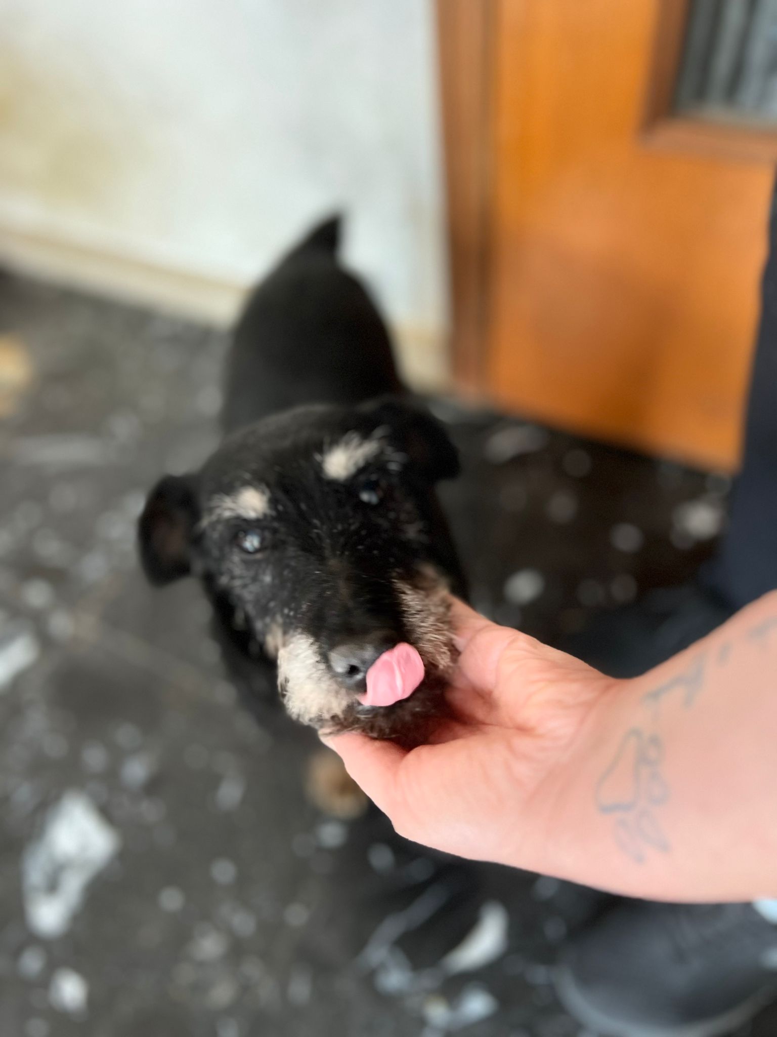 Wir schätzen die agile rauhaarige Hündin ganz grob auf ca 6 Jahre (Stand Feb 25), warten aber noch auf die Beurteilung des Tierarztes, der das Alter dann amtlich in den Pass eintragen wird. Pippa ist ca 8kg schwer, um die 35/40 cm groß und kastriert.