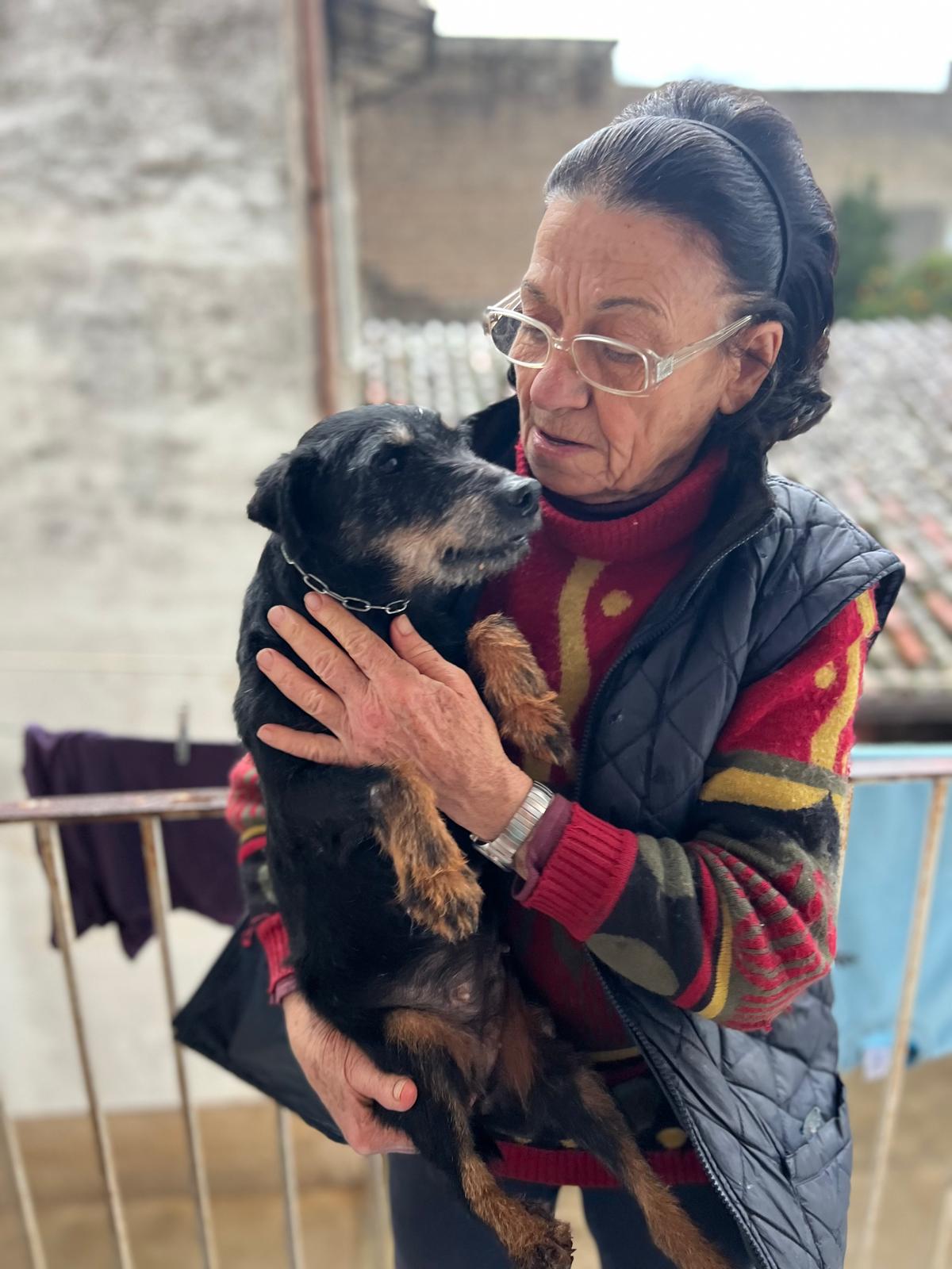 Pippa, ist von der Jagd gezeichnet, sie war aktiv im Einsatz, das zeigt ihr geschundener Körper. Unsere Cinzia hat sie mit Kettenhalsband und Seilleine im Gelände herumirrend aufgefunden und in ihre Obhut genommen. Ein Besitzer ist wie so oft nicht auszumachen.