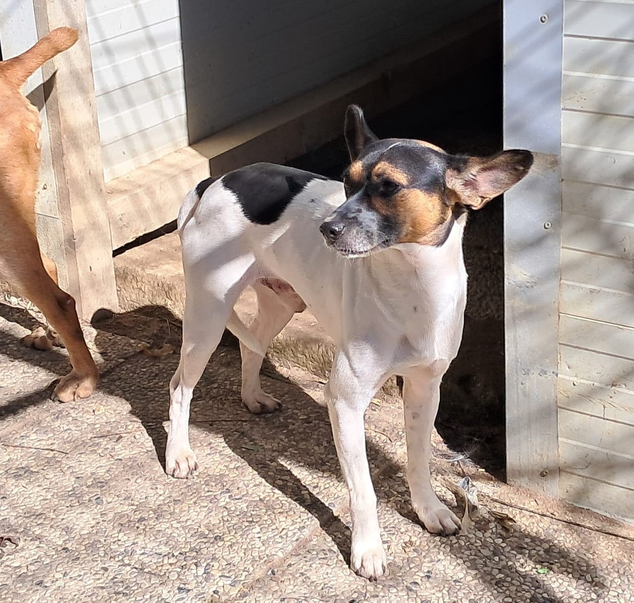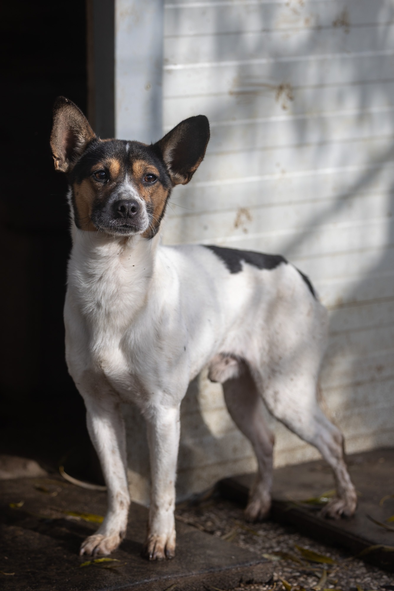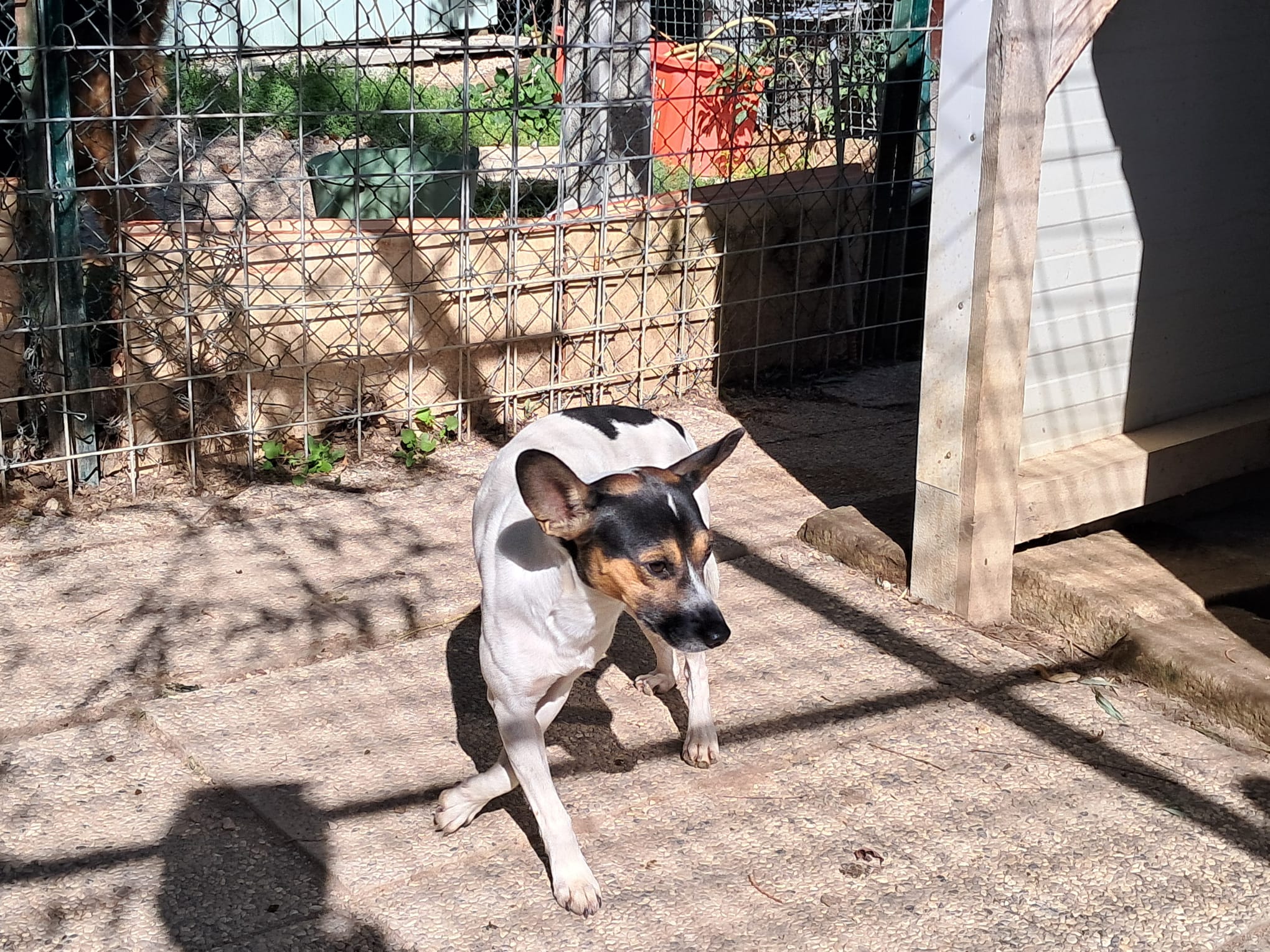 Im Refugio zeigt sich Pippo, ca. 3 Jahre alte Mischlingsrüde, ängstlich. Er möchte (noch) nicht gestreichelt oder berührt werden. Die Tierschützer arbeiten an seinem Vertrauen. Pippo macht gute Fortschritte, zeigt sich immer mehr im Zwinger. Ist interessiert, wenn sich was im Refugio tut. Auf den Fotos sieht man gut, dass er es auch aushält sich nicht zu verstecken, wenn jemand im Zwinger ist. Pippo lebt mit zwei offene Rüden zusammen, das klappt super. Er ist kastriert und verträglich mit seinen Artgenossen.
