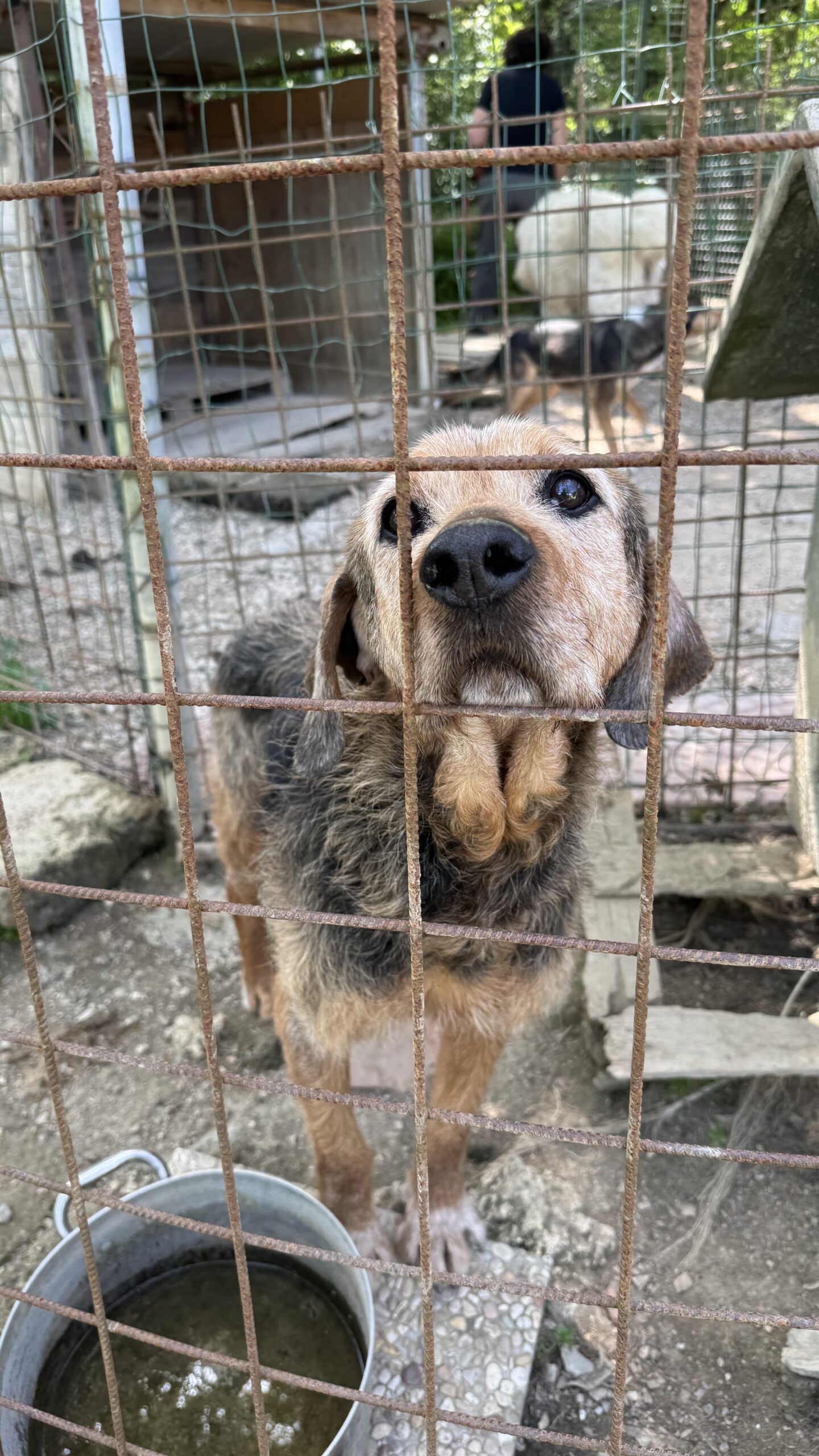 09/2025: Plutone ist ein freundlicher Senior, der sich schon über die kleinste Zuneigung und ein bisschen Aufmerksamkeit freut. Er ist verträglich mit Rüden und Hündinnen. Einzig und allein wenn es um´s Futter geht, versteht er keinen Spaß… Es wäre so schön, wenn Plutone seinen Zwinger für immer hinter sich lassen und in ein richtiges Zuhause mit einem warmen Bettchen einziehen könnte. Immerhin hat er in seinem Zwinger eine eigene Hütte, in die er sich zurückziehen kann… Sehnsüchtig schaut er durch die Gitterstäbe, ob er hier wohl jemals wieder rauskommt?