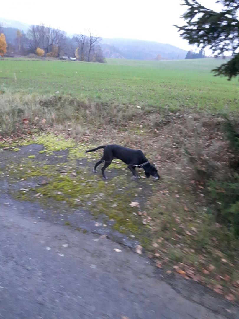 Hier fühlt sie sich sichtlich wohler und ungezwungener und ist mit Begeisterung und Spaß mit den anderen Hunden unterwegs.