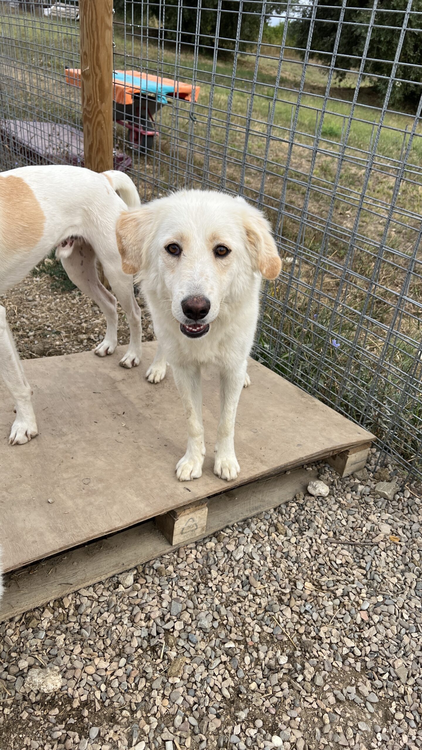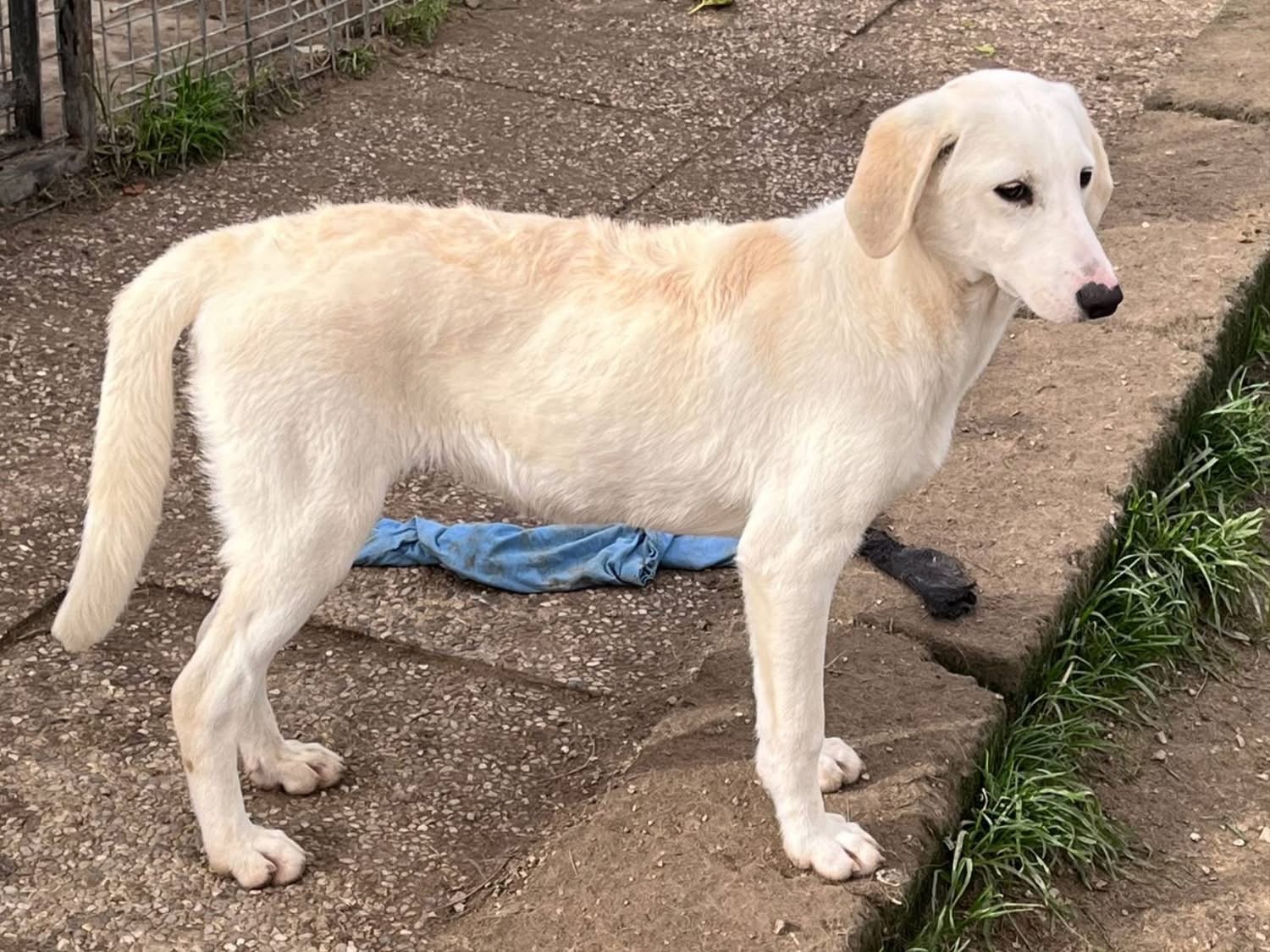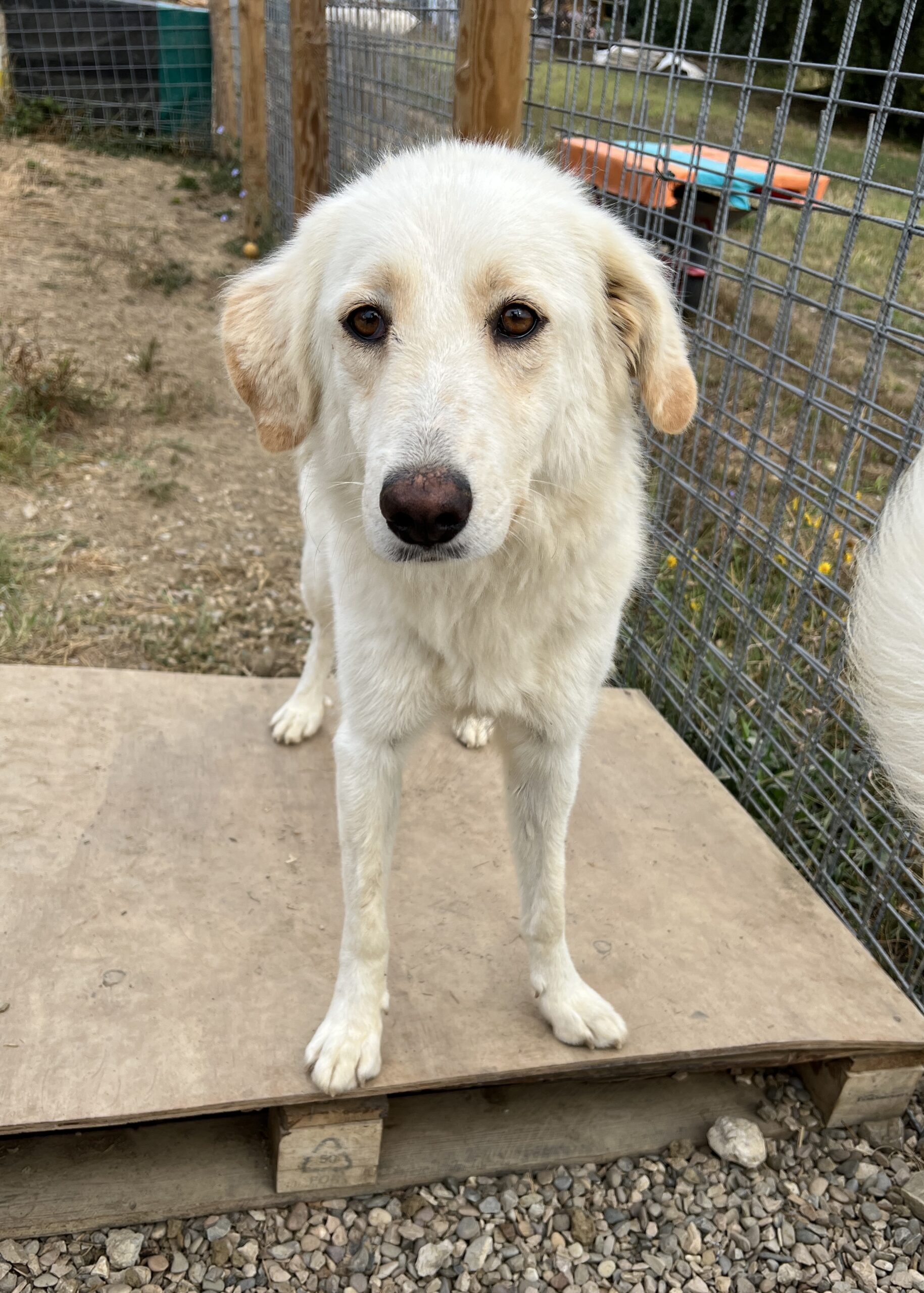 08/2025: Die süße Rita stammt ursprünglich aus der süditalienischen Region Basilikata. Dort wurde sie auf der Straße gefunden; ob sie mal ein Zuhause hatte oder als Straßenhündin geboren wurde ist nicht bekannt. Bei ihr könnte es sich um einen Maremmano-Mischling handeln. Die feinen Punkte auf ihrer Schnauze deuten auf einen Anteil Setter hin, aber das bleibt natürlich nur Spekulation.