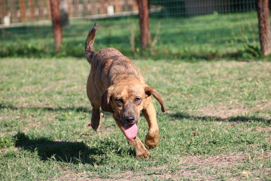 Ronja ist kaum eine Woche in ihrer Pflegestelle und zeigt schon, dass sie der ideale Partner beim Joggen oder auch Fahrradfahren wäre. Sie apportiert sehr gerne Spielzeug (und Socken!) und stellt sich sehr geschickt an, wenn es darum geht, sich ihr Futter mit Futterball oder Kong-Pyramide zu erarbeiten. Aber auch wenn sie gerade sehr beschäftigt ist, unterbricht sie ihre Tätigkeit immer wieder, um sich ein paar Streicheleinheiten abzuholen. Sie zeigt keinerlei Futterneid oder Eifersucht und ist gegenüber den anderen Hunden der Familie immer sehr höflich und freundlich. Auch von den Katzen lässt sie sich gerne zu einer Spielrunde auffordern, wird aber nie zu wild. Nach einem ausgedehnten Spaziergang schläft sie mehrere Stunden tiefenentspannt. Ein toller Hund, dem zum großen Glück nur noch die eigene Familie fehlt!