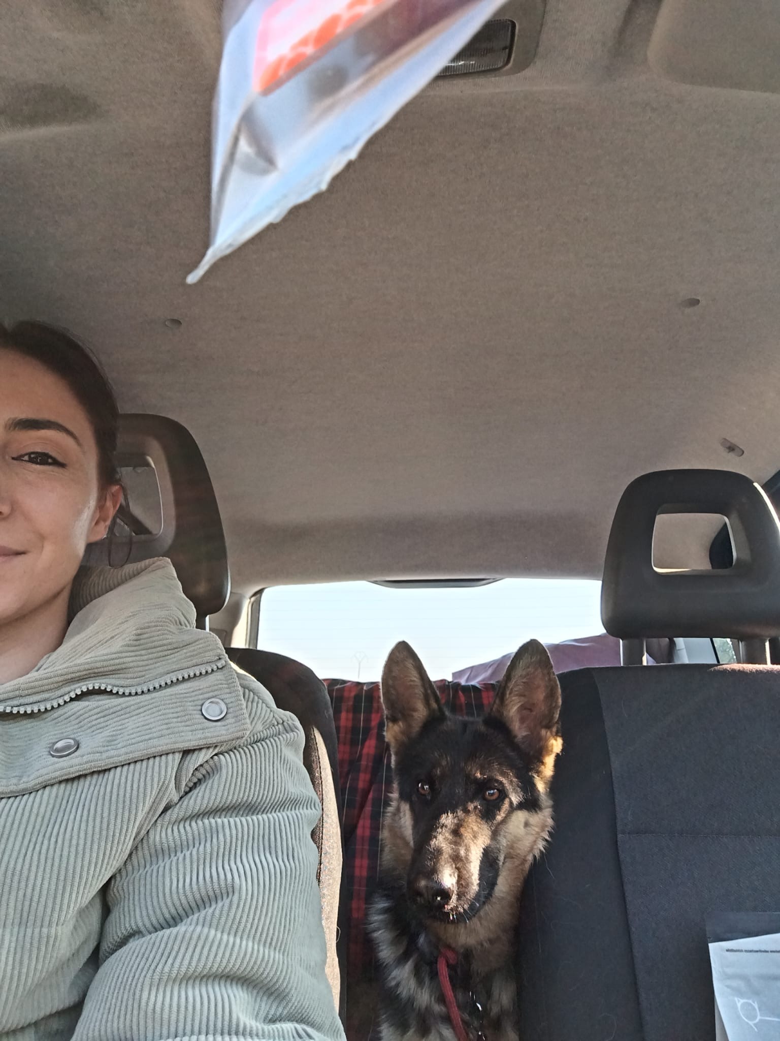 Ohne zu zögern stieg sie in das Auto unserer Helferin ein. Sie war im Auto sehr lieb, beobachtete aber alles um sie herum. Bereits bei dieser Fahrt suchte sie die Nähe der Fahrerin.