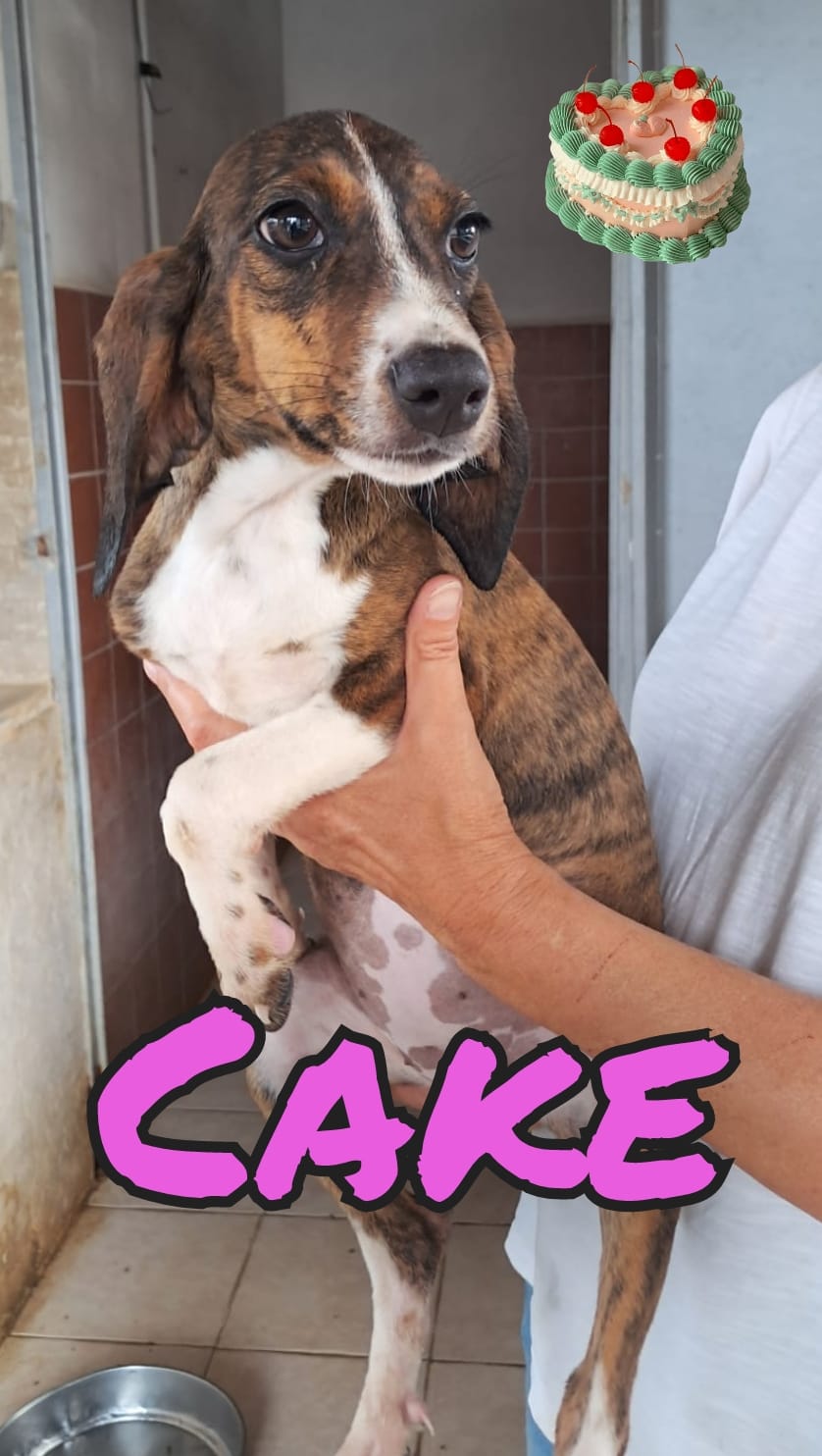 Die vier (Muffin, Pralina, Cookie) sind sehr lieb und lernen gerade, an der Leine zu laufen. Lasst nicht zu, dass sie in Käfigen aufwachsen. Cake ist verträglich mit Rüden und Hündinnen. Sie wurde negativ auf Leishmaniose getestet.