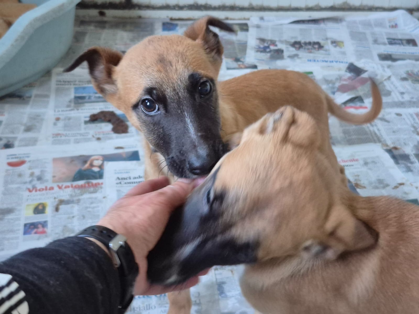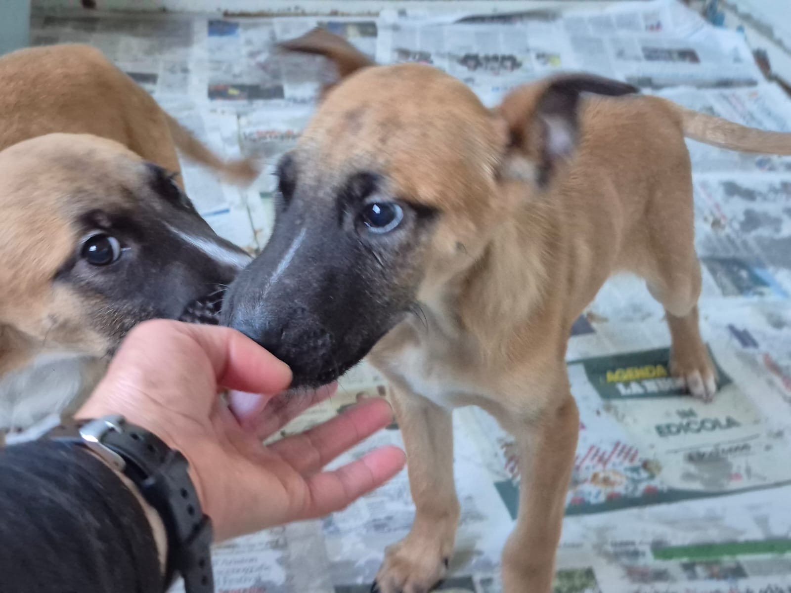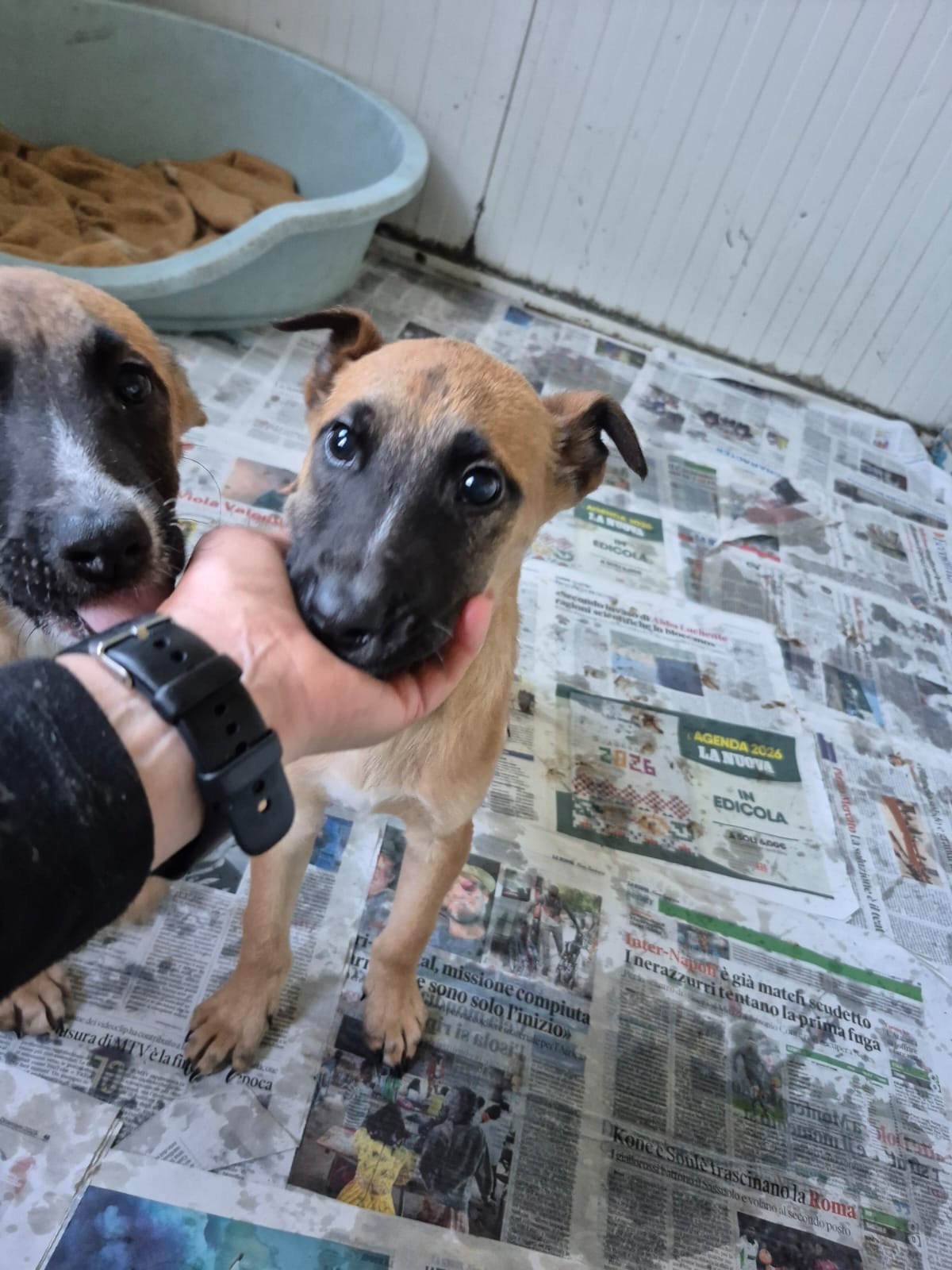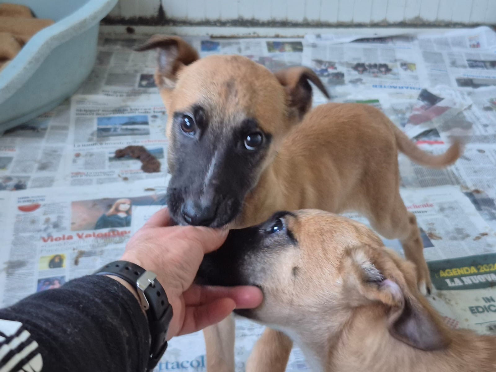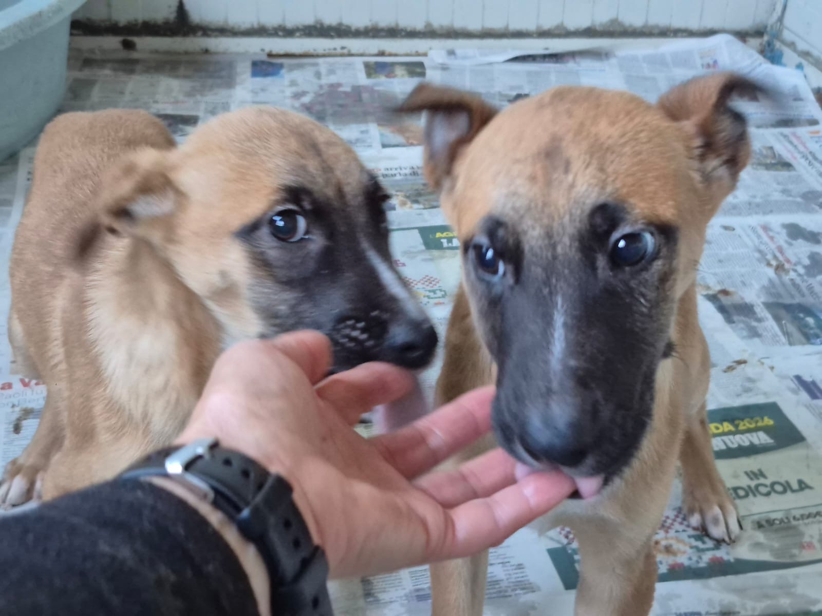 Olio und Stanilo 2 Knirpse am Straßenrand aufgefunden und in Sicherheit gebracht, weg von der Straße aber ein Zwingr ist nicht die Umgebung in welcher Welpen aufwachsen sollten. Wir vermuten das es ich um Belgische Schäferhund Mischlinge handelt. Gesucht wird ein aktives Zuhause mit Besuch der Hundeschule.
