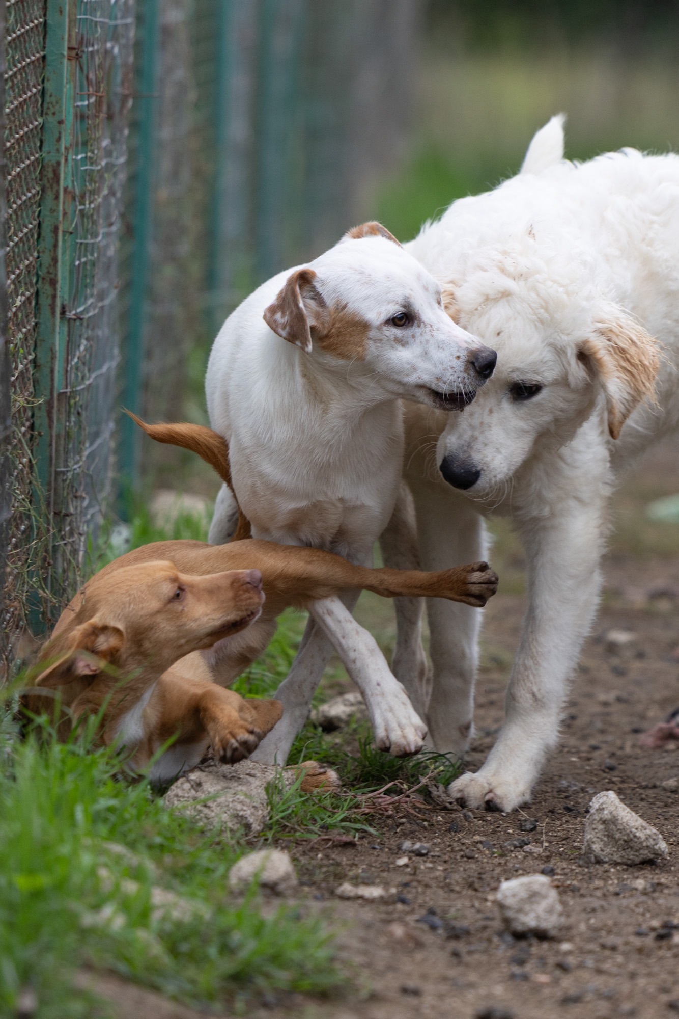 Hündin Aurora hatte sich in einer stillgelegten Fabrik ihre Wurfkiste in weichem dort gelagertem Dämmmaterial gebaut und dort zwölf Welpen zur Welt gebracht. Eigentlich keine schlechte Wahl aber leider wollten die Besitzer der Fabrik die kleine Familie nicht beherbergen und drohten damit, sie den Behörden zu melden. Die Tierschützerinnen waren alarmiert und konnten Mutter, Welpen und auch den Erzeuger rechtzeitig sichern und ihnen so das Vegetieren in einem Massencanile ersparen.