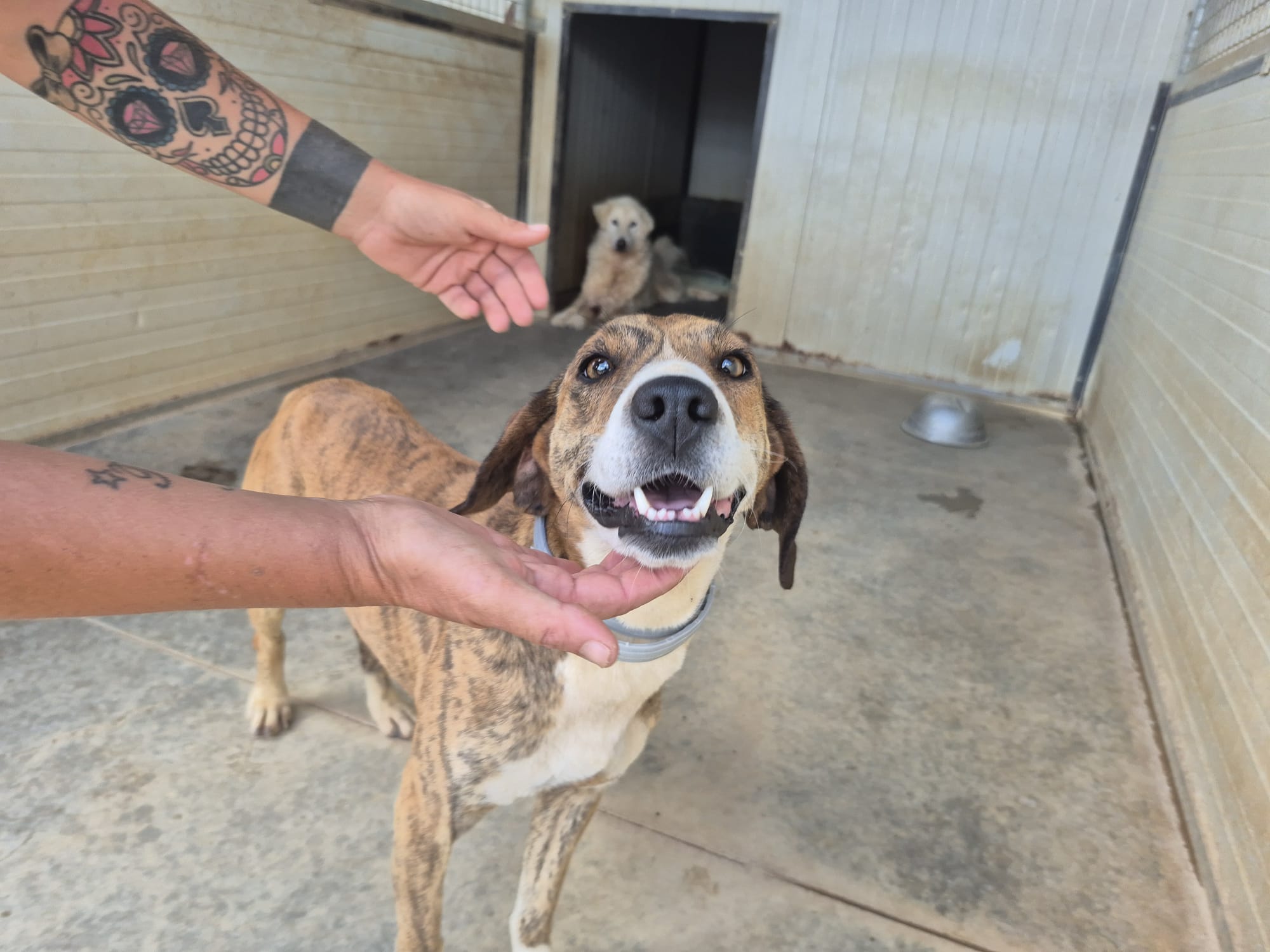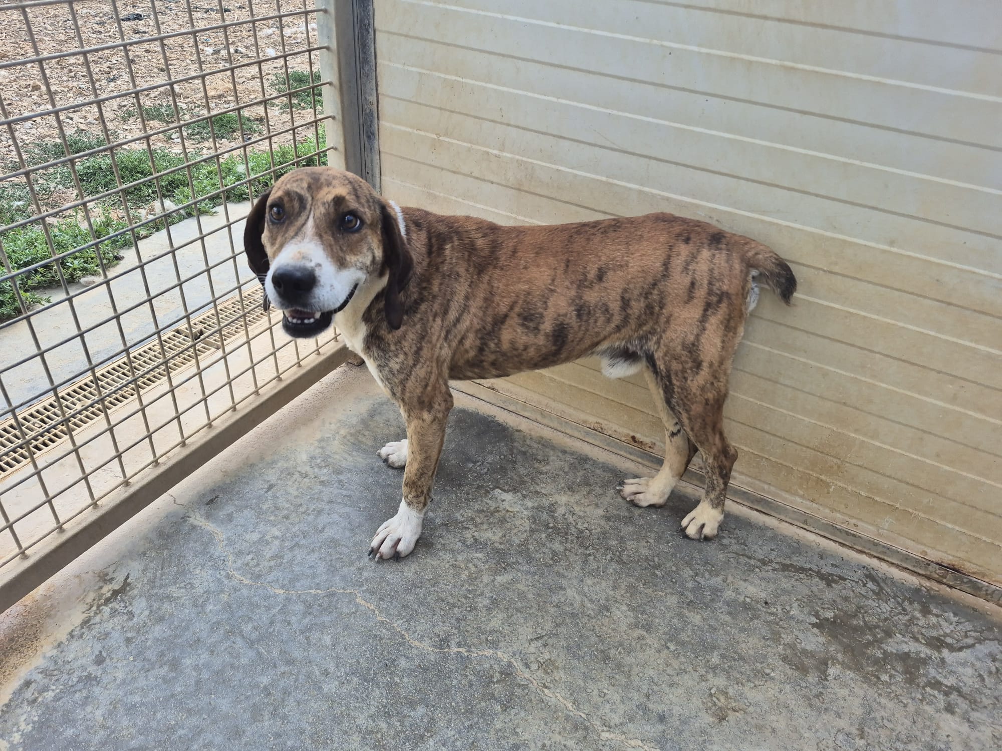 Dieser schicke Bursche sitzt erst ein paar Monate in einem Canile auf Sardinien. Er kam mit einem gebrochenen Bein dort hin, das aber inzwischen, ohne OP, wieder zusammen gewachsen ist. Bestimmt gehörte er einem Jäger, der ihn, aufgrund seiner Verletzung, ausgemustert und seinem Schiksal überlassen hat. Leider gängige Praxis, wer nicht mehr abliefern kann, wird einfach ersetzt. Aufgrund seiner tollen Fellzeichnung bekam er den Namen Tigro. Er soll ca. 3,5 Jahre alt (Stand 08/2025), ungefähr 50cm groß sein und 17kg wiegen. Er ist sehr sozial und ein ganz lieber Kerl der sogar schon an der Leine laufen kann.