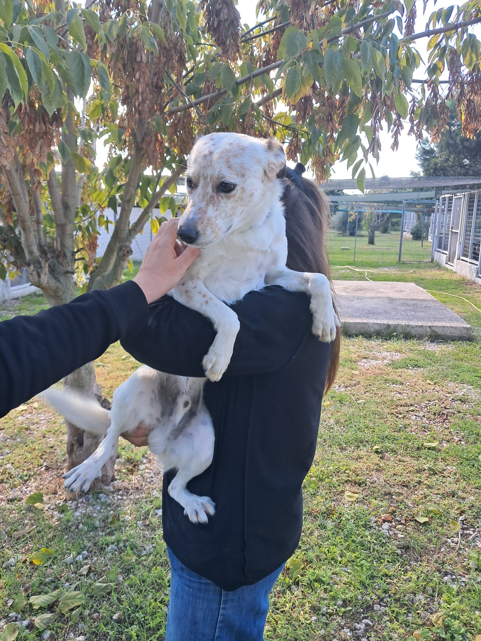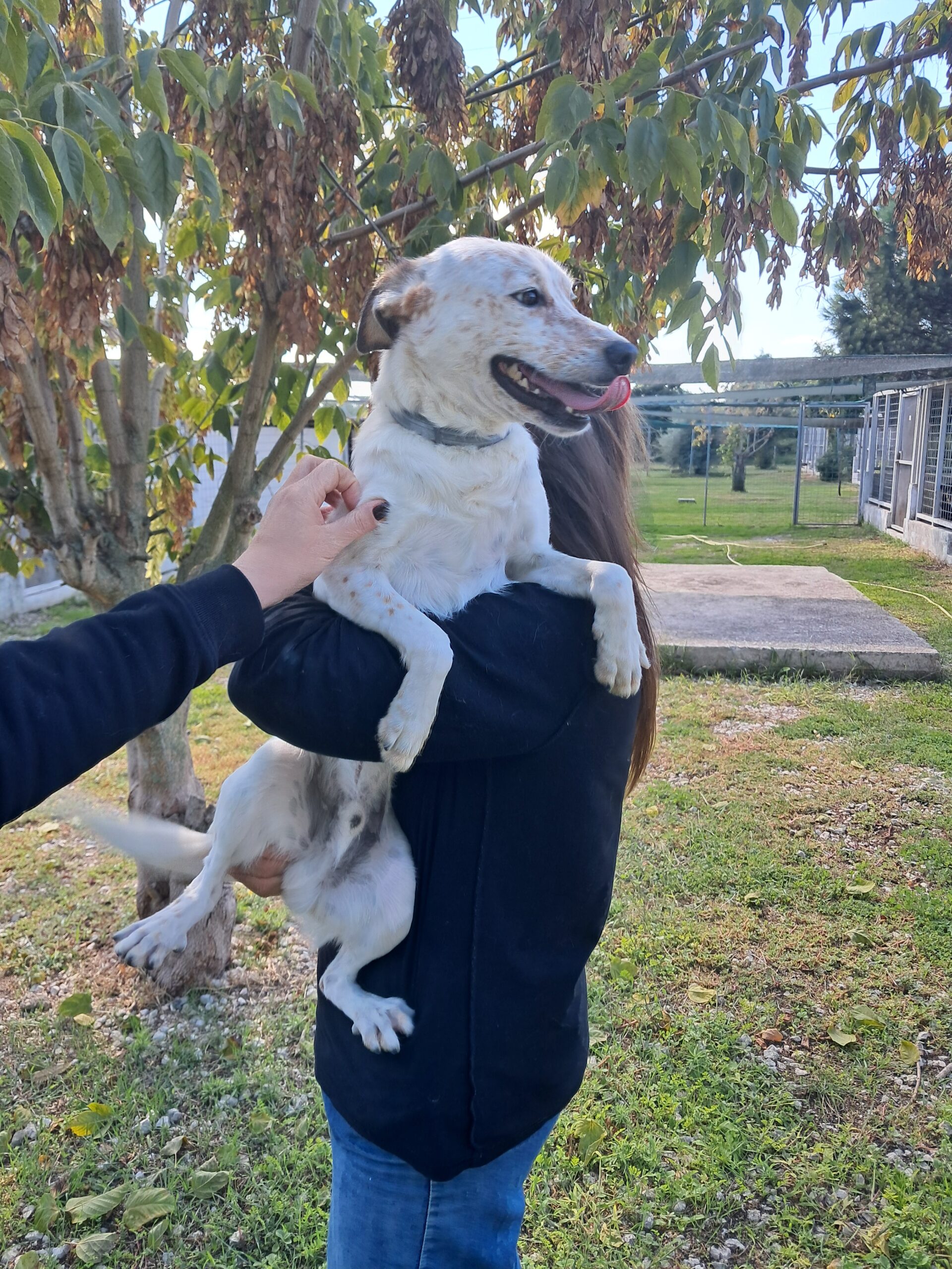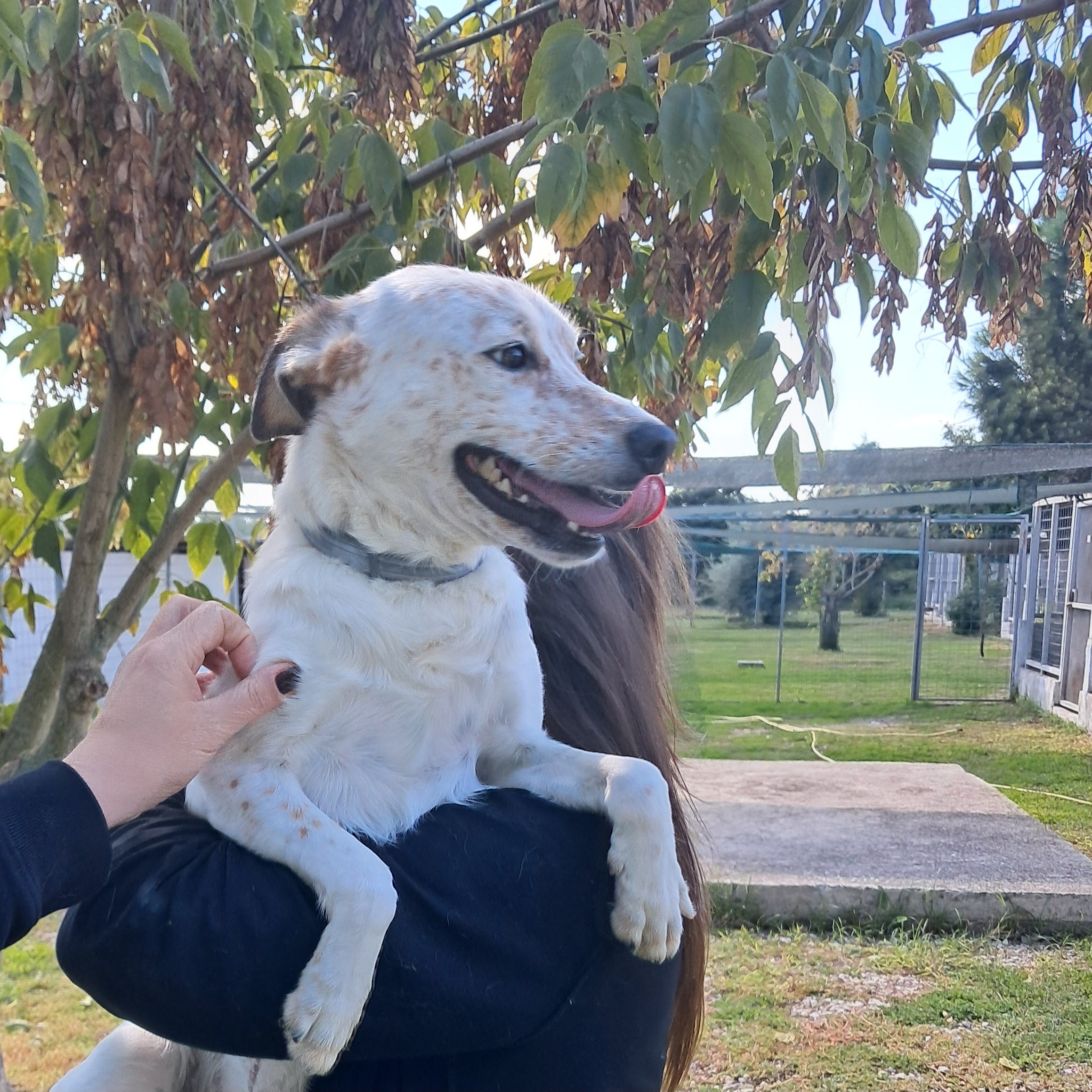 Unser bezaubernder Tommy ist ca 1 Jahr alt (Stand Okt 25) und noch nicht kastriert. Als ich ihn in Italien kennenlernen durfte zauberte er mir sofort ein Lächeln ins Gesicht. Seine gute Laune und Energie sind einfach ansteckend. Den kurzen Moment, den er den Zwinger verlassen durfte rannte er fröhlich über das Gelände. Es war unmöglich ihn auf Fotos einzufangen. Kurzerhand nahmen wir ihn auf den Arm um ein paar Schnappschüsse machen zu können. Und weiter ging es im Galopp. Mir blutete das Herz als der herzige Lebefroh zurück in den kleinen Zwinger musste. Dort wird er jetzt wieder Tag und Nacht, Woche für Woche sitzen…