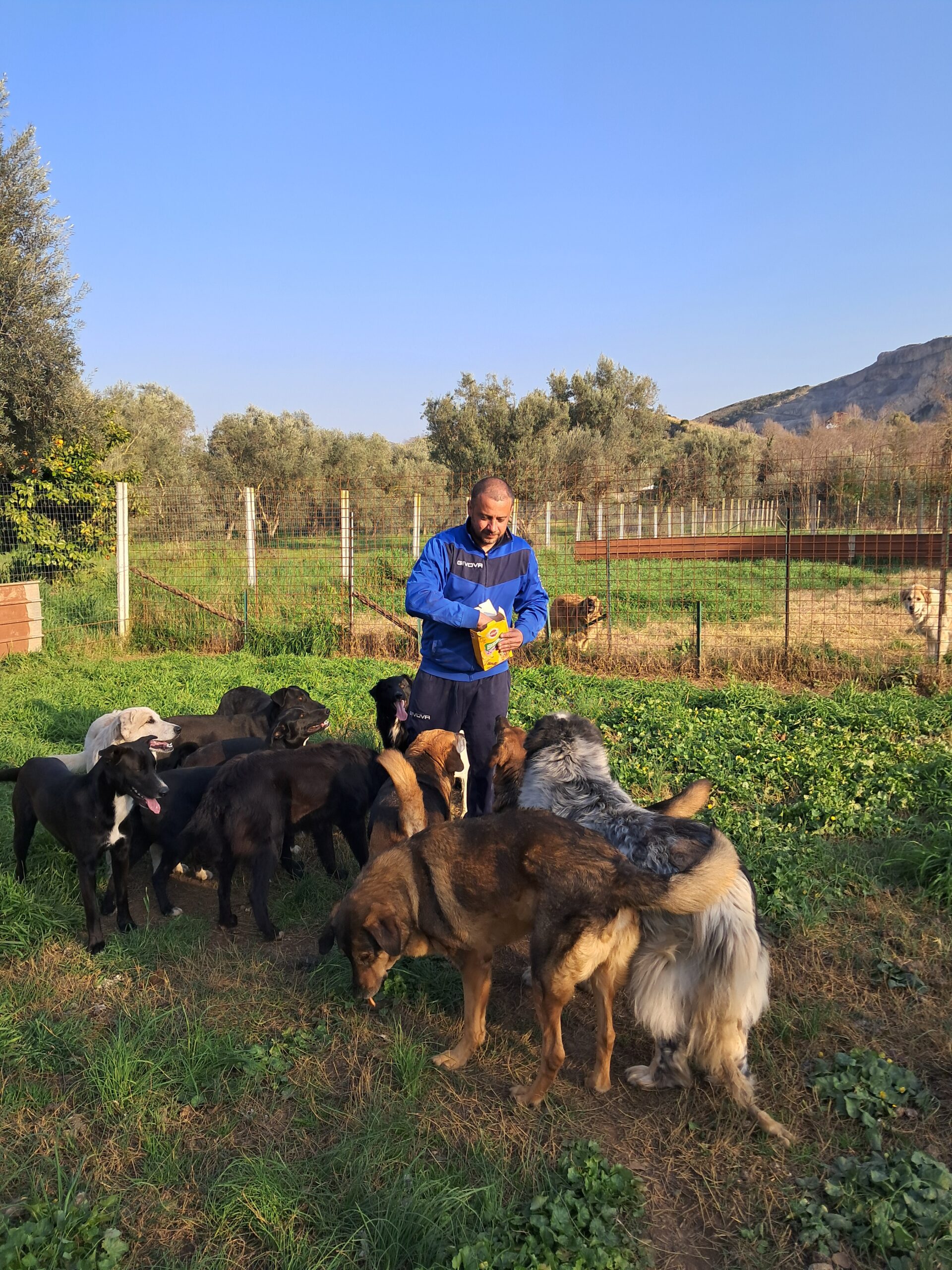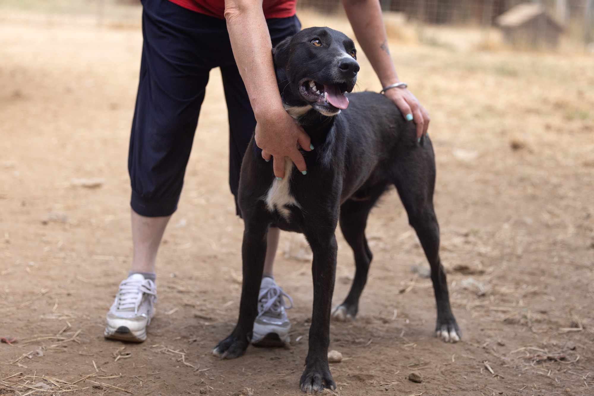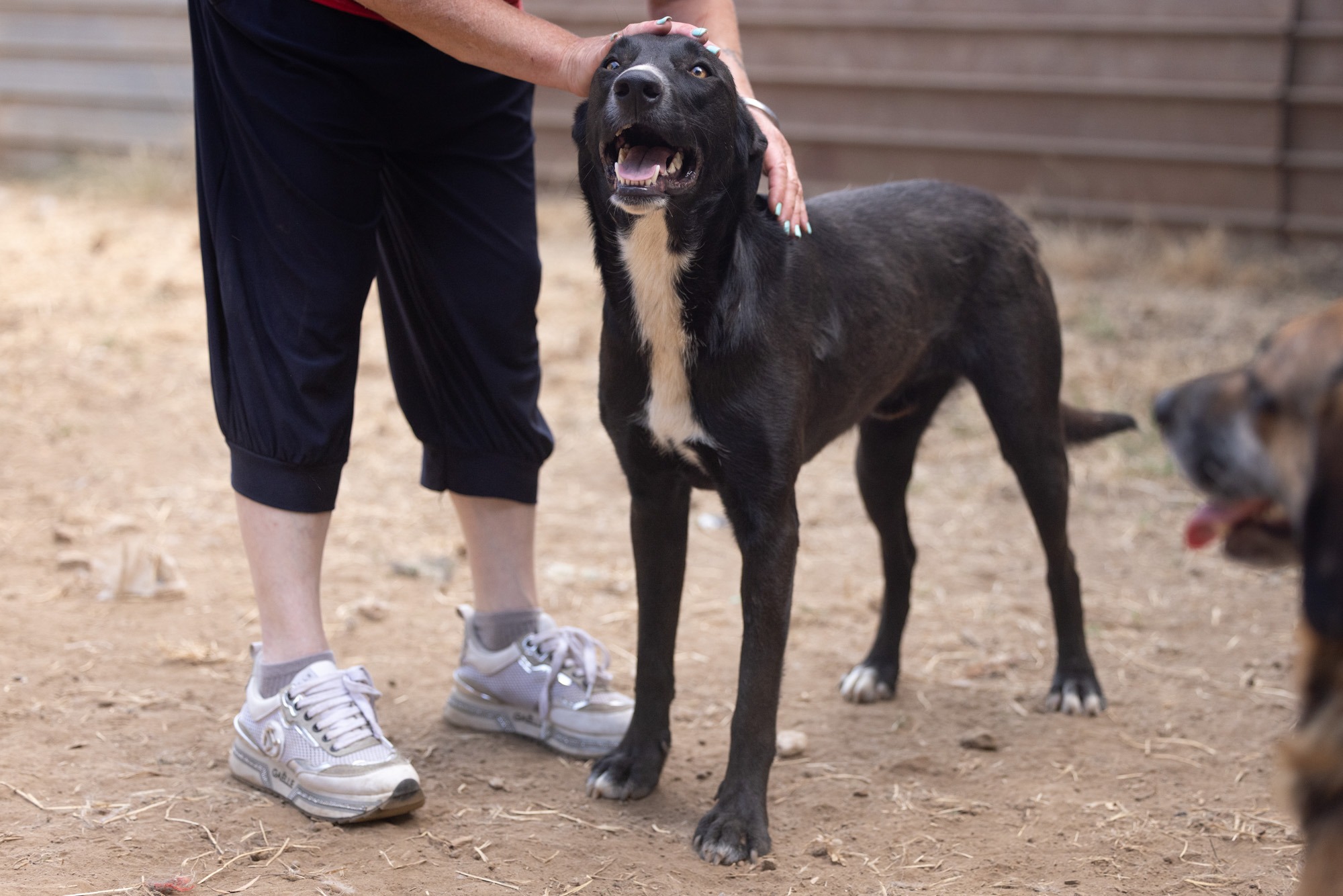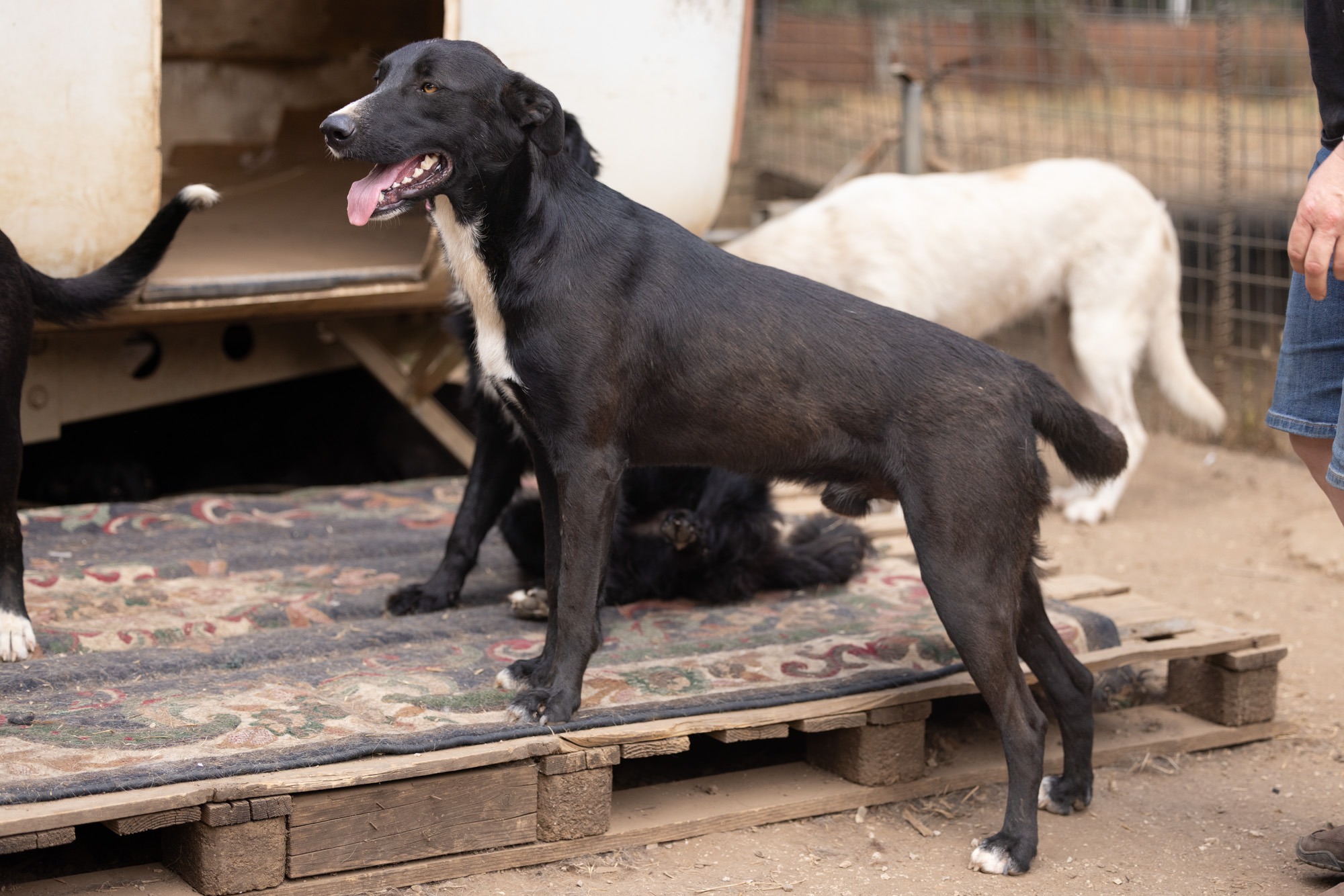 Bei unserem Besuch habe ich ihn sehr energiegeladen und schwungvoll erlebt. Er war immer vorne dabei, sprang hoch, forderte Aufmerksamkeit. Der fröhliche Rüde sucht ein agiles Zuhause. Mit entsprechend Auslastung und Erziehung ist er sicherlich ein Traum! Doch er wird natürlich zuerst Zeit und geduldige Begleiter an seiner Seite brauchen um alles kennenzulernen! Er kennt das Leben auf der Straße und dann das Gelände abseits in der Natur. Dort lebt er verträglich in einem gemischten, großen Rudel.