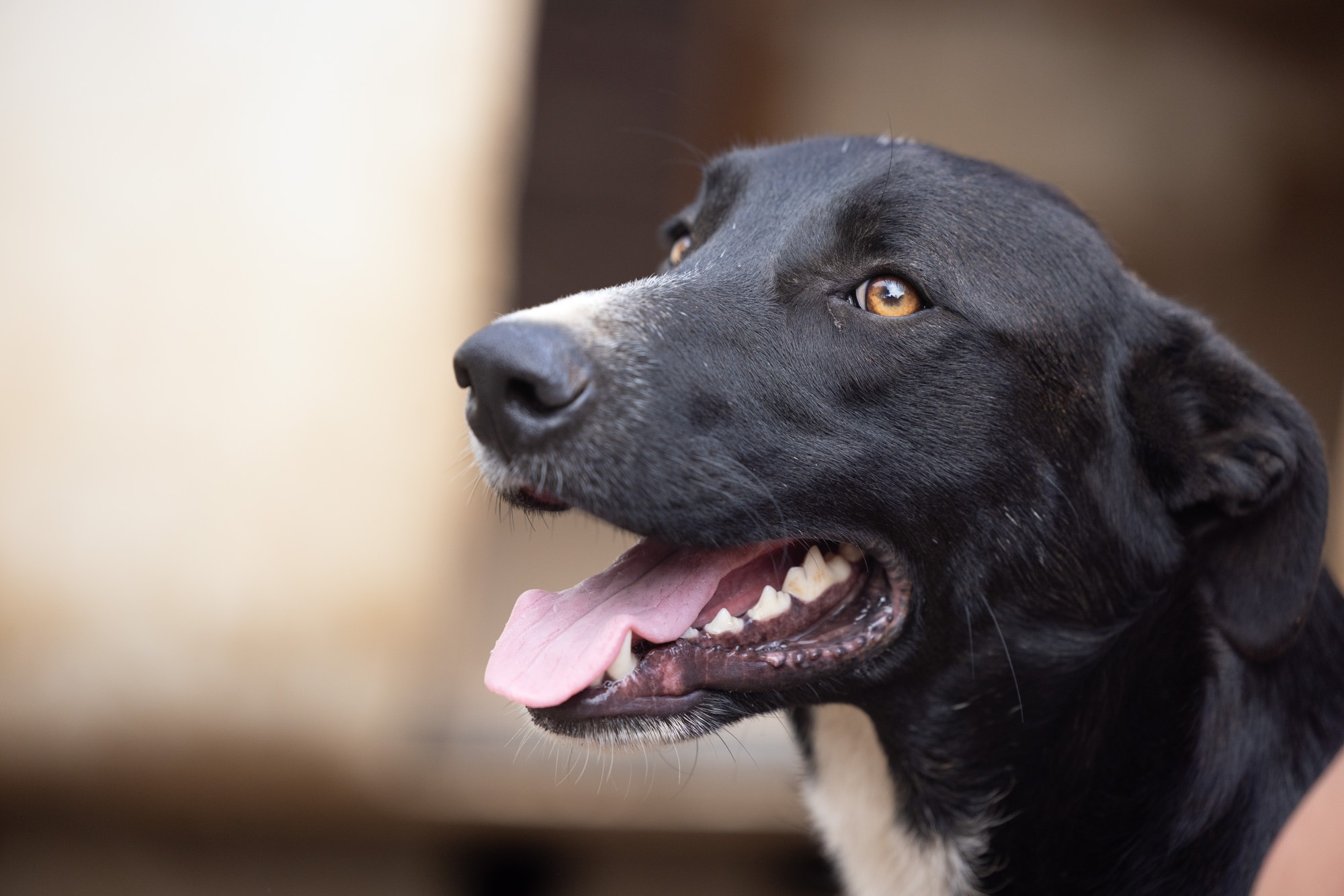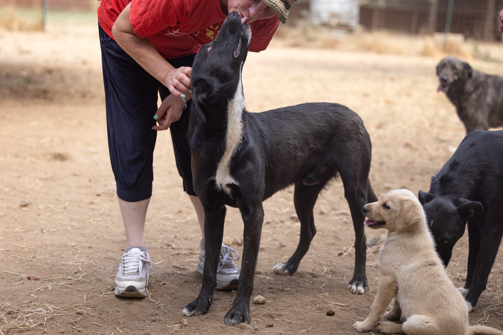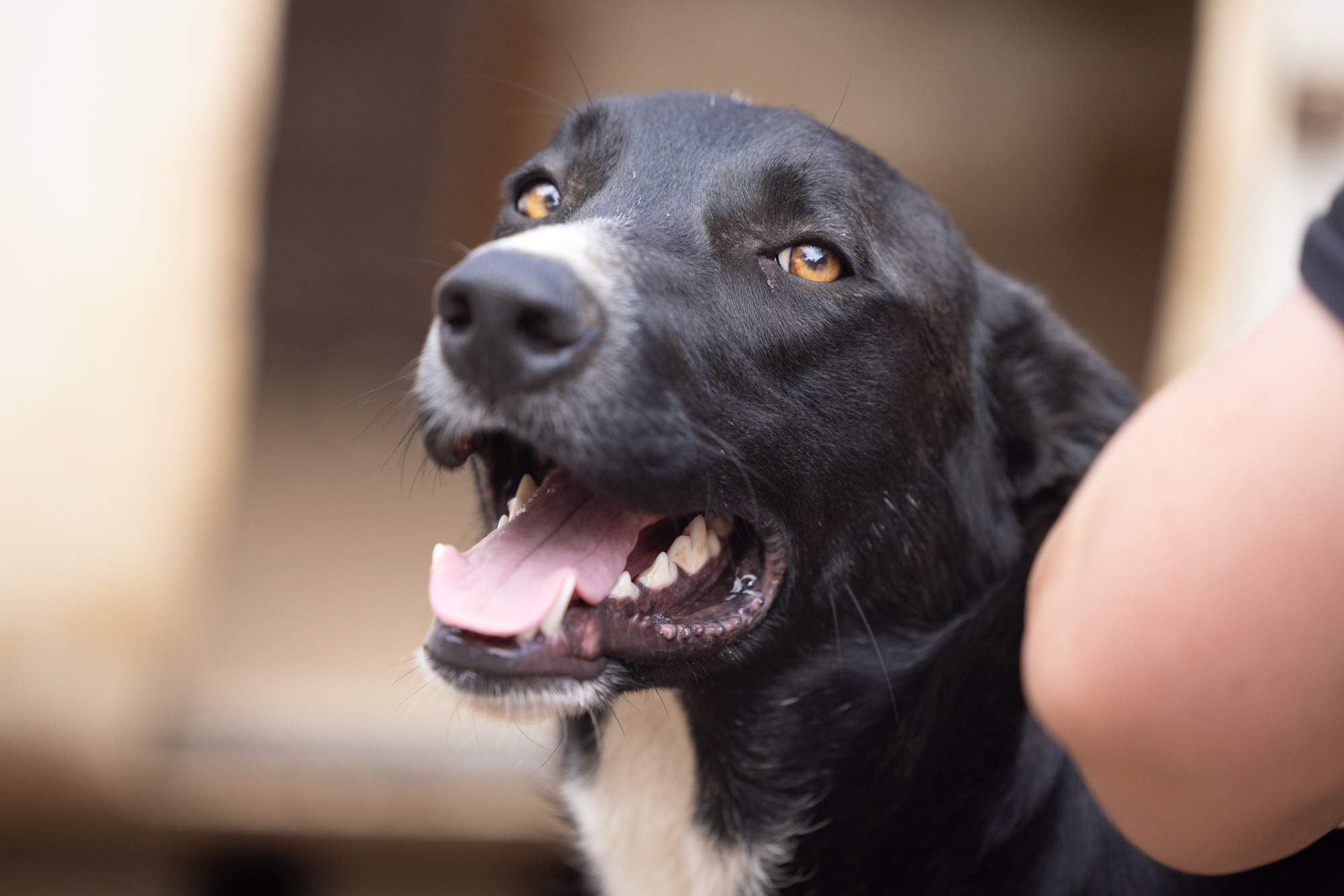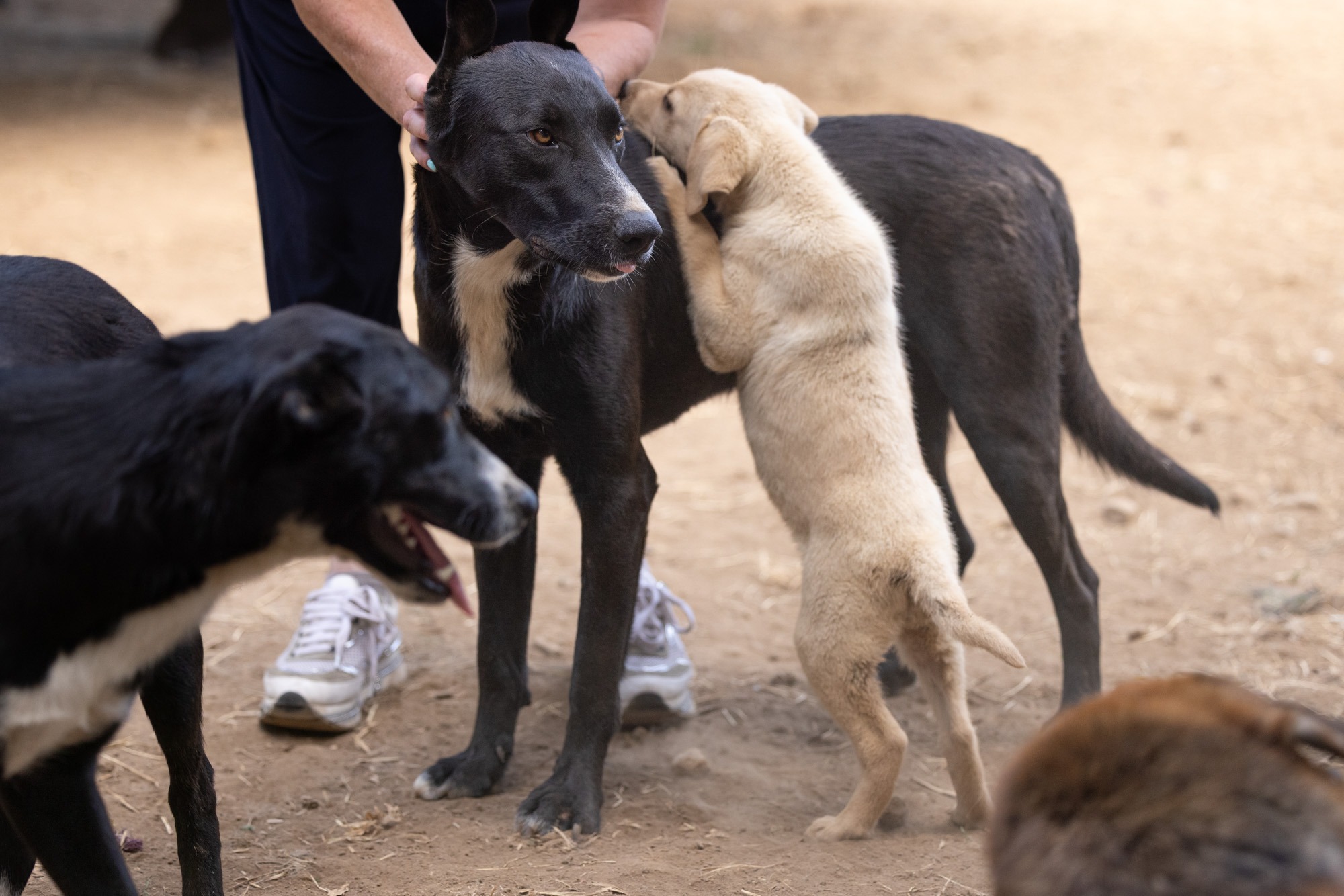 Bei unserem Besuch habe ich ihn sehr energiegeladen und schwungvoll erlebt. Er war immer vorne dabei, sprang hoch, forderte Aufmerksamkeit. Der fröhliche Rüde sucht ein agiles Zuhause. Mit entsprechend Auslastung und Erziehung ist er sicherlich ein Traum! Doch er wird natürlich zuerst Zeit und geduldige Begleiter an seiner Seite brauchen um alles kennenzulernen! Er kennt das Leben auf der Straße und dann das Gelände abseits in der Natur. Dort lebt er verträglich in einem gemischten, großen Rudel.