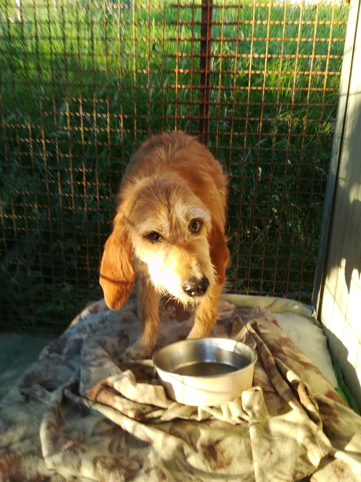 Treppenlaufen ist kein Problem, vor dem Aufzug hat er jedoch panische Angst – wahrscheinlich allgemein vor engen, dunklen Räumen. Bisher gestaltet sich seine Ernährung etwas unerwartet, da er kein reines Wasser zu sich nehmen möchte – nur mit etwas Milch oder Hühnerbrühe verdünnt, wird alles leer geschleckt. Beim Fressen gibt er sich mit Trockenfutter gemischt mit etwas Schonkost zufrieden. Sein struppiges Fell und der Juckreiz bessern sich durch regelmäßiges Kämmen mit Spezialbürste Tag für Tag. In den richtigen Händen und mit etwas Liebe blüht der Kleine in kürzester Zeit auf.