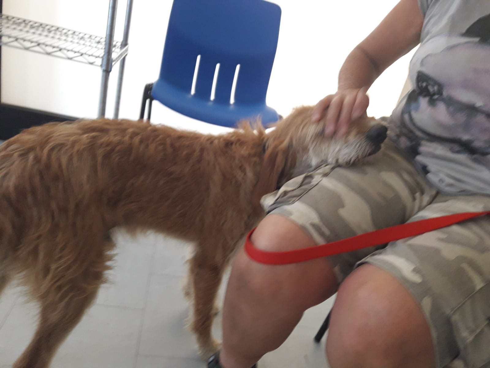 Turbo taut auf! Der goldige Bursche freut sich inzwischen sehr über den Besuch unserer Tierschützer und genießt seelenvoll die Streicheleinheiten. Er ist nicht mehr ängstlich und wir sind alle verblüfft.