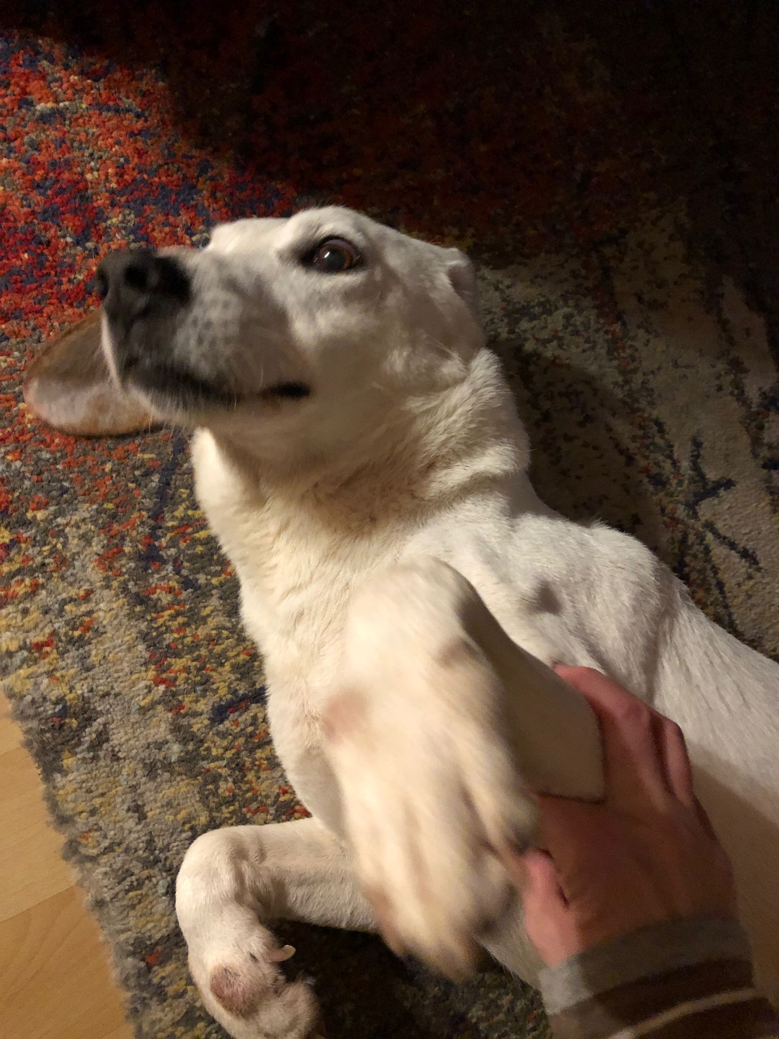 Uber ist ein gutmütiger und sehr freundlicher, immer gut gelaunter Rüde. Er läßt sich überall problemlos anfassen und liebt Streicheleinheiten. Dafür wirft er sich gerne auf den Rücken, um sich den Bauch kraulen zu lassen. Auch wenn er kräftiger wirkt, hat er bei einer Schulterhöhe von knapp 50 cm ein Gewicht von „nur“ etwa 19,5 kg. Uber ist sehr menschenbezogen und verschmust, aber manchmal auch ein bißchen dickköpfig. Deshalb sollten Interessenten bereits Hundeerfahrung haben und standfest sein. Er bellt bisher kaum. Für einen Hund, der bis jetzt wenig kannte, ist er erstaunlich selbstsicher. Zur Zeit ist er als Nachwirkung von Böllerschüssen bei Silvesterspaziergängen etwas schreckhaft beim Verlassen des Hauses, aber man kann bei ihm viel mit Leckerlis machen, da er außer rohes Gemüse und Obst alles Futter liebt. Uber ist kälteunempfindlich und läuft draußen erstaunlich gut an der Leine. Lange Spaziergänge gefallen ihm. Treppensteigen war für ihn von Anfang an kein Problem. Er hat ein kurzes, pflegeleichtes Fell, das recht kräftig ist. Uber braucht auf jeden Fall noch Erziehung. Er ist nicht kastriert. Die Verträglichkeit mit anderen Hunden ist grundsätzlich gegeben. Auf seiner Pflegestelle lebt er mit einer Hündin zusammen, der er manchmal allerdings auf die Nerven fällt, so dass diese ihn scharf zurechtweisen muß. Ubers Vermittlerin auf Sardinien ist sich ziemlich sicher, dass er bei Ankunft im Canile in 2017 erst ca. 1 Jahr alt war. Das Geburtsdatum im Pass wurde vom Amtstierarzt vor Ort geschätzt und muss daher nicht stimmen. Uber kann jederzeit auf seiner Pflegestelle kennengelernt werden.