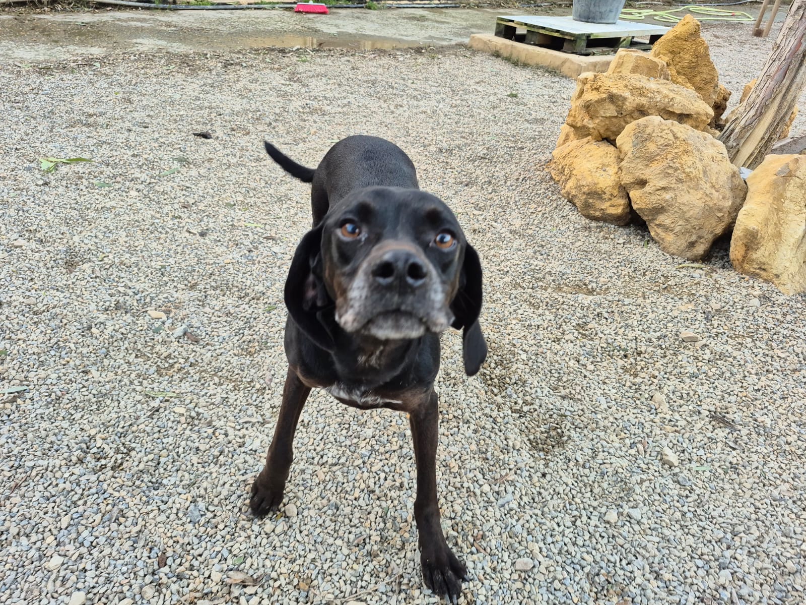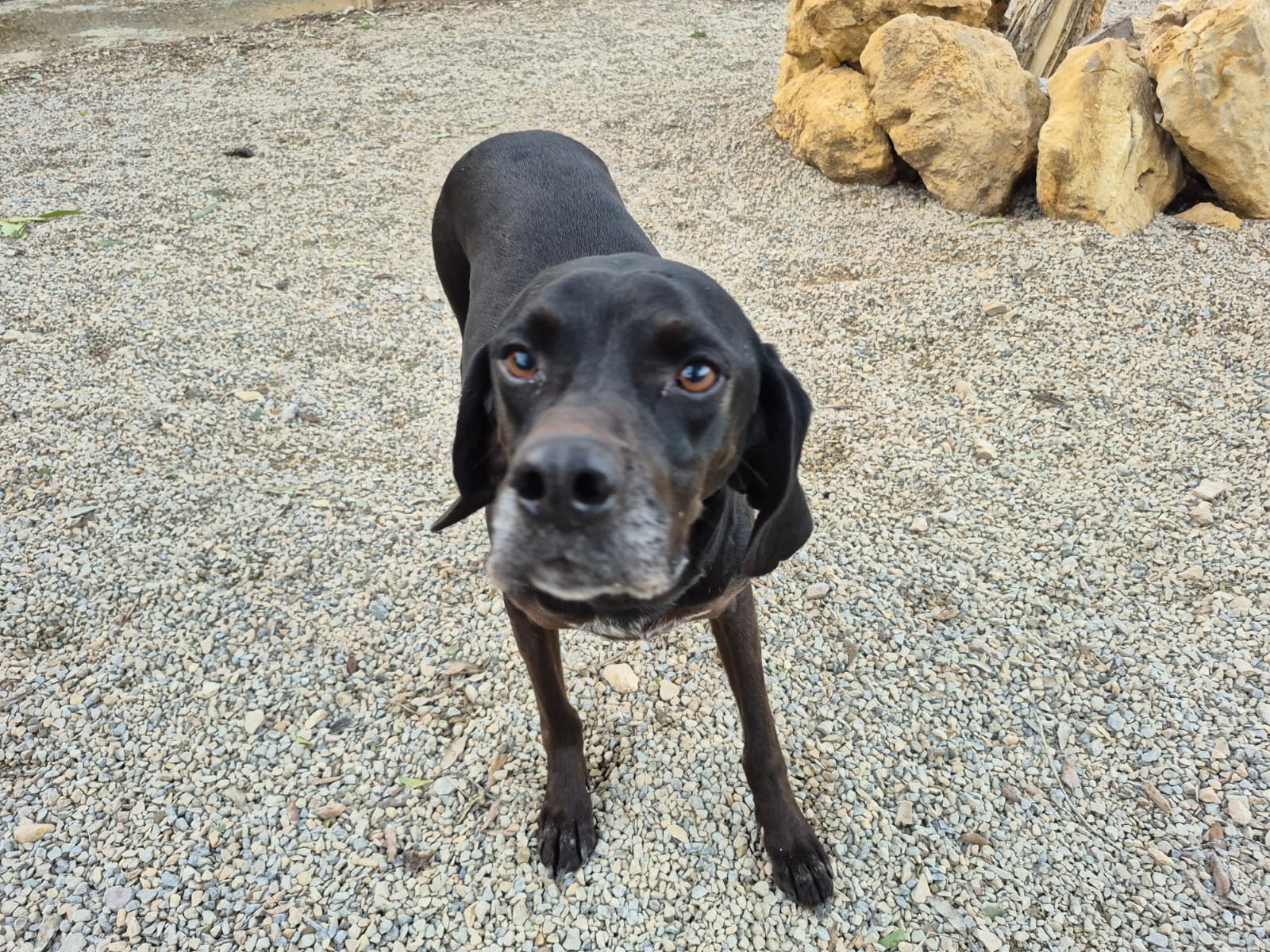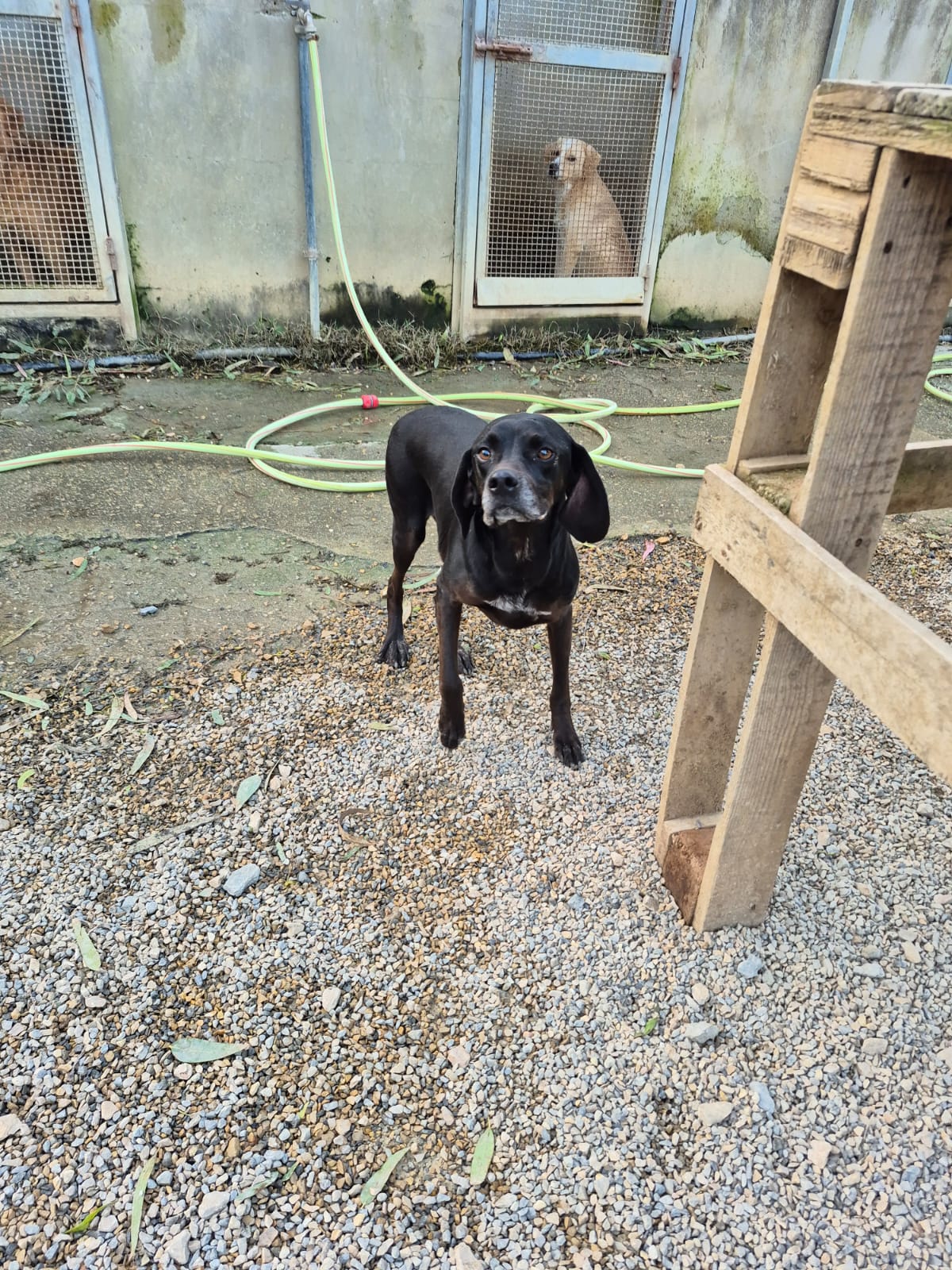 Webinar ist nach einem Autounfall im April 2021 als Notfall in eine Klinik auf Sardinien eingeliefert worden. Sie musste dringend an der Schulter operiert werden und hatte div. schlimme Abschürfungen. Durch die umfänglichen Untersuchungen wurde zudem noch eine Eierstockentzündung festgestellt, die ebenfalls eine weitere Operation benötigte. Sie wurde so gut, wie es eben möglich war, wieder hergestellt und kam nach ihrem Klinikaufenthalt ins Canile. Sie ist ein fröhliches, noch flott aktives Hundemädchen und eine eigene Familie wäre das Wunder, was wir benötigen für sie. Ihr springt beim Rumflitzen immer mal wieder die Schulter aus dem Gelenk, bei Hinsetzen, springt sie wieder rein. Webinar hat damit keine Probleme. Laut Datenblatt des Caniles soll sie am 25.03.2017 geboren sein. Aber das wurde geschätzt, Patrizia hält sie für jünger. Sie ist 50cm groß bei einem Gewicht von 15kg. Schwarz und mit einem Schulterproblem hat die Hündin nicht die allerbesten Aussichten auf Adoption. Eine Pflegerin hatte sie für sich „reserviert“, für drei Tage mit nach Hause genommen und dann wieder im Canile abgeliefert…….Also, wo sind die Menschen, die Webninar nicht noch einmal enttäuschen werden? Gerne melden. Die schwarze Schönheit kann zeitnah ausreisen.